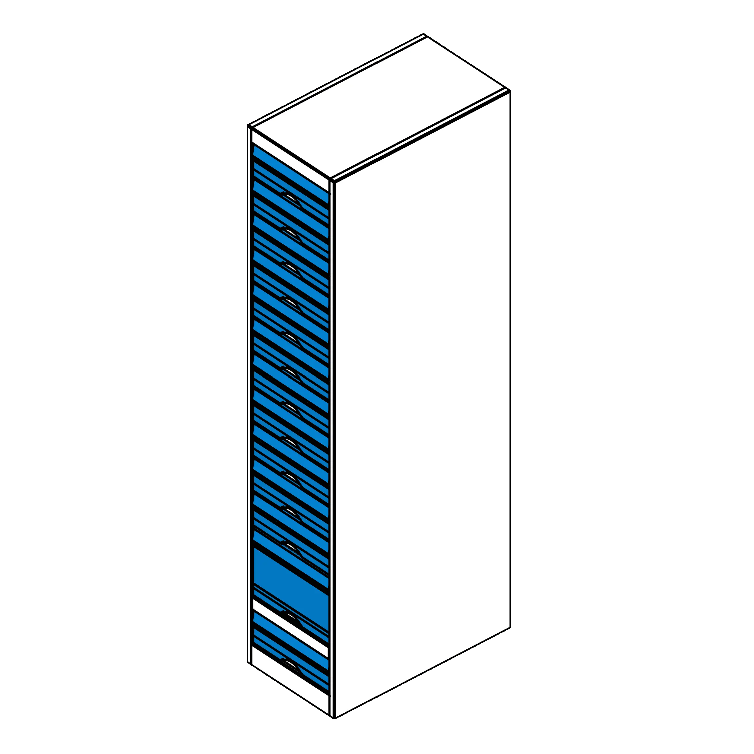 Underbench medication drawer cabinet are designed for compact spaces with maximum storage capacity. Choose between a 18 3/4" and 34 1/6" wide cabinet with a standard height of 34" and 27" deep. The single width holds 100 medications per cabinet and the double width holds 200 medications per cabinet. Drawer system is powder coated metal each drawer front incorporates a acrylic window to identify medications stored within. Two drawer combination options available, 6 - 5" cabinets and 4 - 5" top cabinets and 1 - 10" bottom cabinet.