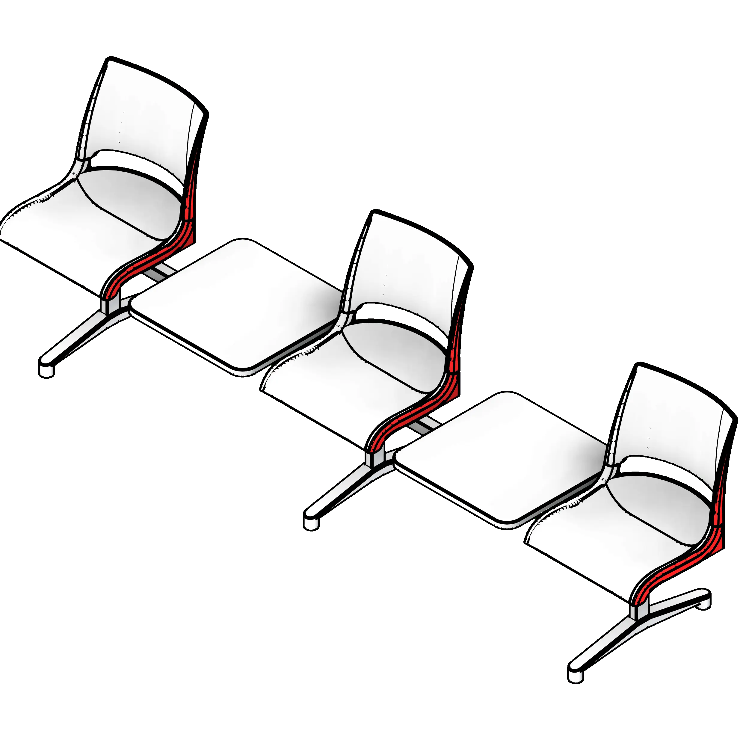This family is designed to deliver finished products with a few easy-to-configure parameters efficiently. To use this family, insert it into your project from the Fetch app. Use the parameters in the Construction category of the properties panel to enter the number of positions, upholstery, and inline-table options. The family will automatically scale and adjust to match the specified options.