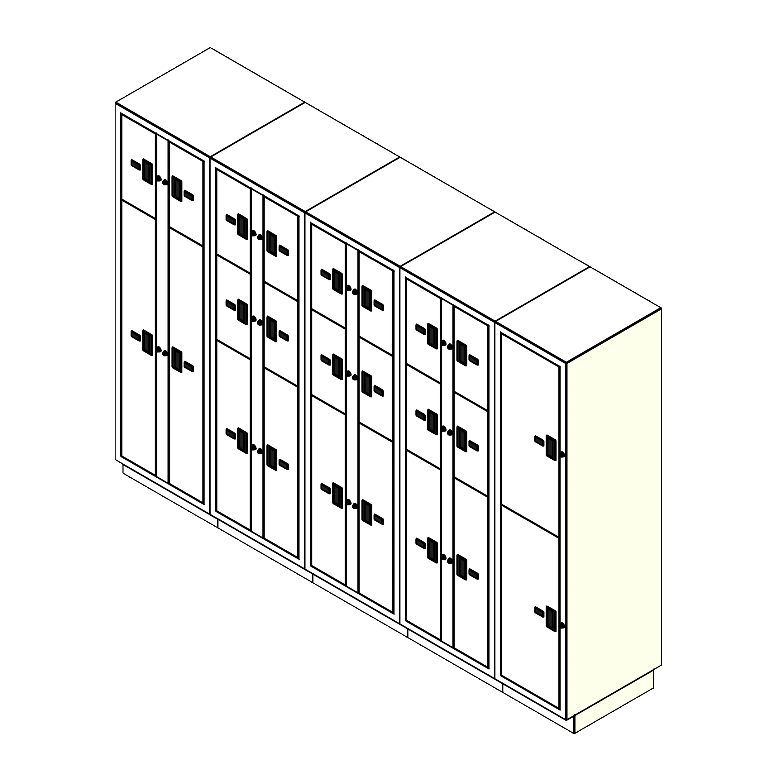 - For pass-through lockers, a single hinged rear door provides access and cannot be accessed from the front
