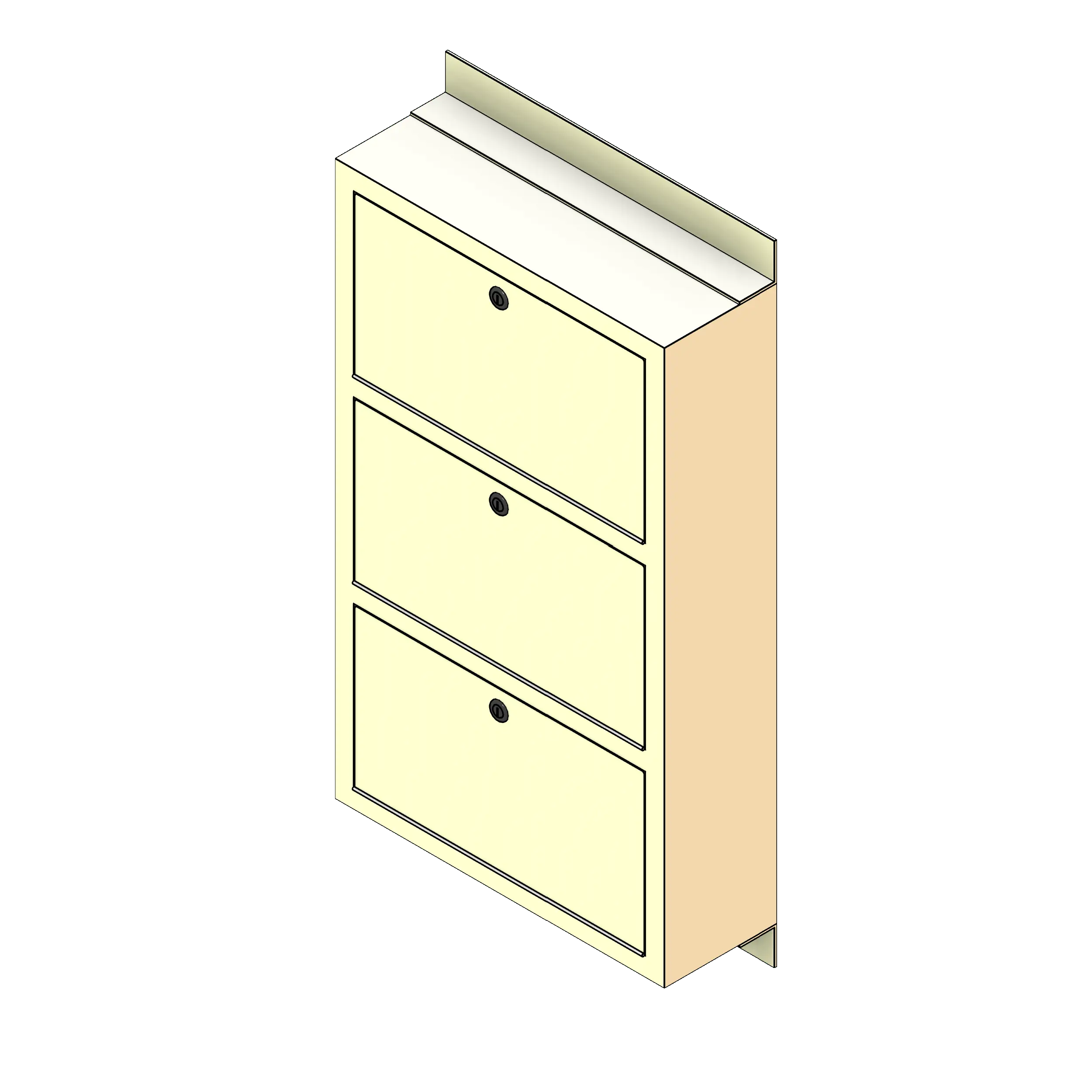 This wall-mounted weapons locker stores handguns and rifles outdoors safely. The all-steel construction and hopper-style compartments ensure that the firearms stored within are dry and secure.