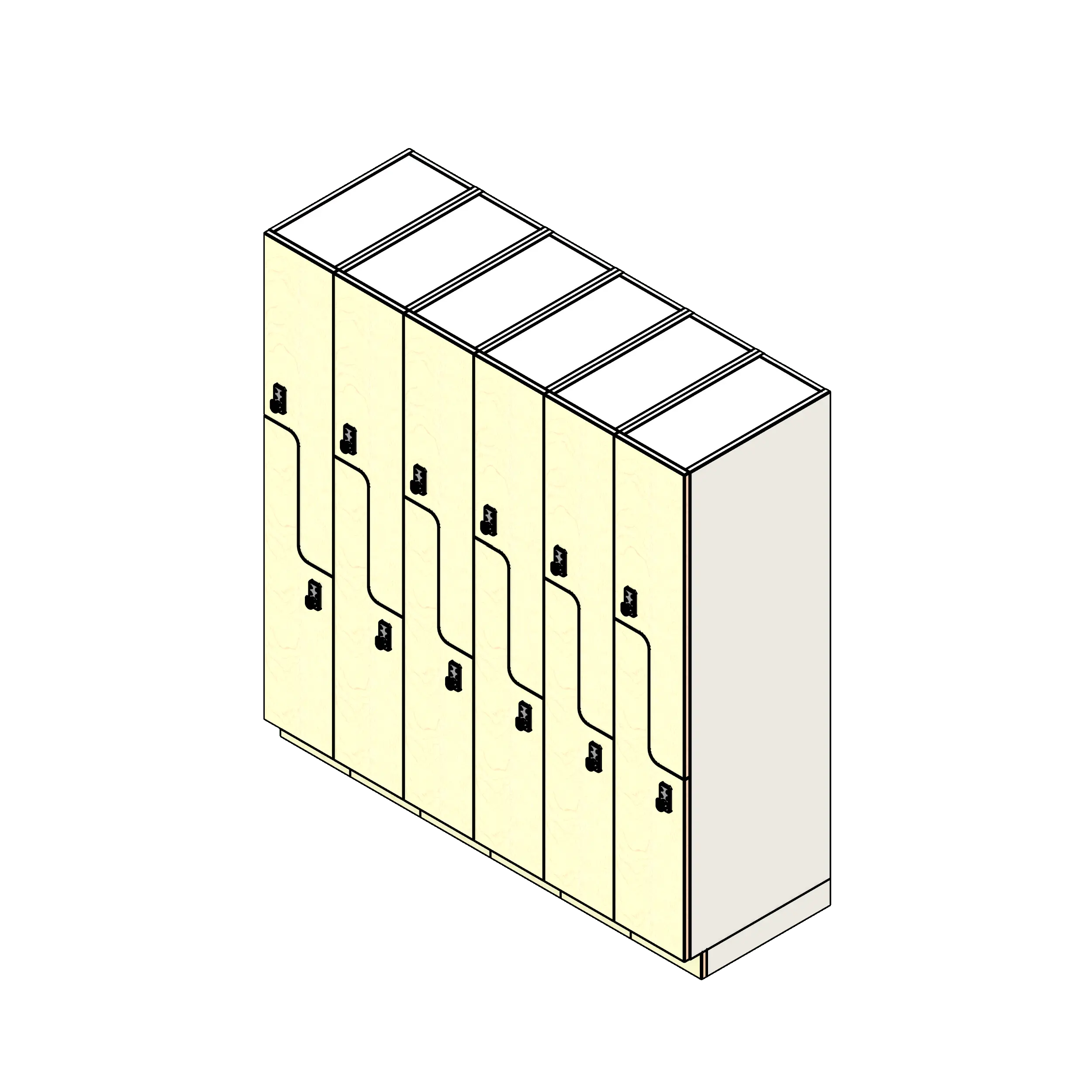Plastic-laminate-clad lockers are a versatile and durable storage solution, specifically designed to integrate seamlessly into custom architectural projects. These lockers stand out for their high-pressure decorative laminate finishes, offering a wide range of colors and patterns that can be tailored to match any design aesthetic. This preconfigured unit features two locker tiers with z-door openings and overall measurements of 12 inches wide and 24 inches deep.
