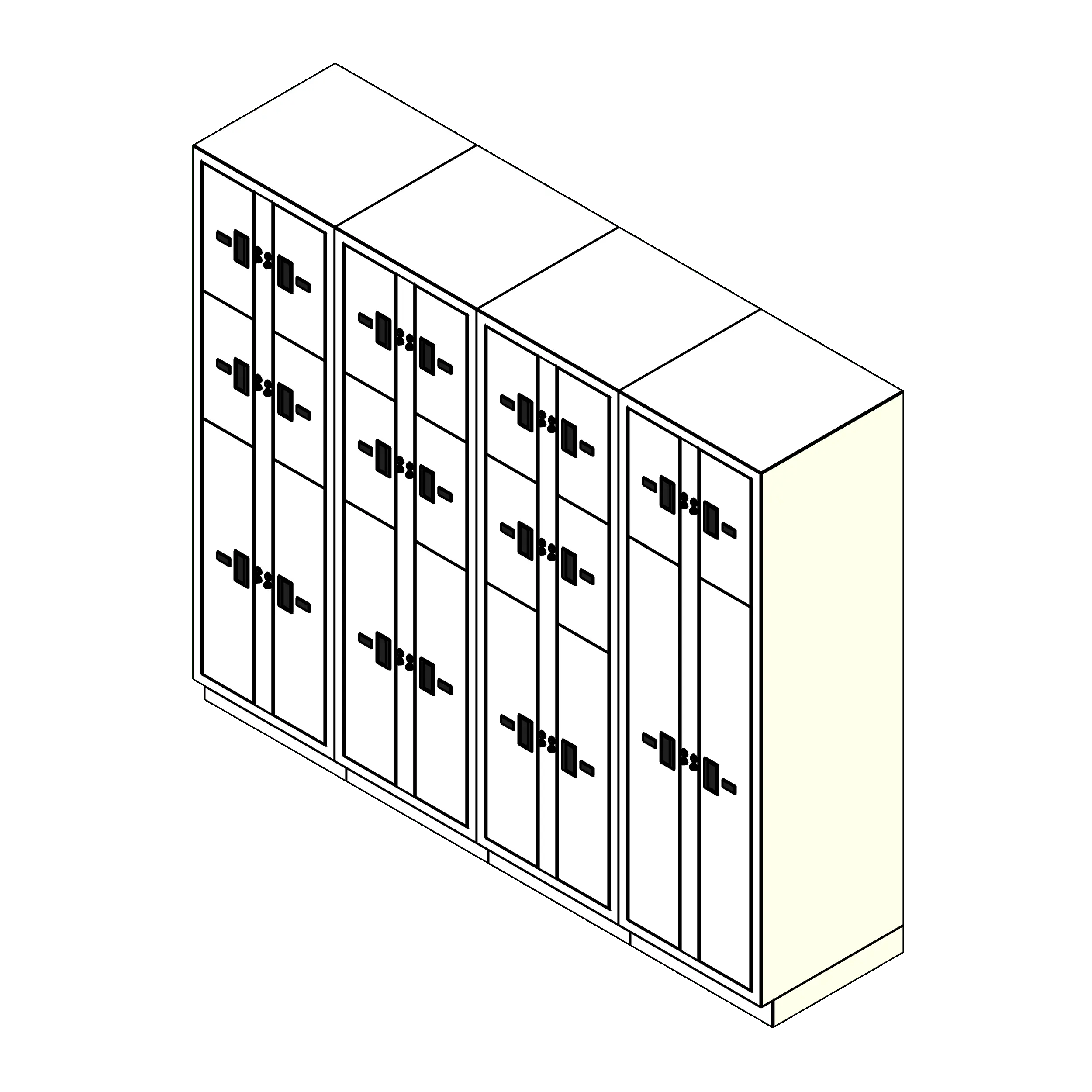 - For pass-through lockers, a single hinged rear door provides access and cannot be accessed from the front