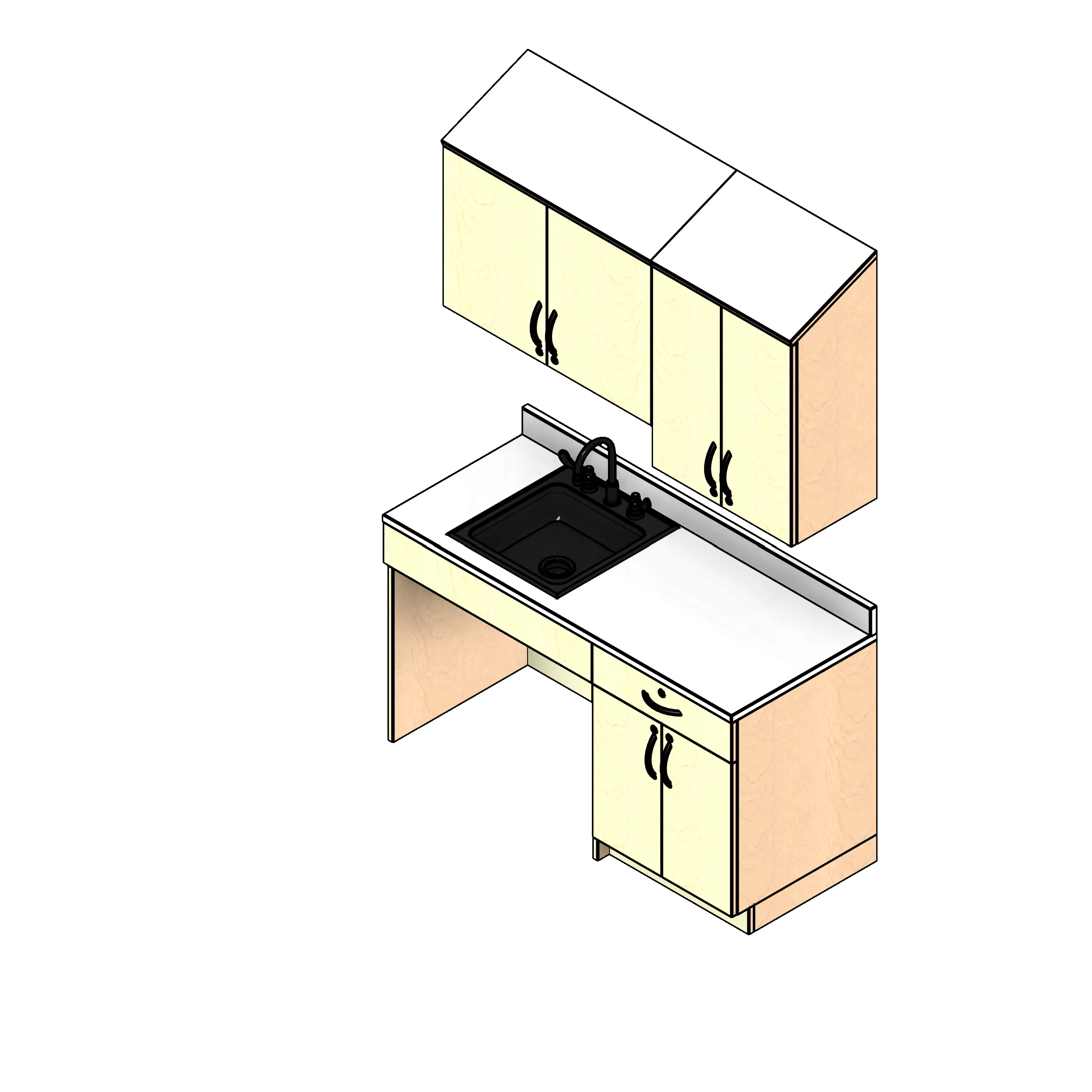 Each kit comes with a variety of options that each have a unique price attached to them. A typical solution would comprise of both upper and lower cabinets with a sink and counter top. Each cabinet door can be equipped with a lock.