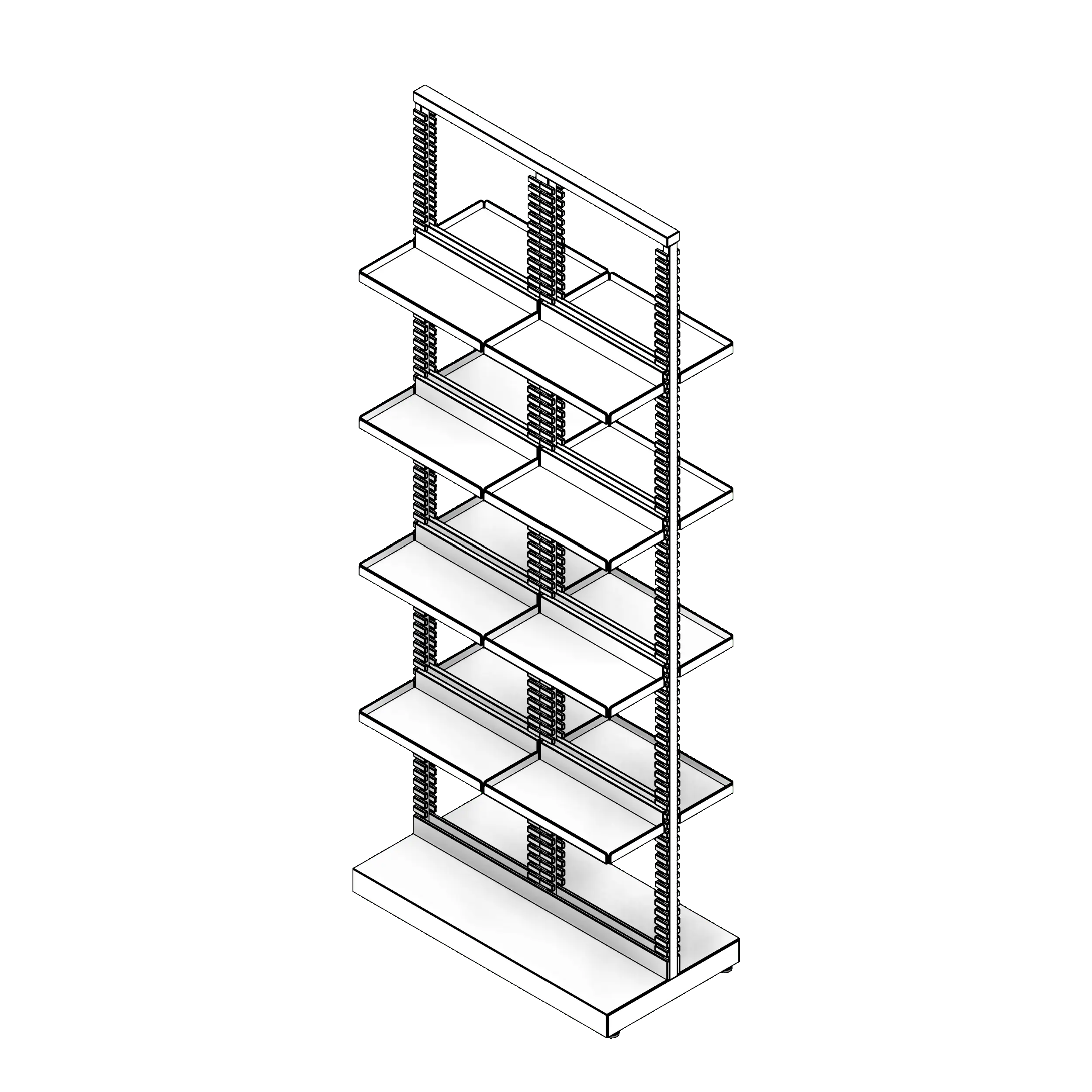 This product is designed to be used in pharmacies and other retail mercantile settings. The model includes all the manufacturer's standard sizes, as well as an option to enter your own custom widths and heights. To use this family, insert it into your project from the Fetch app, then use the parameters in the properties browser to enter dimensions and add or remove accessories such as end panels and a top panel. Custom dimensions can be entered by checking the "CUSTOM_Dimensions" parameter; this will allow you to enter any width and height desired for a custom solution to fit your storage needs.