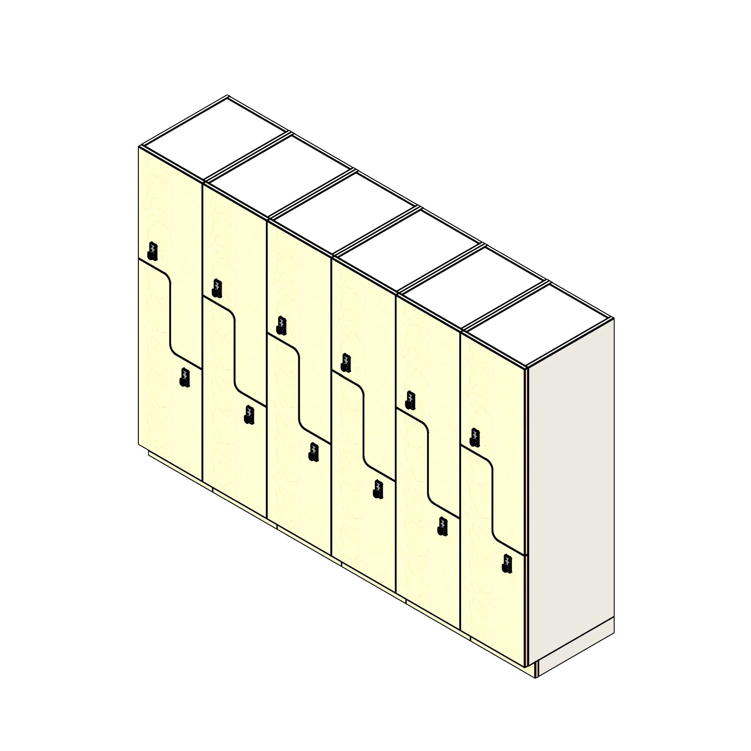 Plastic-laminate-clad lockers are a versatile and durable storage solution, specifically designed to integrate seamlessly into custom architectural projects. These lockers stand out for their high-pressure decorative laminate finishes, offering a wide range of colors and patterns that can be tailored to match any design aesthetic. This preconfigured unit features two locker tiers with z-door openings and overall measurements of 18 inches wide and 24 inches deep.