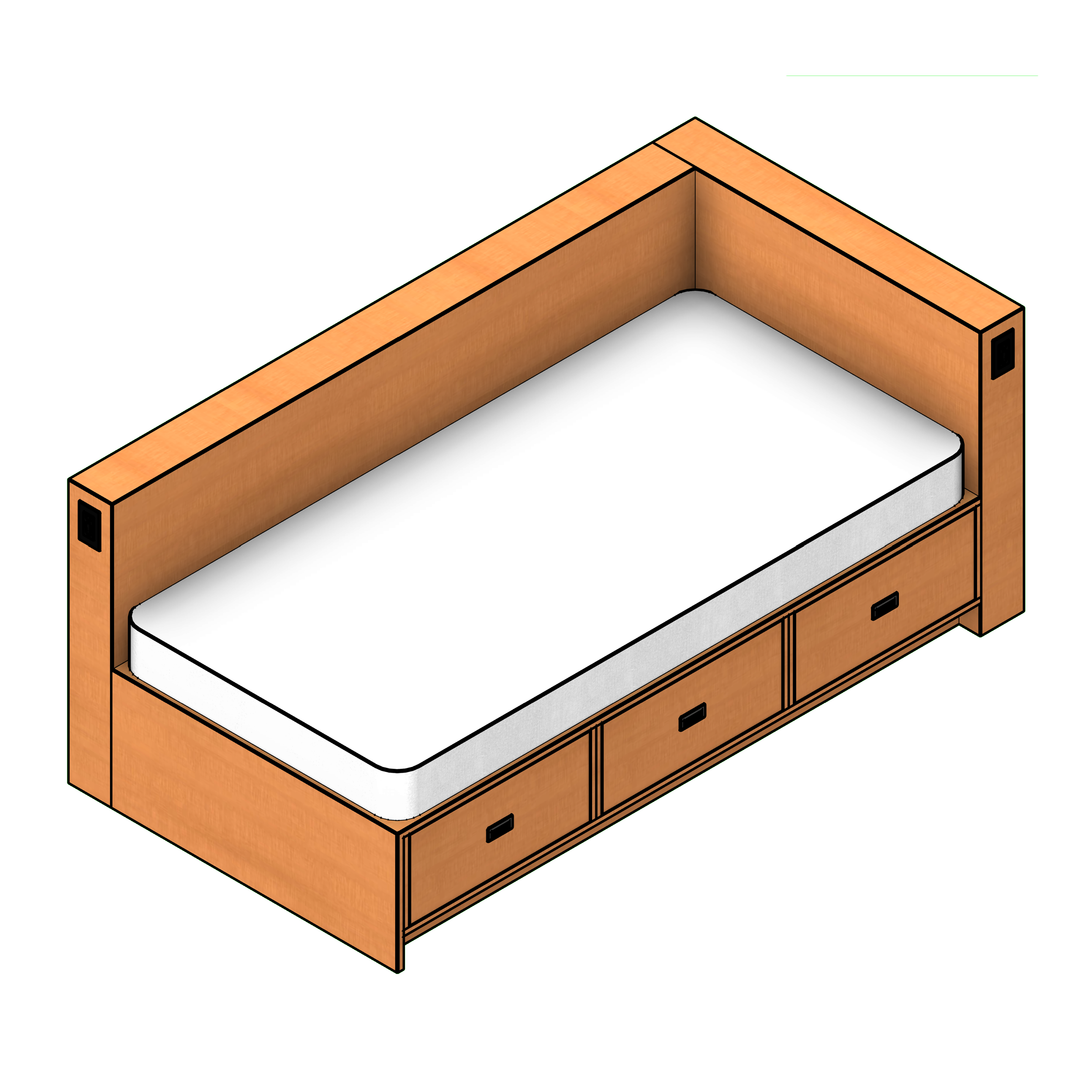 - Custom firehouse Twin XL bed with custom side board and outlets.