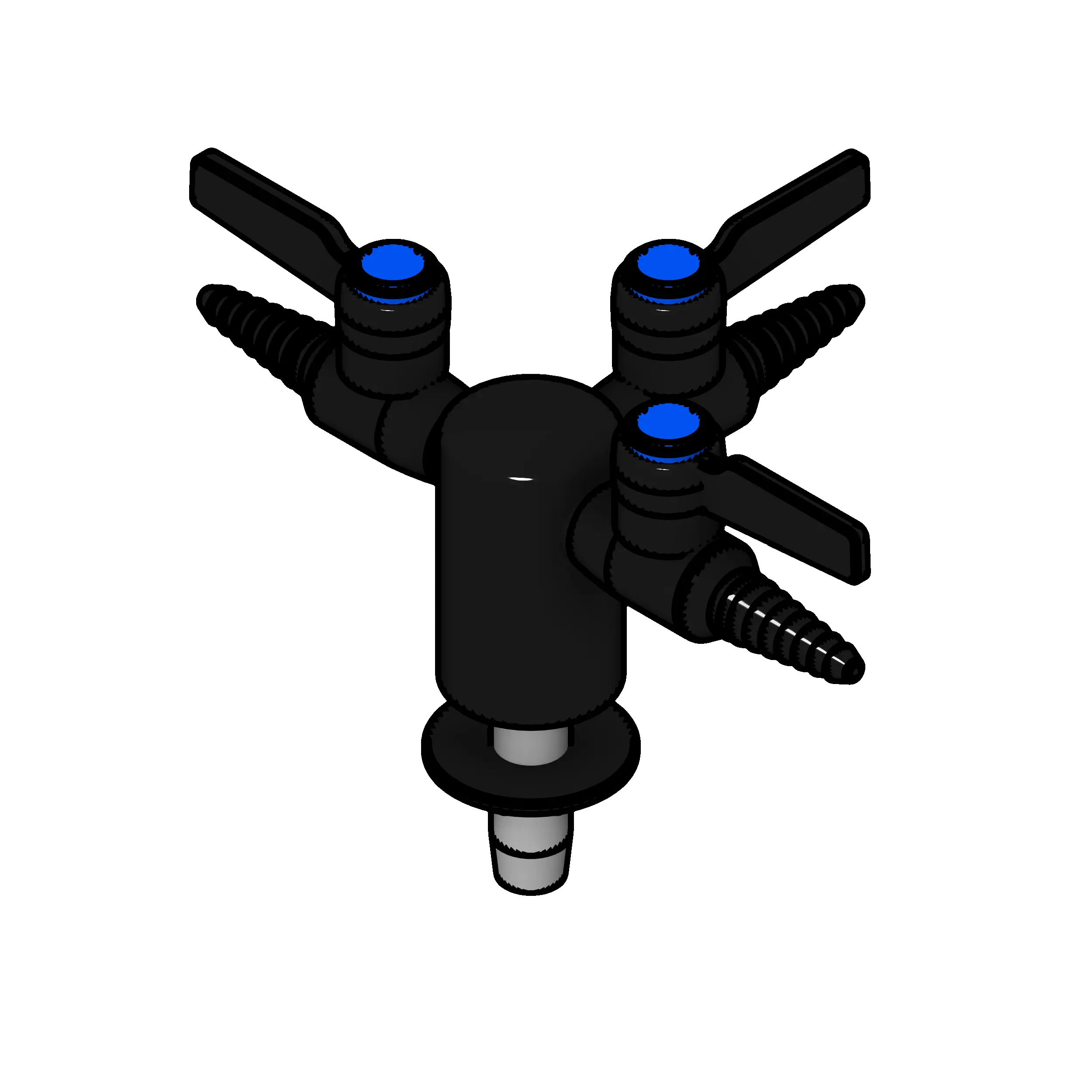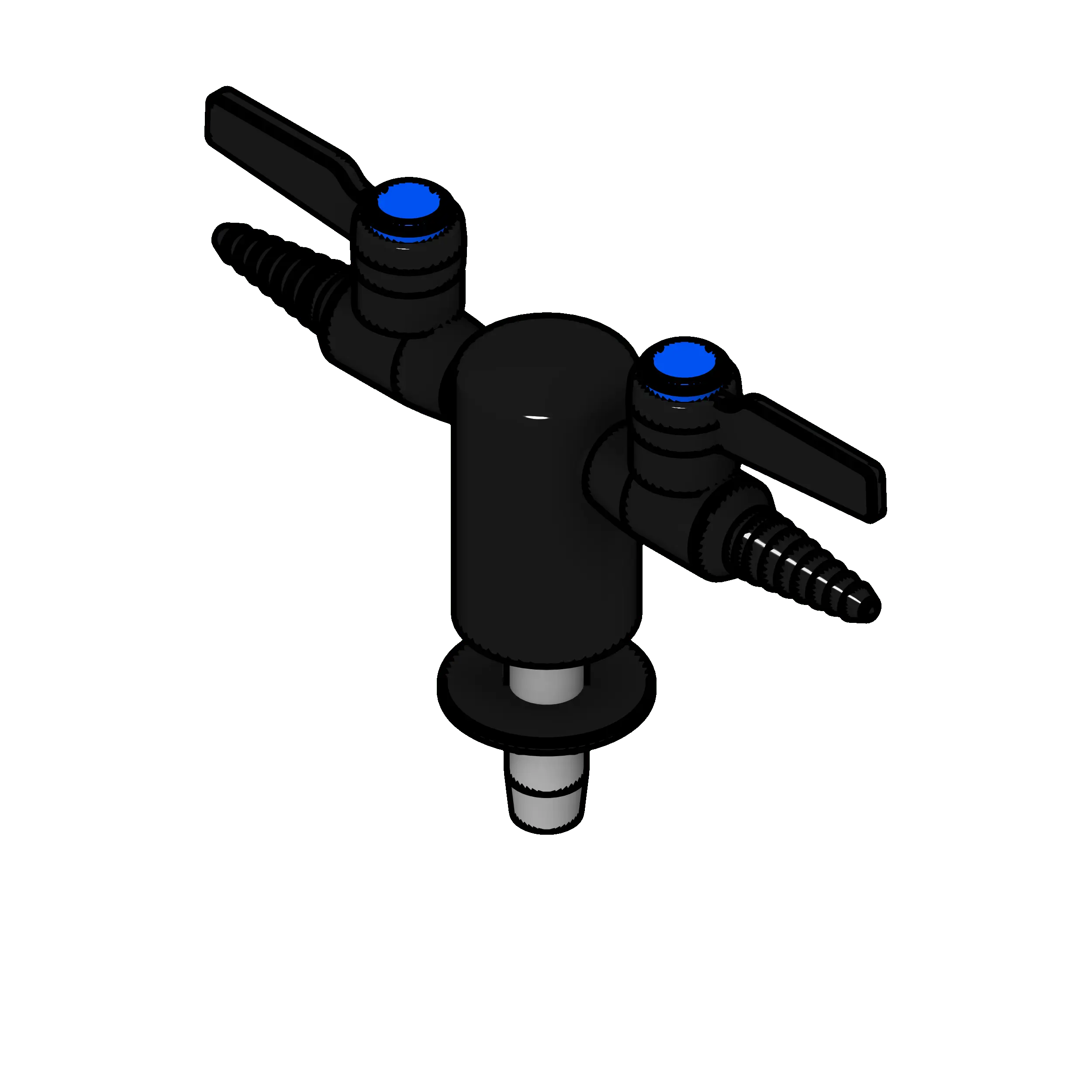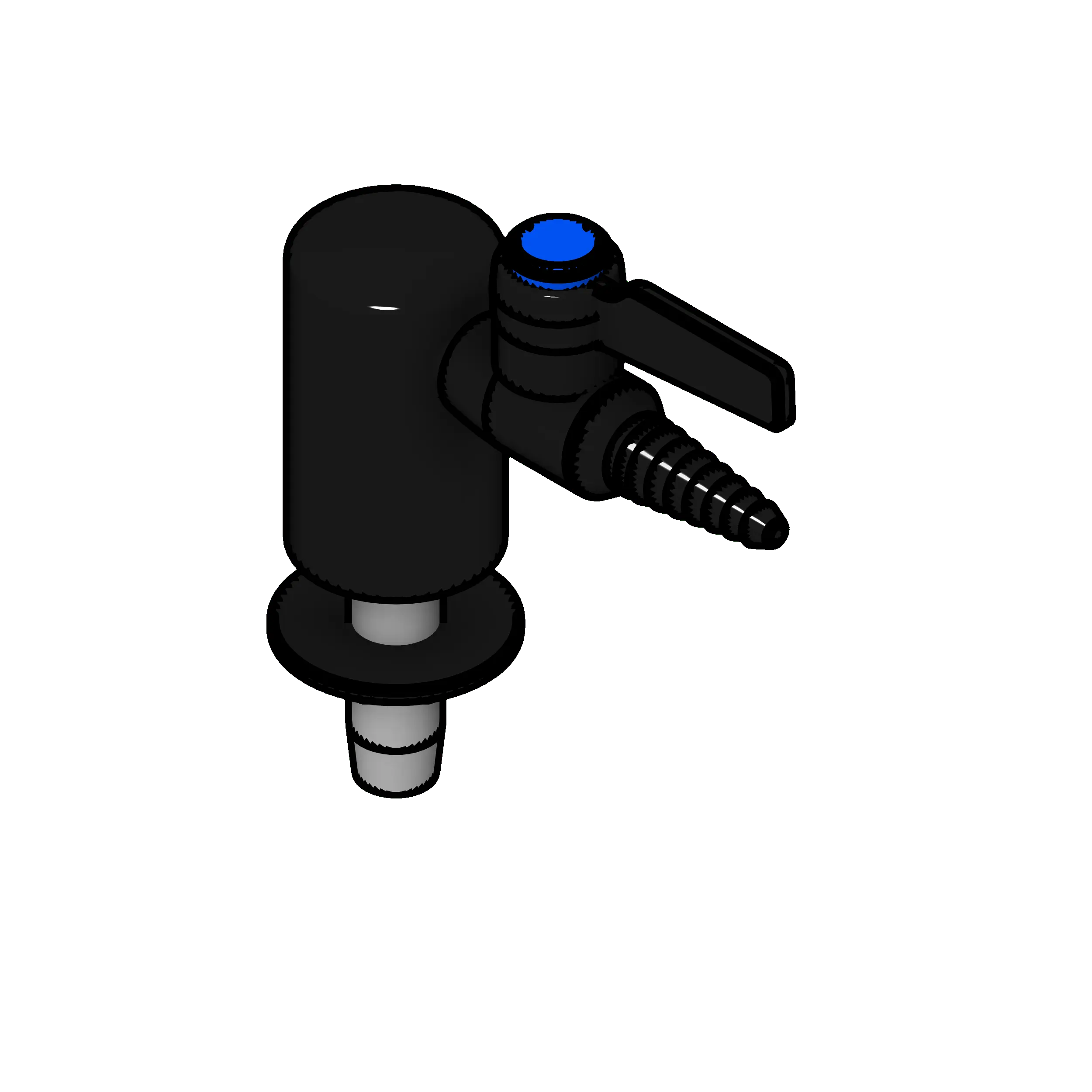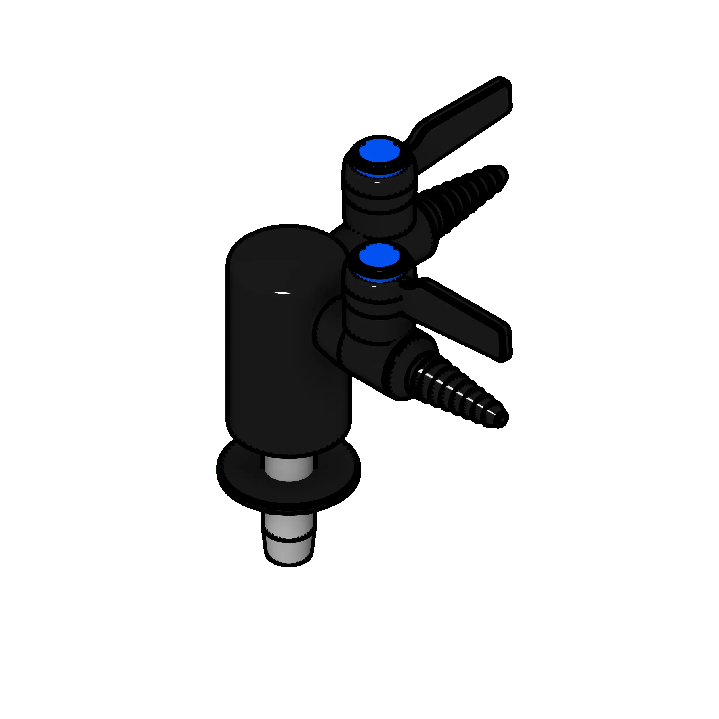This versatile gas valve family is able to add or subtract gas outlets based on your needs. Select a type to choose between 1 outlet, 2 outputs at 90° and 180°, 3, or even 4 outlet units. This family is face-based and can be applied directly to your desired counter top. Integral, straight, serrated hose attachment is fully modeled for render-ready projects.