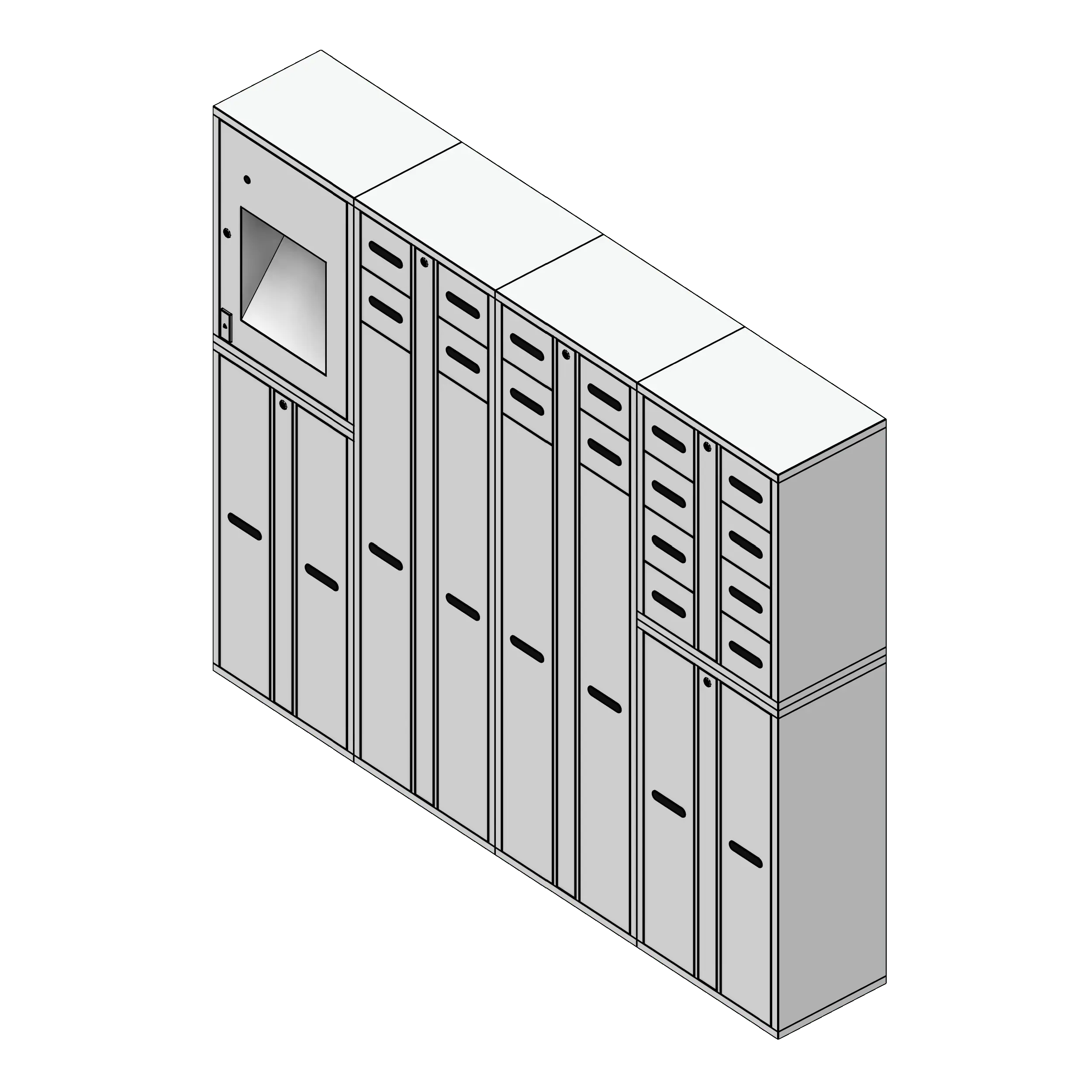 This family is designed to include all the necessary configurations to create your own smart weapons storage solution. To use this family, insert it into your project using the Fetch app and place as many units as you desire. One console is required for each group of locker units. The family includes a 12" filler for when a console or handgun unit (30" tall) is directly adjacent to long gun lockers (42" tall).