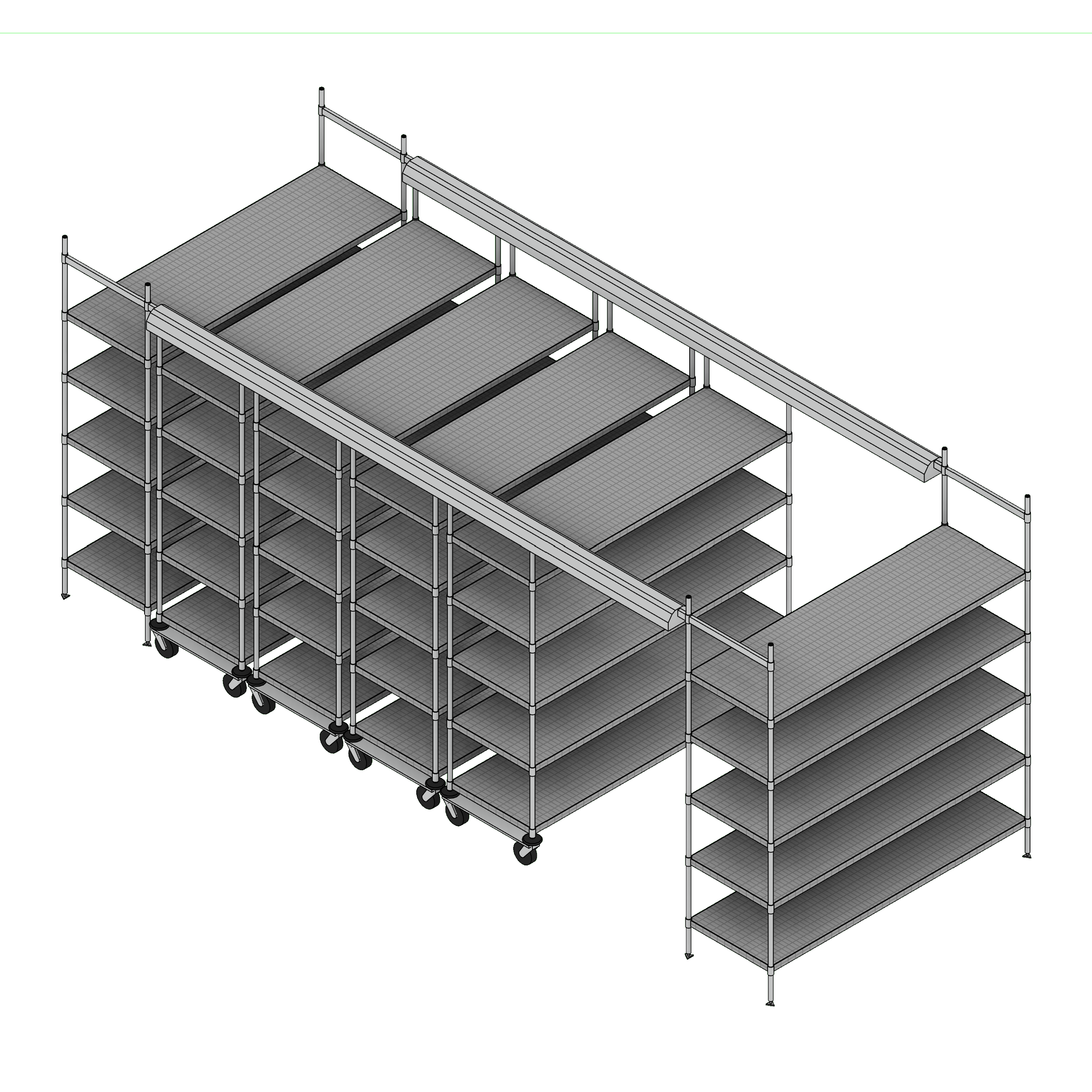 Top track mobile shelving units slide side to side on tracks to save floor space and maximize capacity. The wire shelves will store medical supplies, electronics, sterile storage, and more for medical, cleanroom, industrial, and a wide variety of other applications.