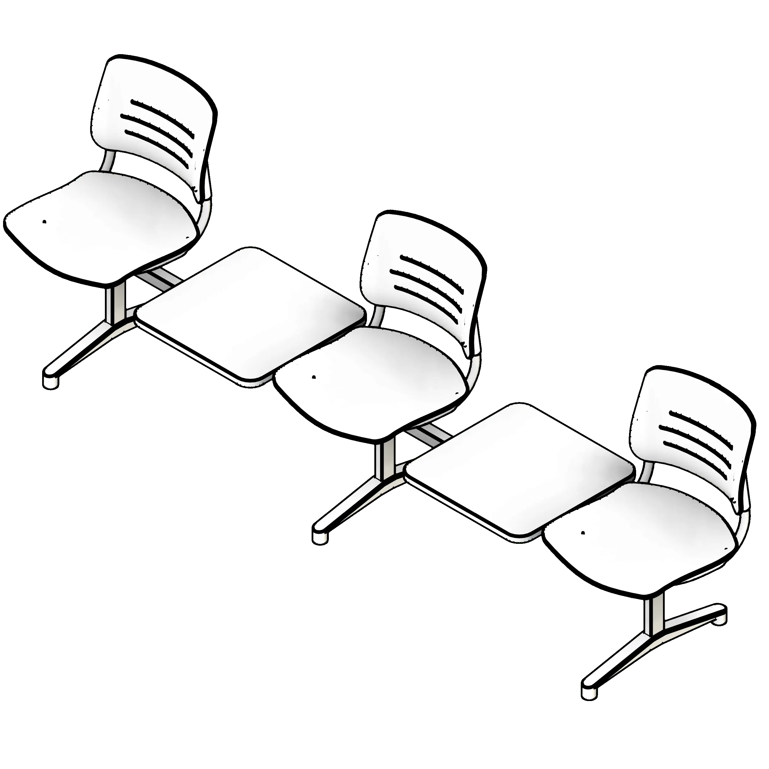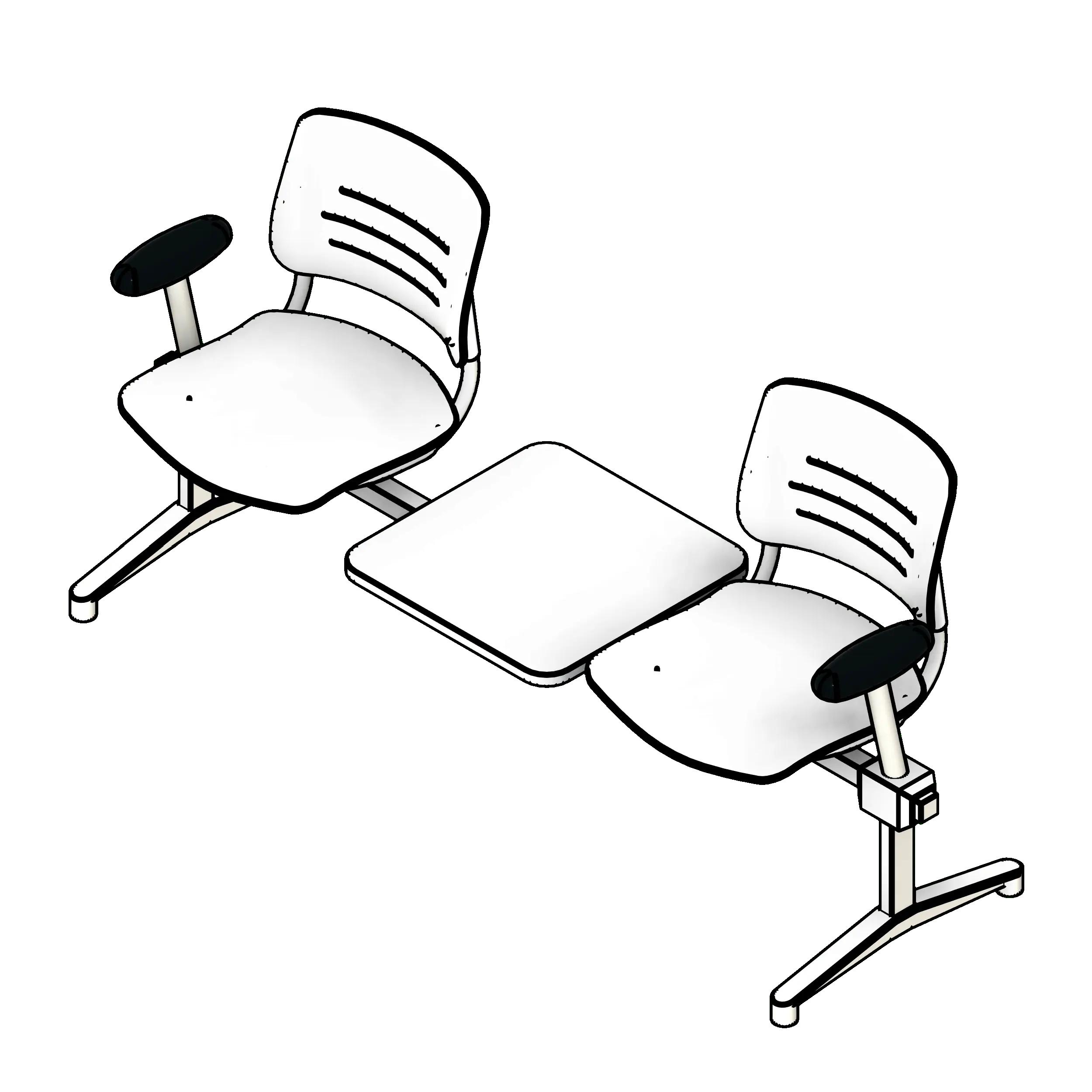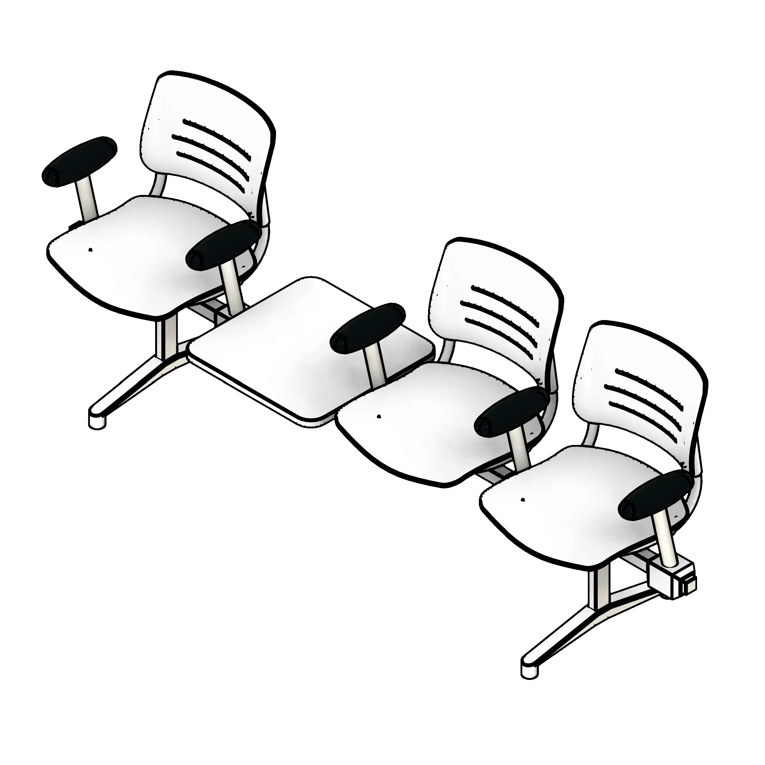 Tandem seating is used in any setting where audience members must be seated efficiently, such as auditoriums, meeting rooms, and lecture halls. The added armrests ensure occupant comfort. The optional inline tables make for convenient workstations for lectures and briefings.
