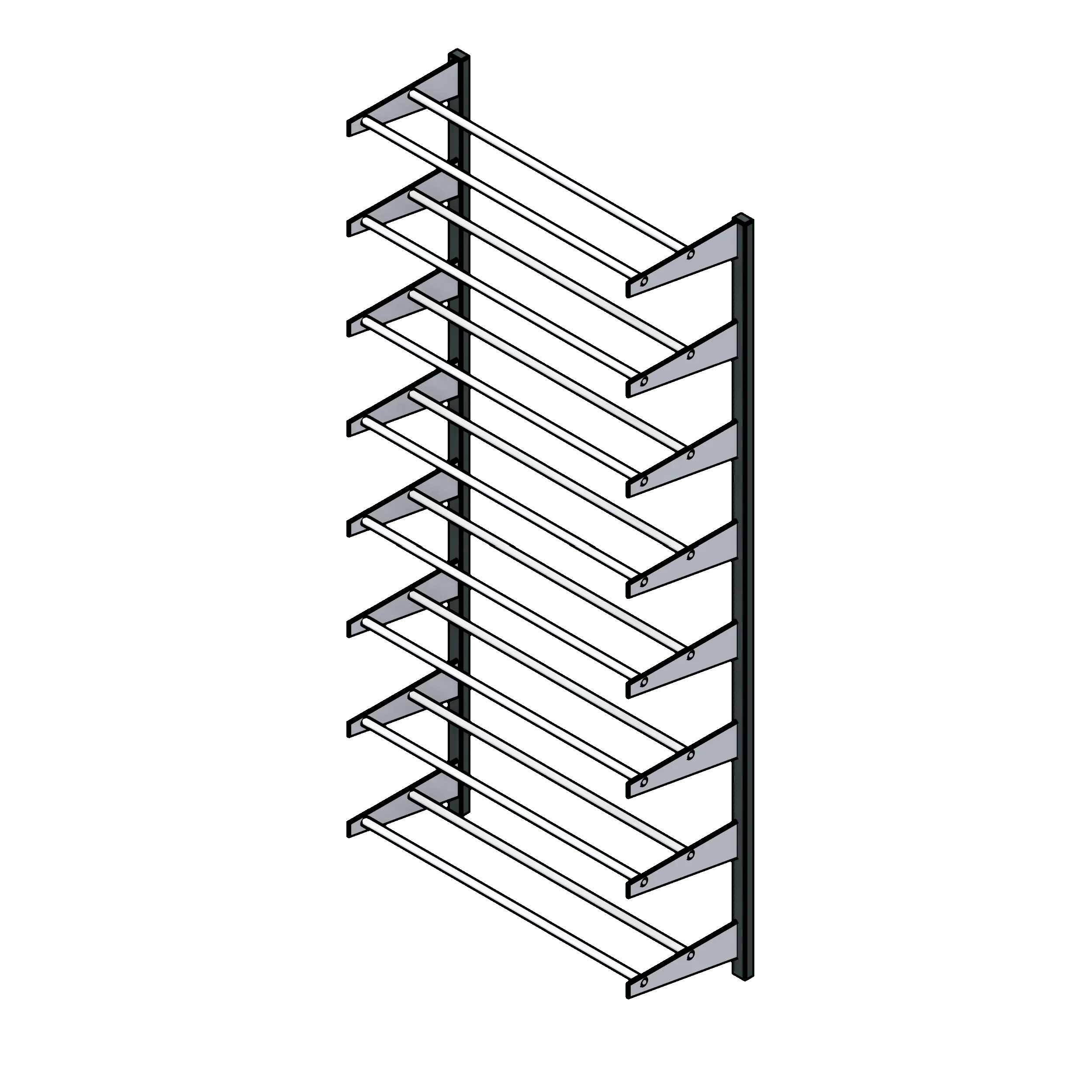 To use this family, insert it into your project and use the align tool to connect the shelves to a wall. ENTER_Rail Width can be used to specify the width of the system. MODIFY_42" Height and MODIFY_84" height will make the system grow and add more shelves. This family does include pricing and approximate weights.