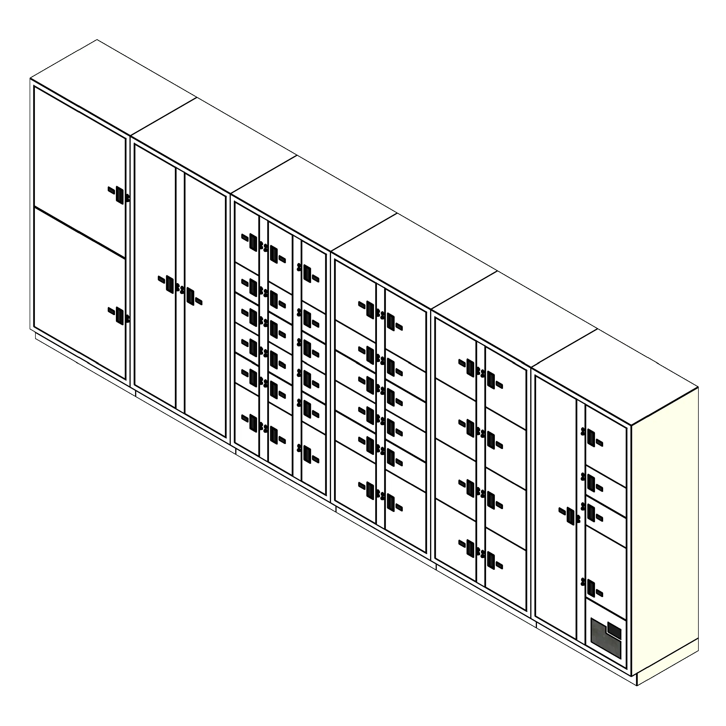 • For pass-through lockers, a single hinged rear door provides access and cannot be accessed from the front