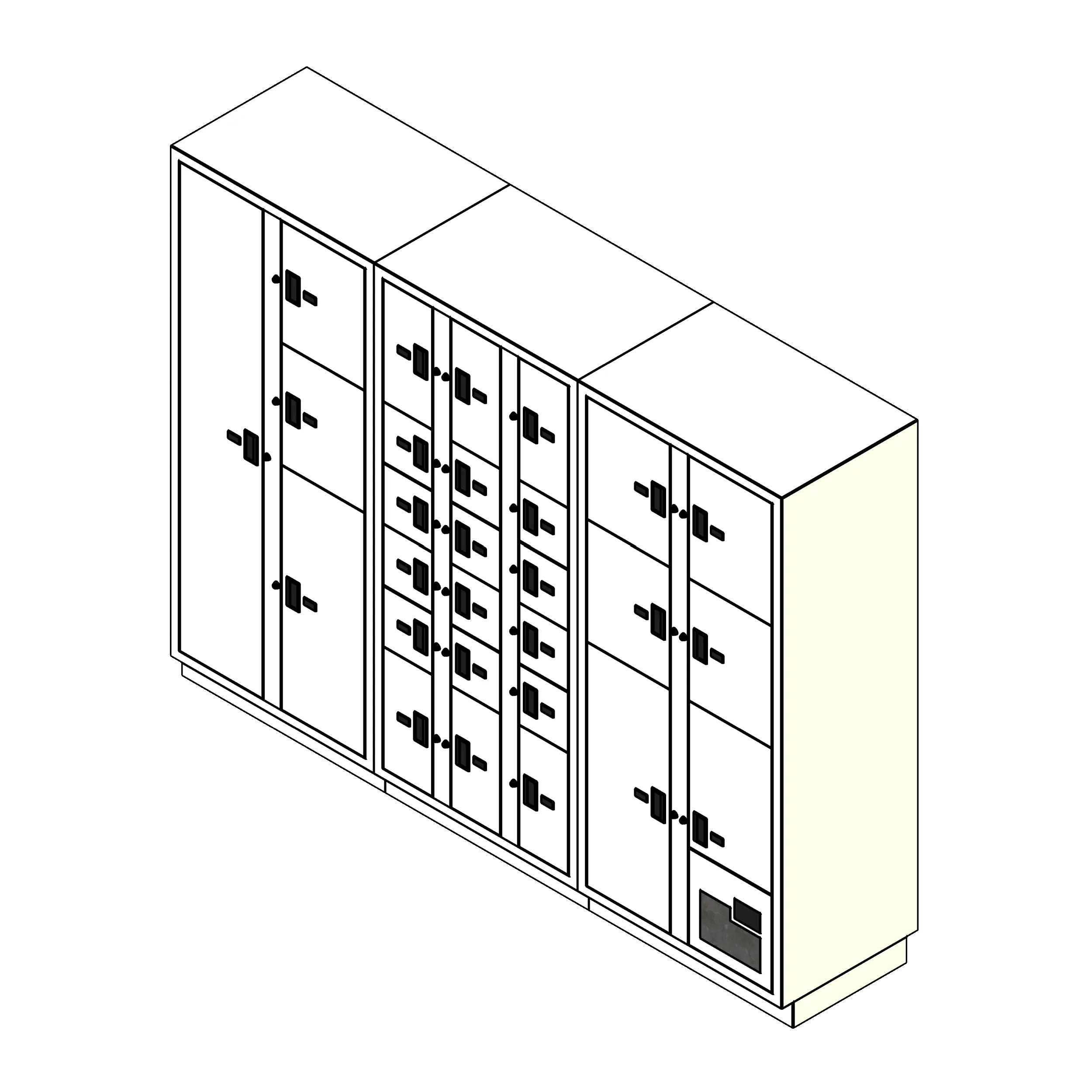 - For pass-through lockers, a single hinged rear door provides access and cannot be accessed from the front