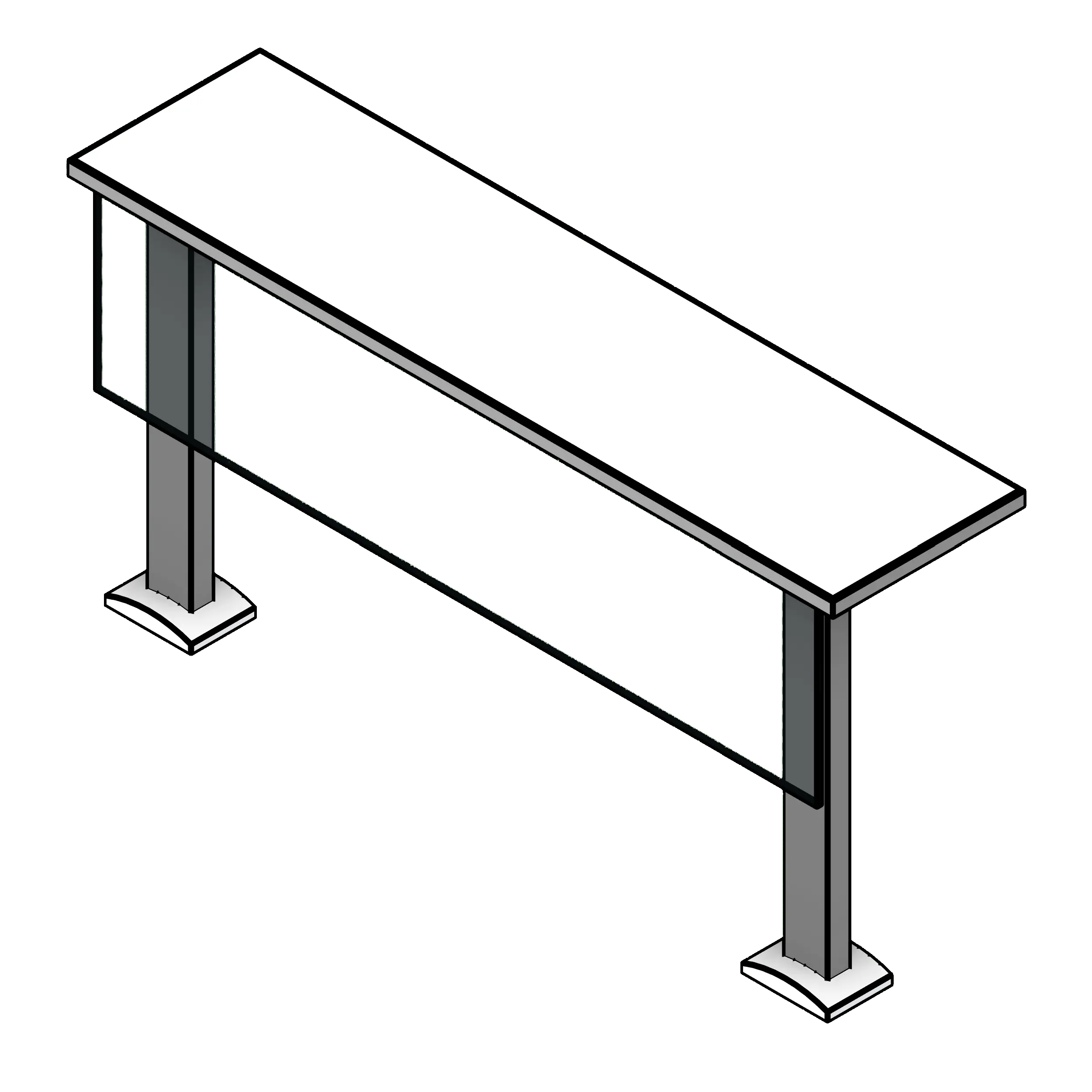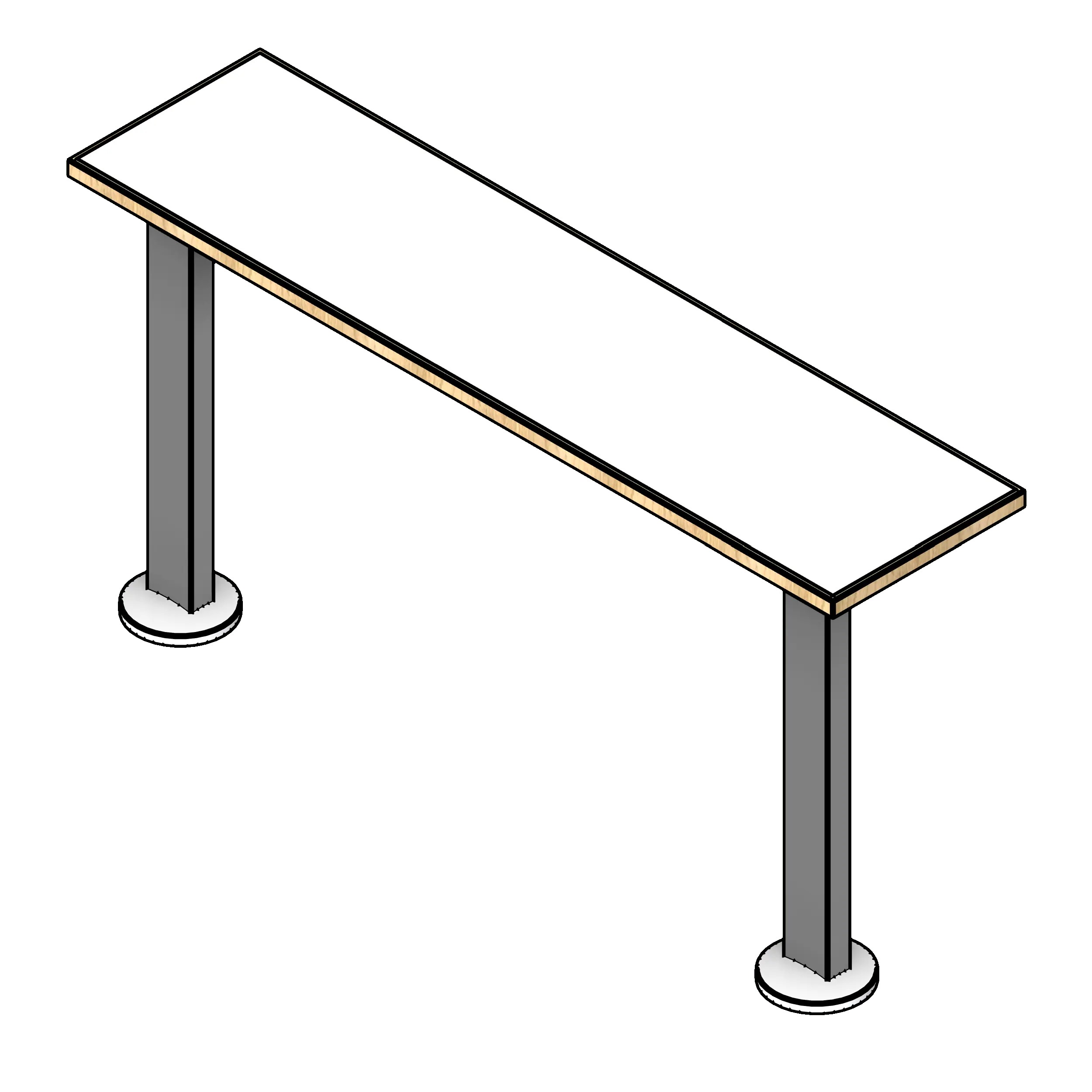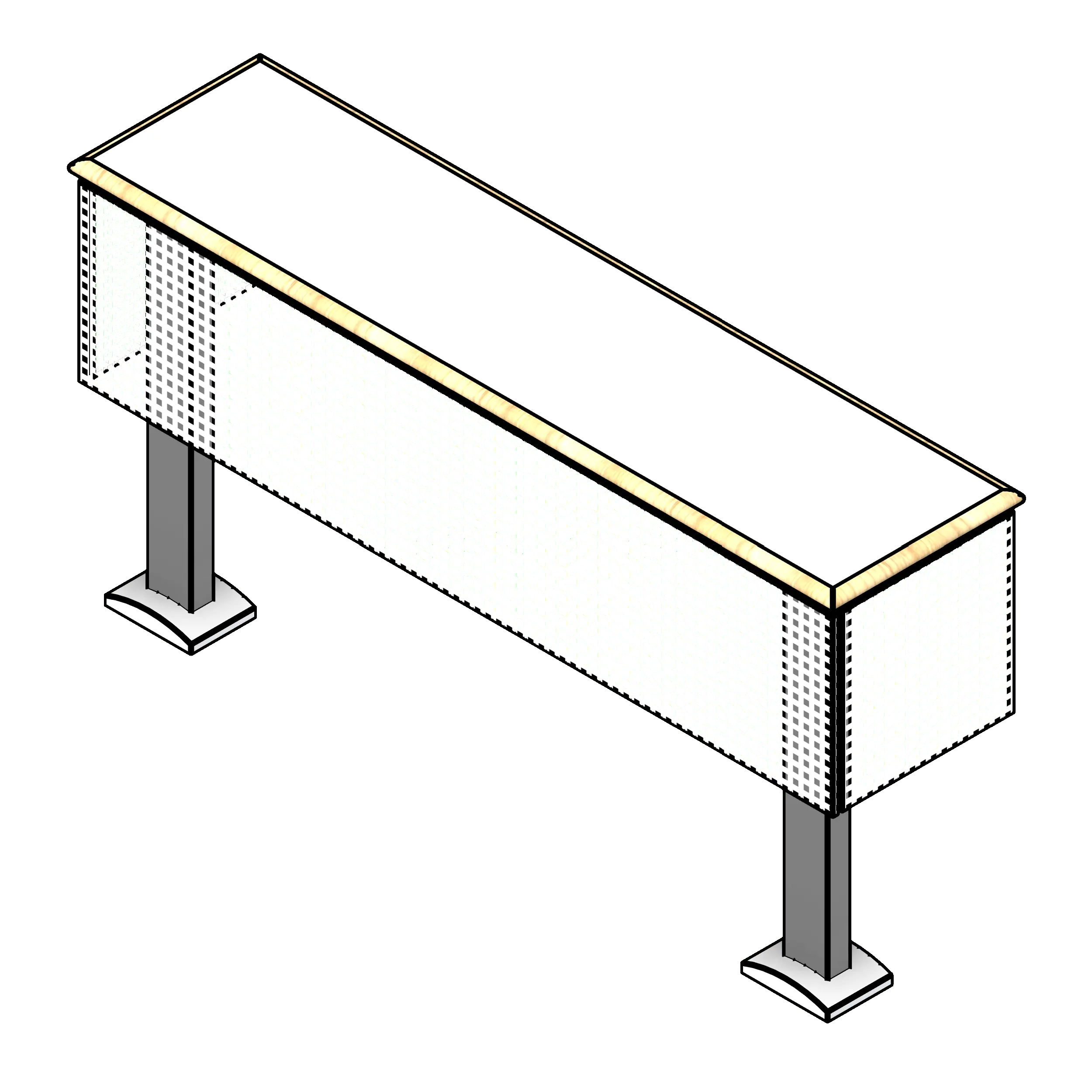 This table is designed for lecture halls, classrooms, and briefing rooms where occupants need to use a laptop or take notes. The line-based family can be sized to any length. To utilize this family, insert it into your project from the Fetch app, then draw a straight line from the start point to the endpoint, and the family will be placed at the specified size. From there, use the parameters in the Construction category of the property window to select between edge options and leg types. The material parameters can be utilized to adjust the frame color, tabletop finish, and privacy screen materials.