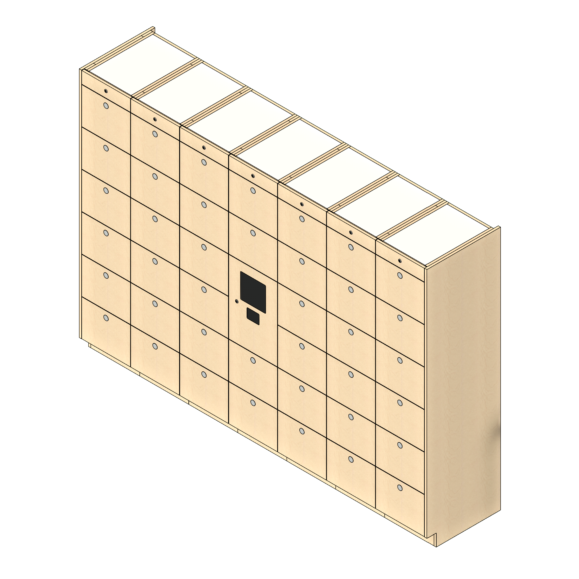 Physically, the smart locker systems consist of a bank of modular lockers with one of the lockers dedicated to housing the system hardware and power supply. A typical bank of parcel lockers is comprised of columns, with each column consisting of either six small lockers per column, a mixture of five or six small and medium lockers per column or two large lockers per column. Each column features a proprietary locking raceway that incorporates the required number of smart locking devices for the number of lockers in each column. Electronic locker systems are available in a variety of finishes to complement or match the environments in which they are installed.