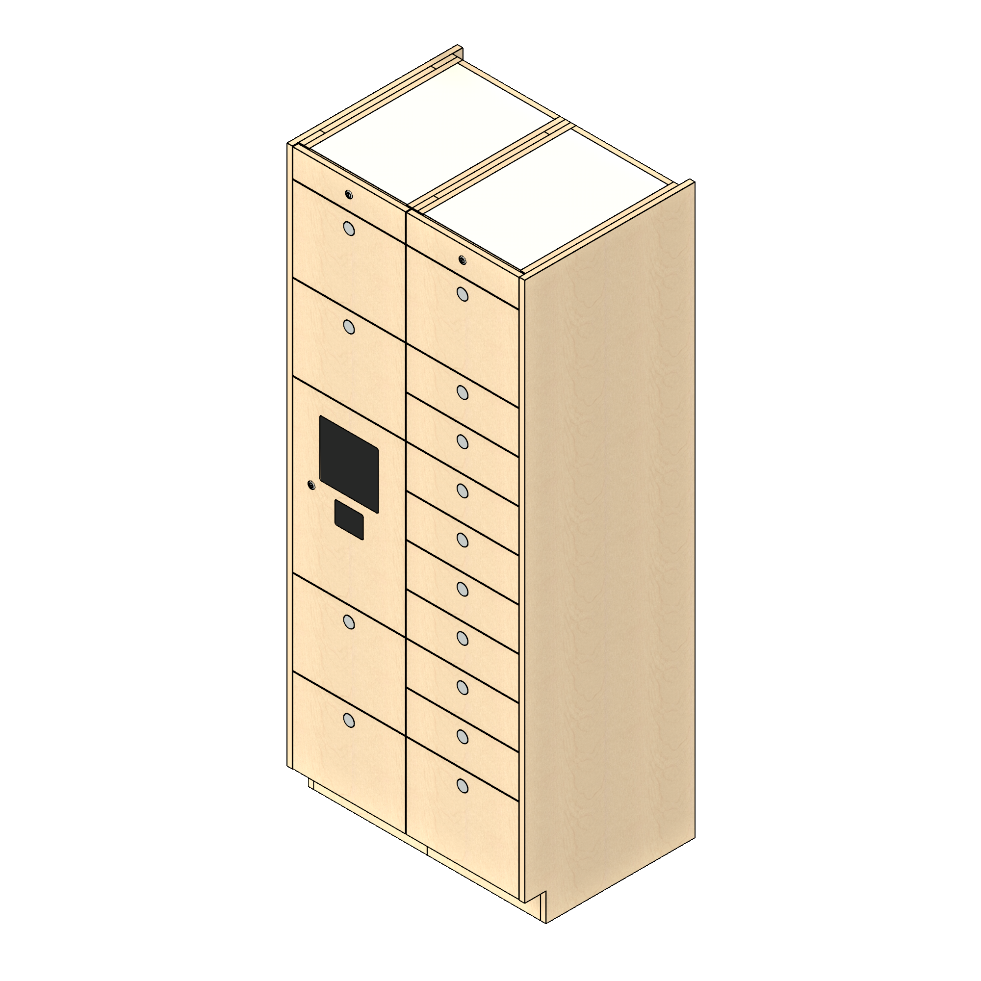 Physically, the smart locker systems consist of a bank of modular lockers, with one of the lockers dedicated to housing the system hardware and power supply. A typical bank of parcel lockers is comprised of columns, with each column consisting of either six small lockers per column, a mixture of five or six small and medium lockers per column, or two large lockers per column. Each column features a proprietary locking raceway that incorporates the required number of smart locking devices for the number of lockers in each column. Electronic locker systems are available in a variety of finishes to complement or match the environments in which they are installed.
