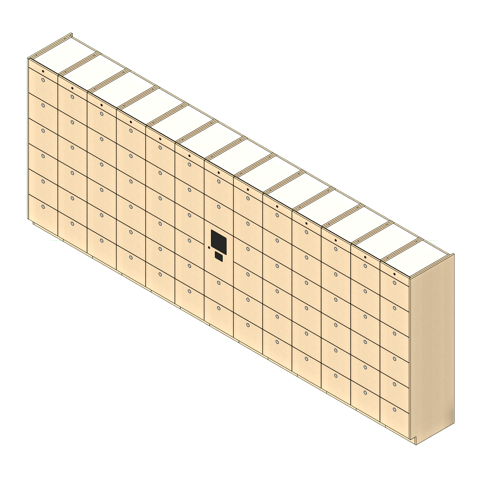 Physically, the smart locker systems consist of a bank of modular lockers, with one of the lockers dedicated to housing the system hardware and power supply. A typical bank of parcel lockers is comprised of columns, with each column consisting of either six small lockers per column, a mixture of five or six small and medium lockers per column, or two large lockers per column. Each column features a proprietary locking raceway that incorporates the required number of smart locking devices for the number of lockers in each column. Electronic locker systems are available in a variety of finishes to complement or match the environments in which they are installed.