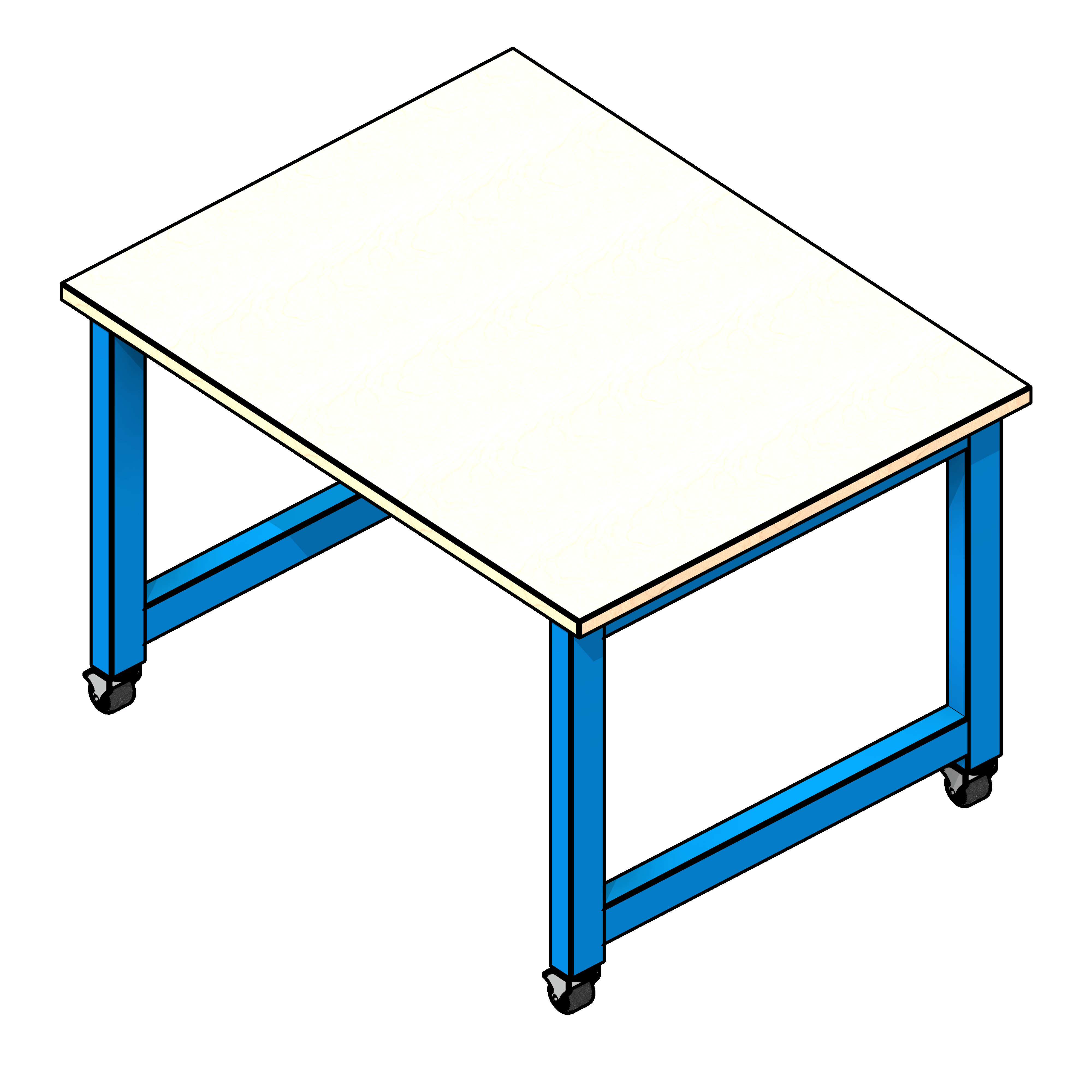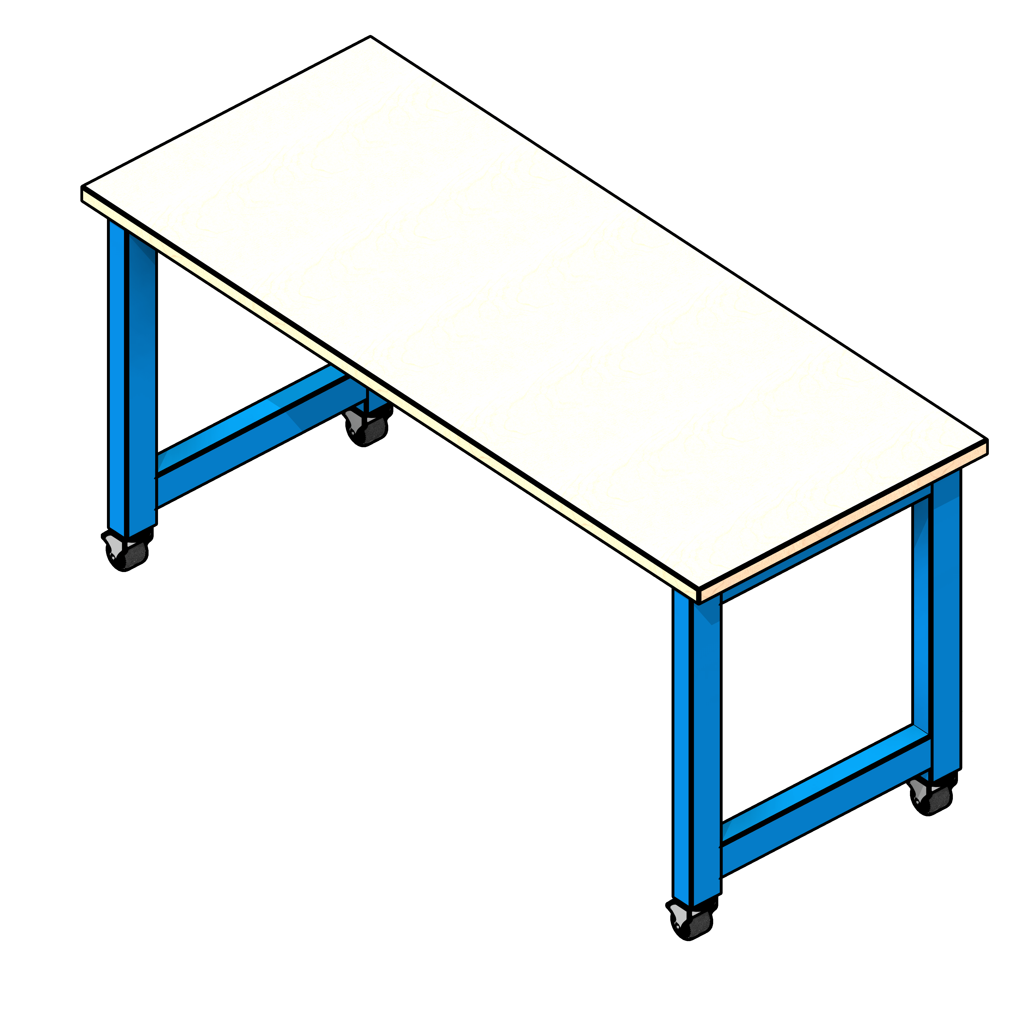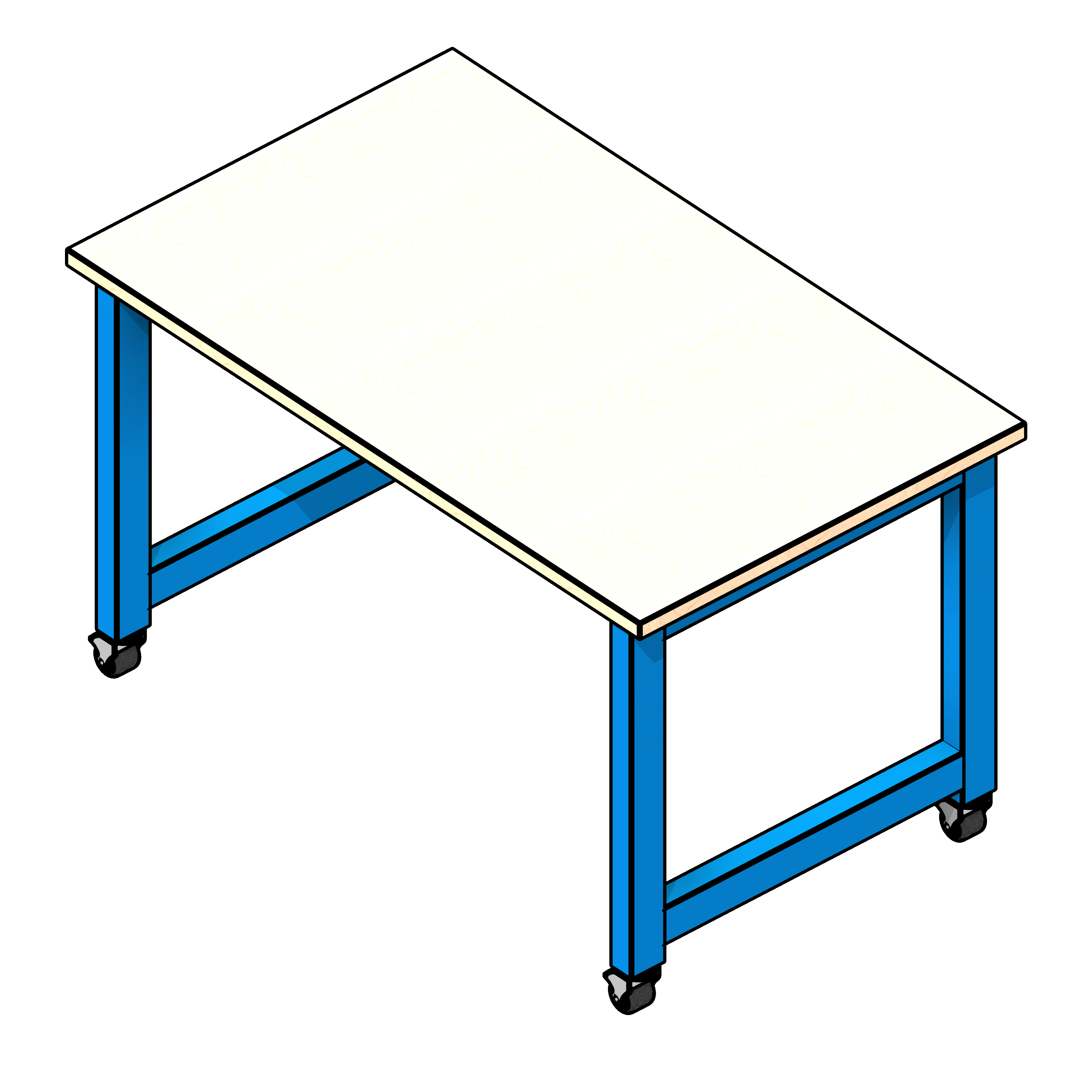 The educational workstation is designed to create an area for work to be completed. It is designed to provide a large working area and an optional modesty panel attached to the back of the desk for privacy. To use this family, open the fetch app, then click on the model to insert it into your project. There are four countertops and five different leg colors in this family. You can choose from laminate, hardwood, phenolic, and stainless steel countertops. You can also choose from blue, red, green, orange, and purple colored table legs. In the properties browser under construction, you will find the option to add a modesty panel, and by unchecking it, you can see to the front of the table.