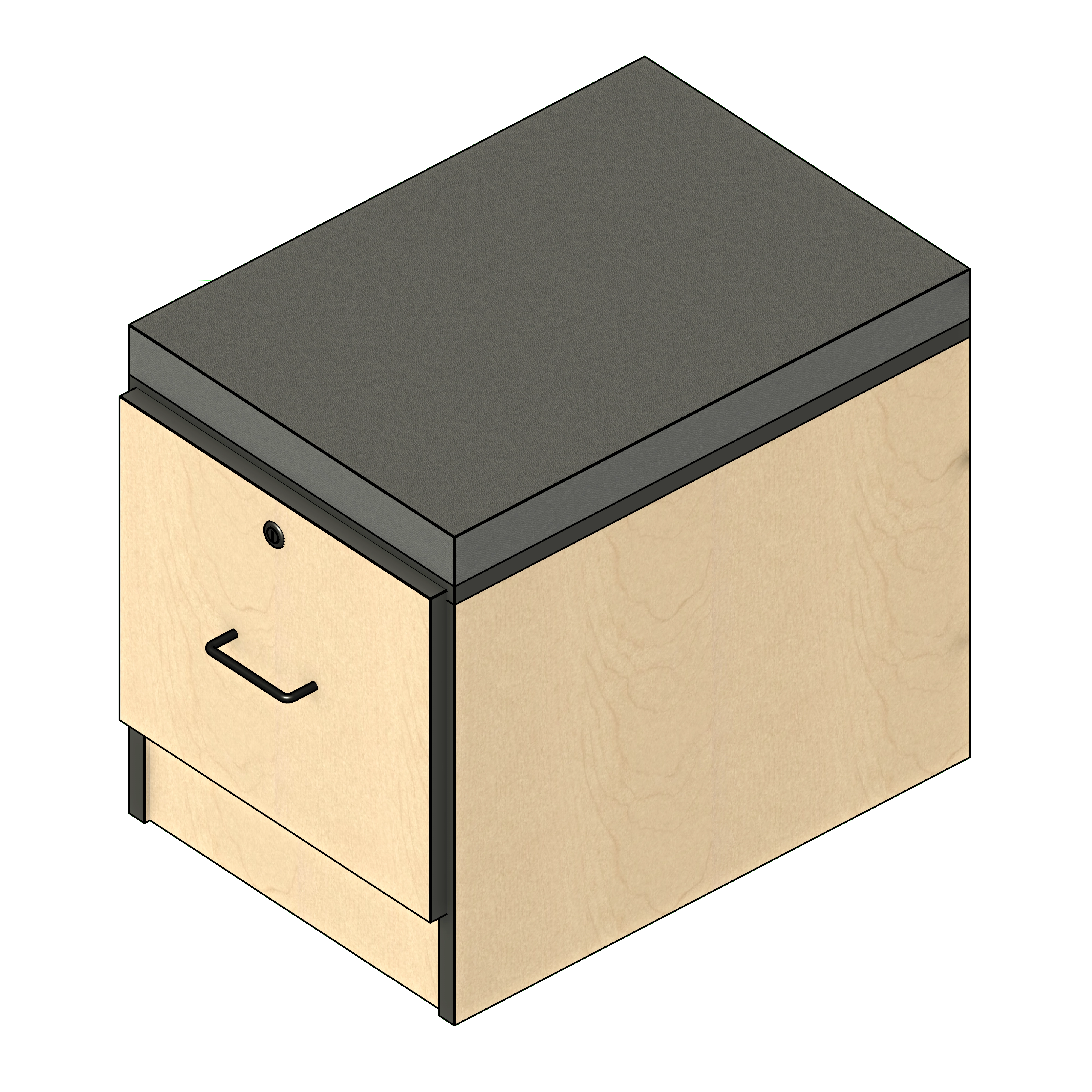This cabinet includes options to add locks to keep items secured. These are most likely found in educational environments, offices, or libraries. The base includes integrated levelers for stability, and models are available with or without a top, providing adaptable design configurations. This product line differentiates itself with the inclusion of soft seating options making it ideal for environments that require both functionality and comfort. The modular design offers a 4-inch fully finished base with built-in levelers, concealed hinges, and optional deadbolt locks for added security. To use this family, open the fetch app, then click on the model to insert it into your project. In the properties browser you can choose between the four different types of cabinets provided. Also, under construction, you will find the option to add locks to the drawers. The dimensions category allows you to click on custom dimensions to enter any depth or height.