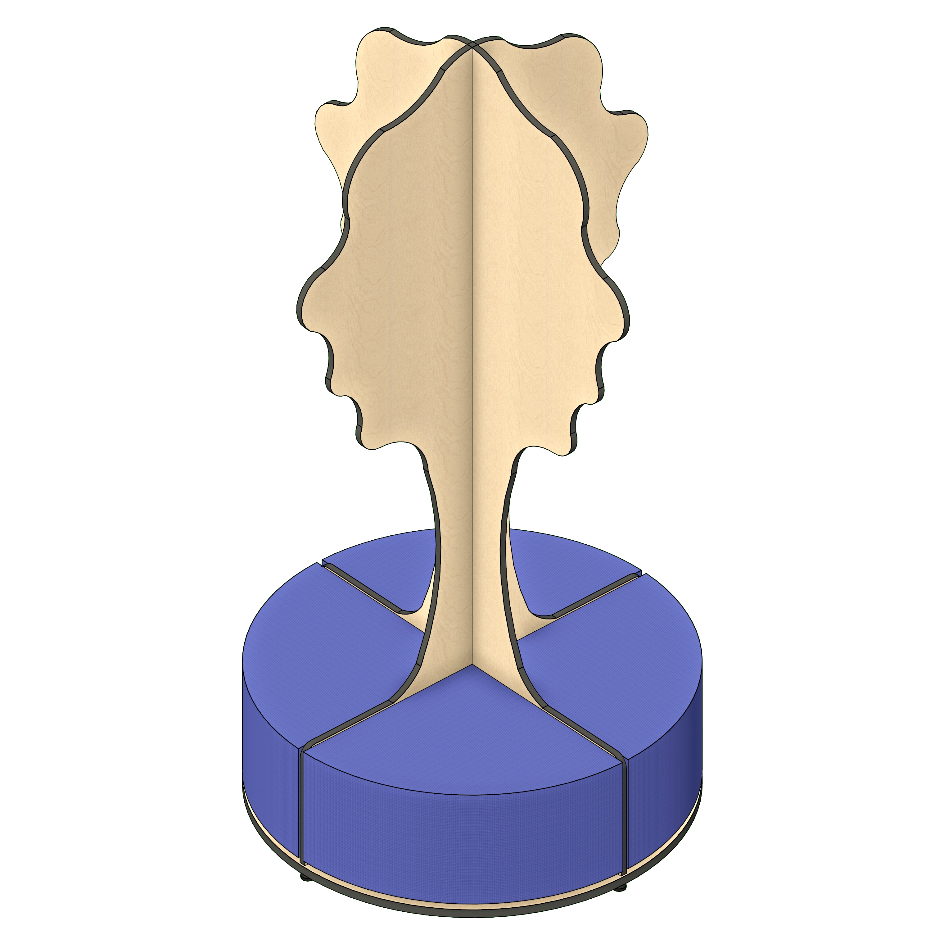 This reading tree with seating for four is an innovative and versatile piece of furniture designed for communal and educational spaces such as libraries, schools, and activity centers. It features a round base panel, multiple shaped panels forming the "tree," and optional soft seating, offering both comfort and aesthetic appeal.