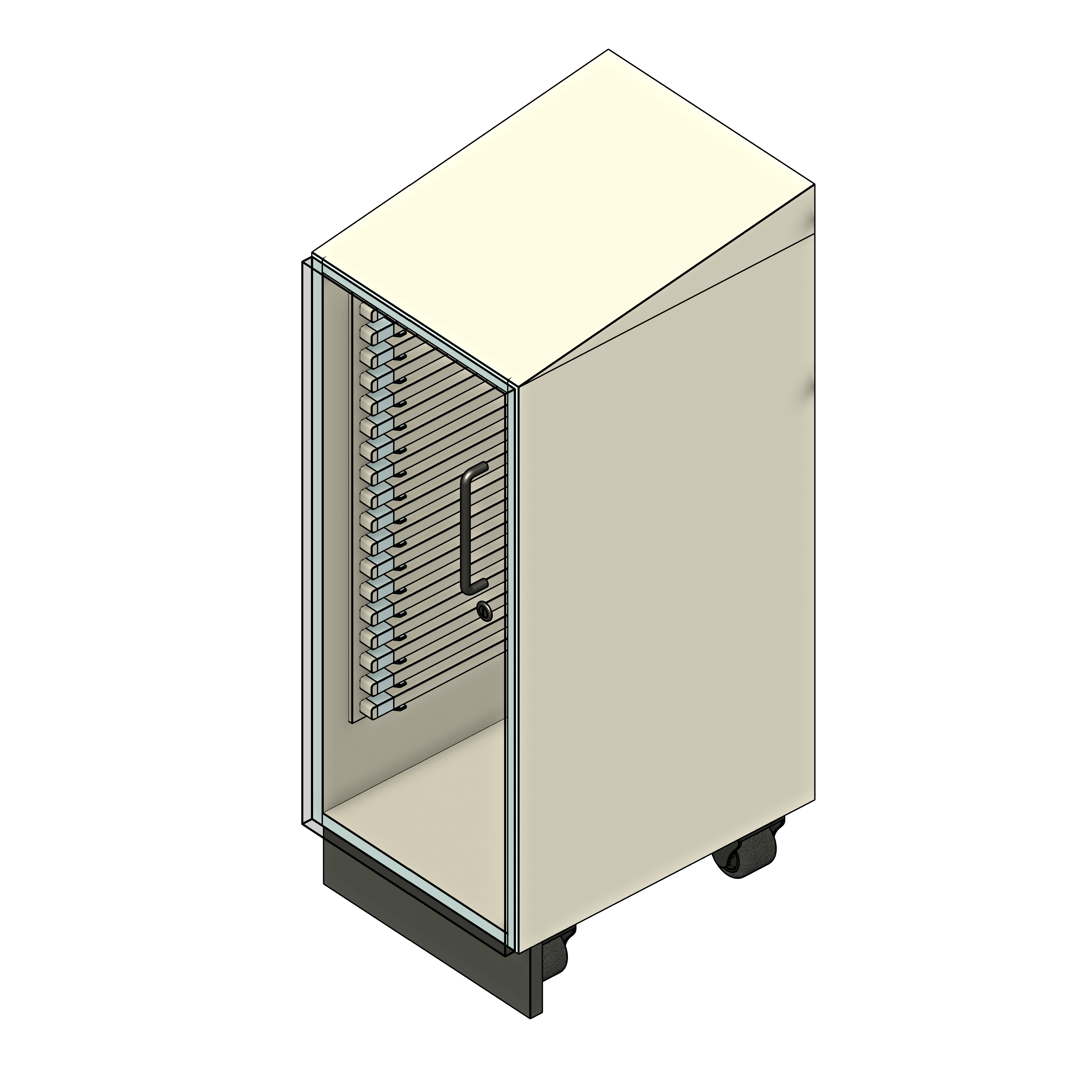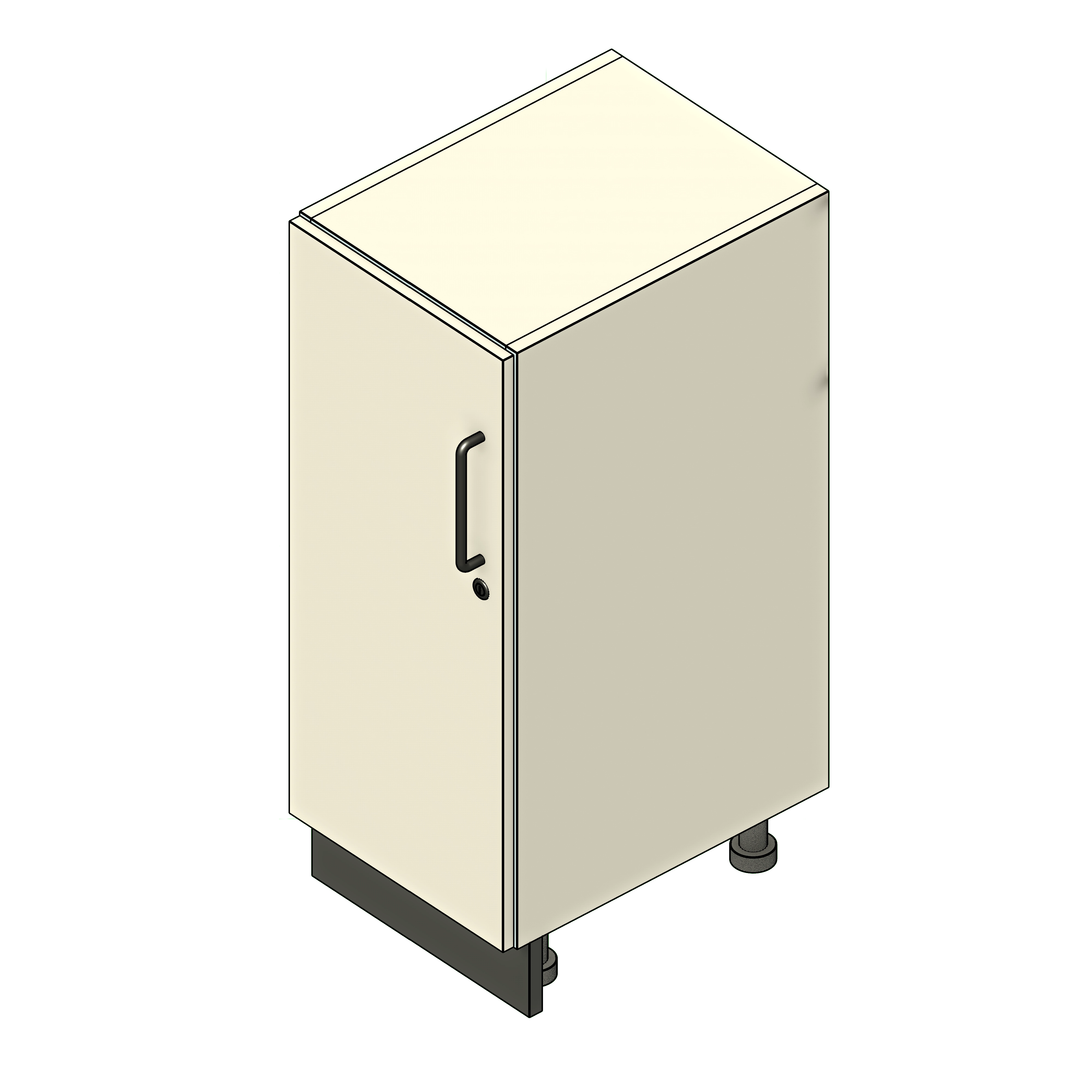These specialized cabinets are engineered for optimal storage and organization of laboratory essentials, providing a seamless integration with modern architectural designs. Unlike standard storage solutions, these cabinets offer customizable shelving options and robust construction to support various scientific instruments and materials. Perfect for educational, research, and medical facilities, these cabinets optimize space and promote efficiency and safety in the lab. Equip your lab with storage solutions that cater to the unique demands of scientific endeavors, setting your facility apart with unmatched quality and innovation. To use this family, open the fetch app and click on the model to insert it into your project. This model was designed with four types of cabinets to choose from. Under construction, you can add a sloped top, choose the door type (solid laminate, clear acrylic, or a roller shutter door), add end panels to the sides, and choose between a plinth or caster base. Under dimensions, you can check custom dimensions to enter your desired width, depth, and height.