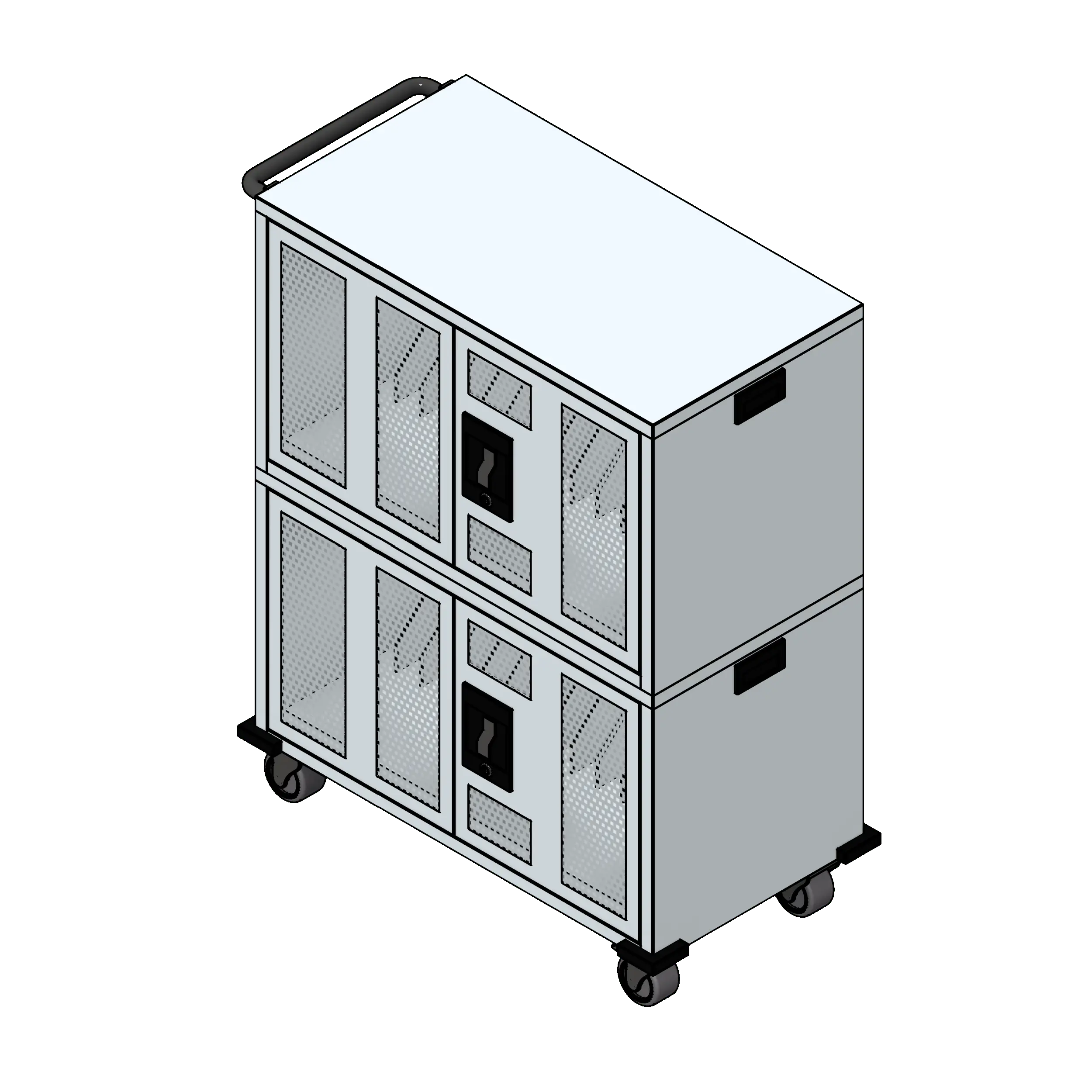 This family is designed on a base cabinet module. To choose between 16 and 32-slot configurations, check either Single High Unit or Double High Unit. Casters can be added or removed using "ADD_Casters." Price, weight, and capacity fields will automatically update with family options.