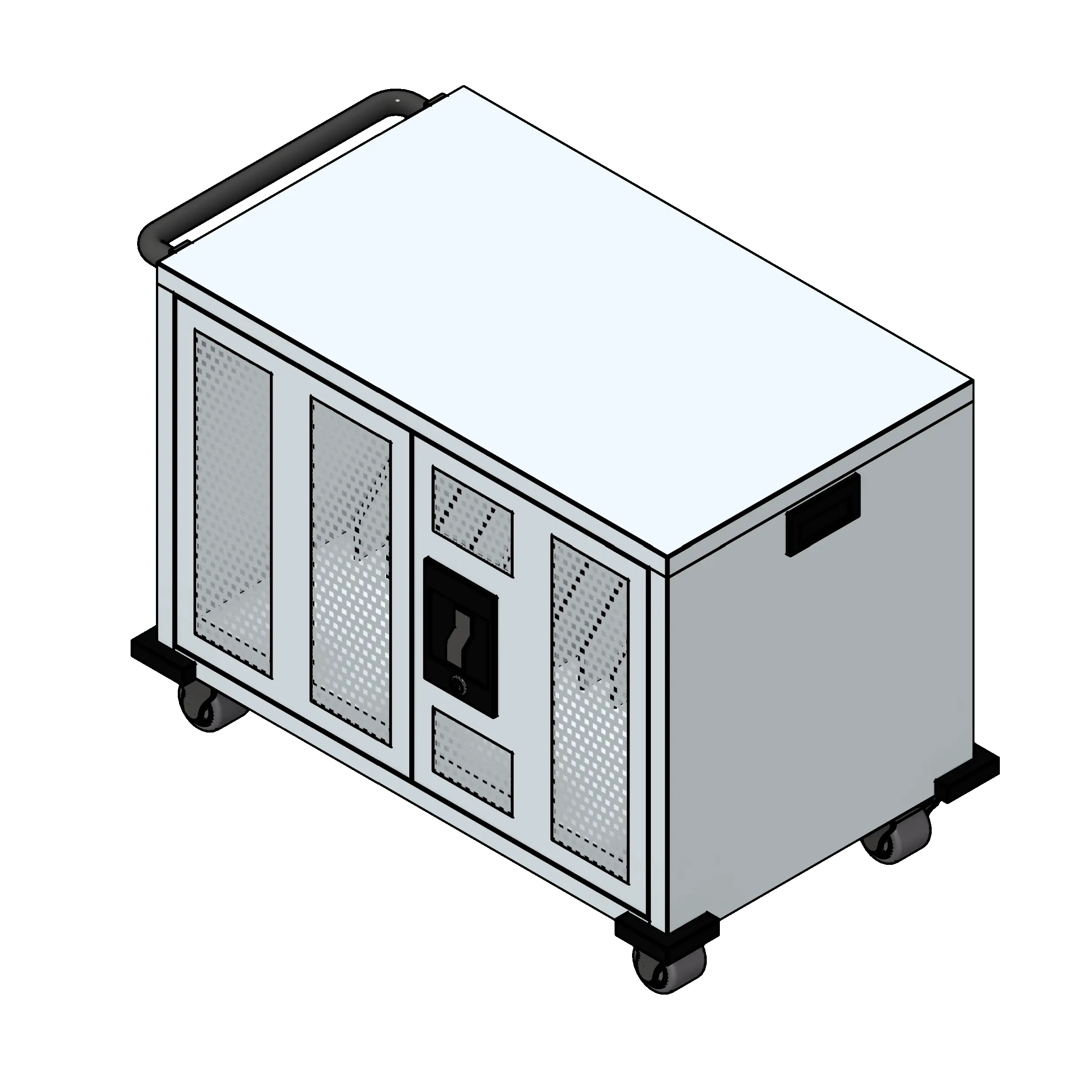 - Mobile laptop and tablet charging cart frequently used in schools and libraries