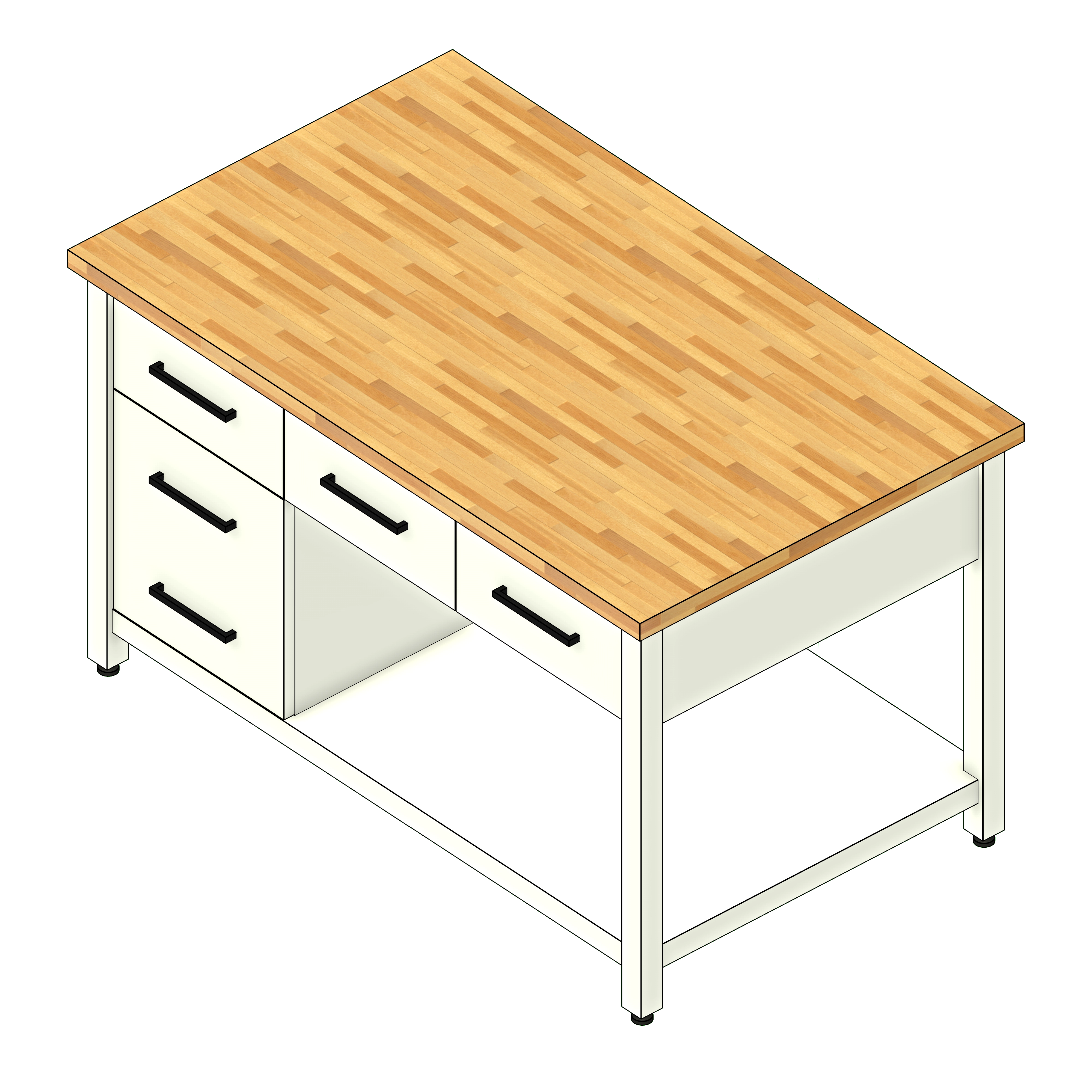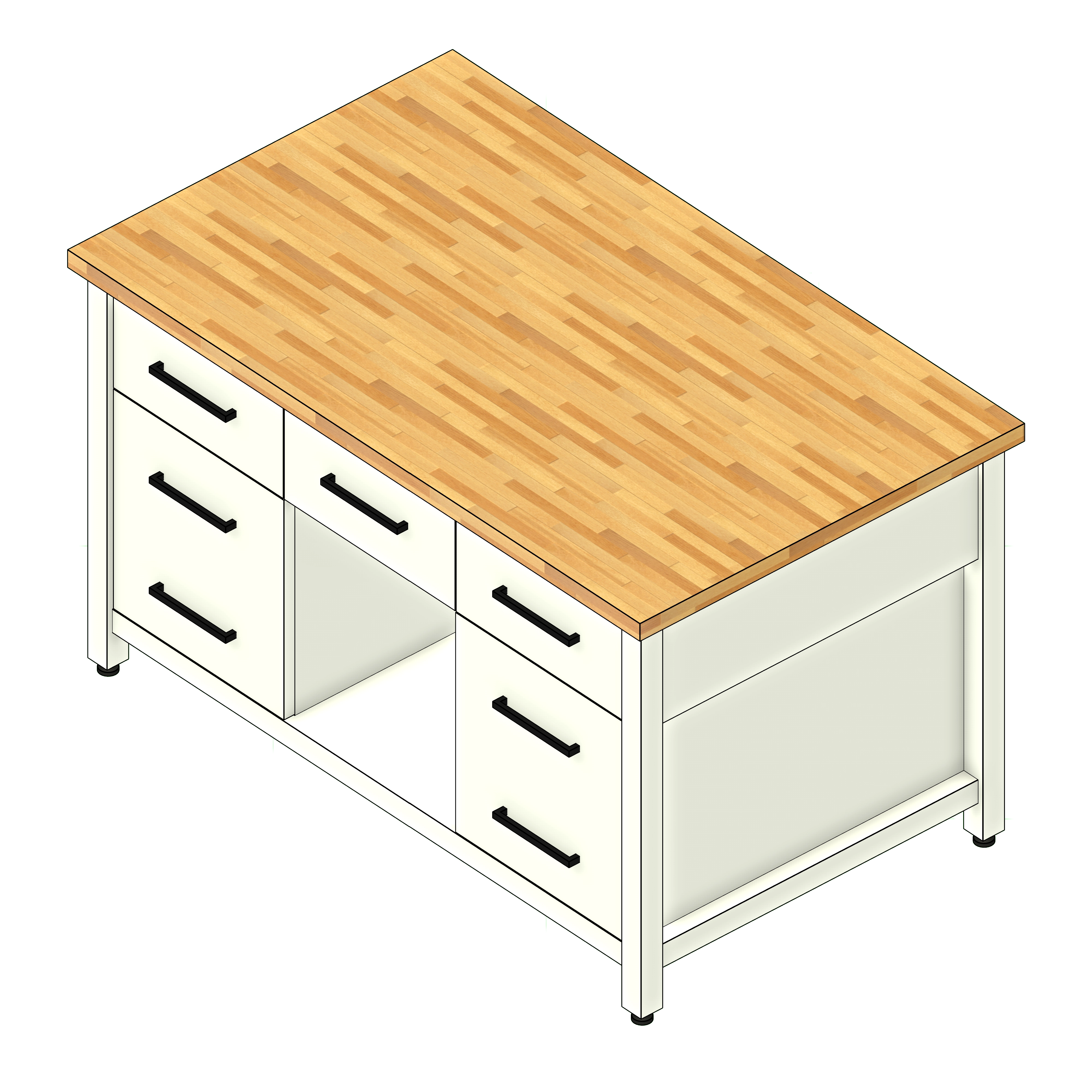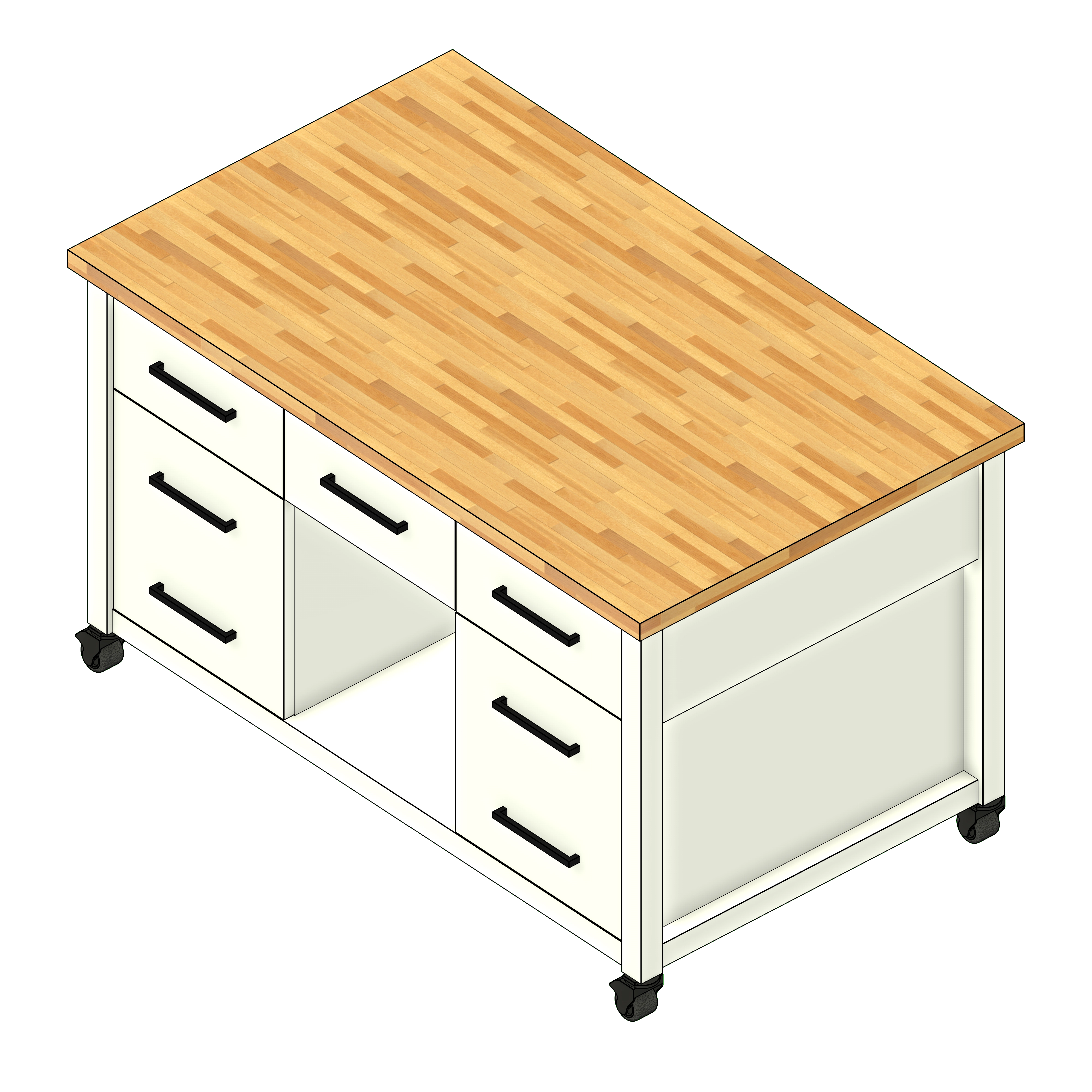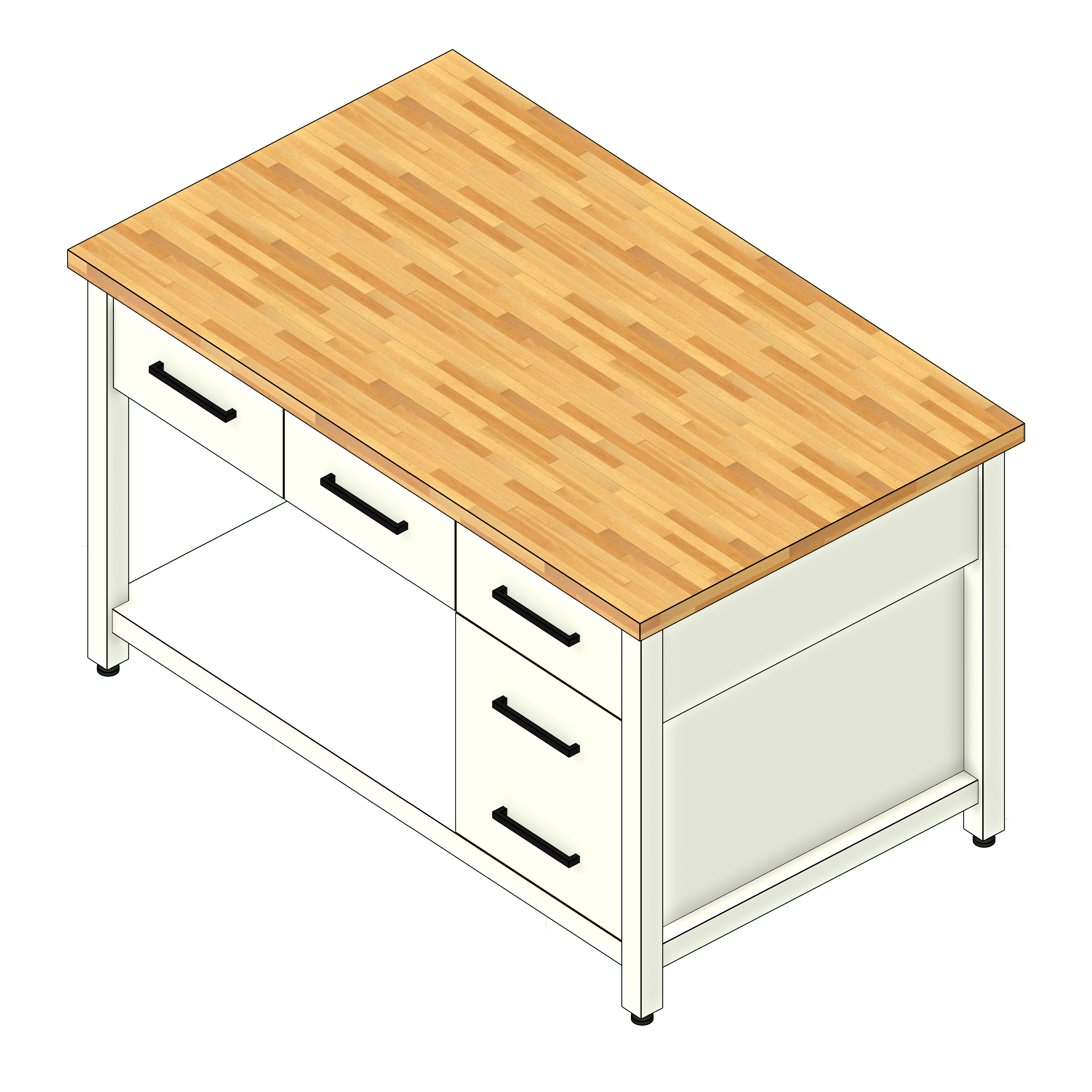 This versatile piece serves as a central hub for culinary activities and adds elegance and utility, making it ideal for chefs and entertainers alike. Its sturdy construction and premium materials ensure durability while maintaining an elegant appearance, setting it apart from other kitchen workstations in its class. Perfect for those seeking a blend of style and practicality, this kitchen island is a must-have for enhancing your kitchen environment's functionality and visual appeal. To use this family, open the fetch app and click on the model to insert it into your project. Under construction, you can choose to add bottom cabinets on both the left and right sides. You can also choose between casters or glides for the island legs. Under dimensions, you can check custom dimensions, allowing you to enter your desired width, depth, and height.