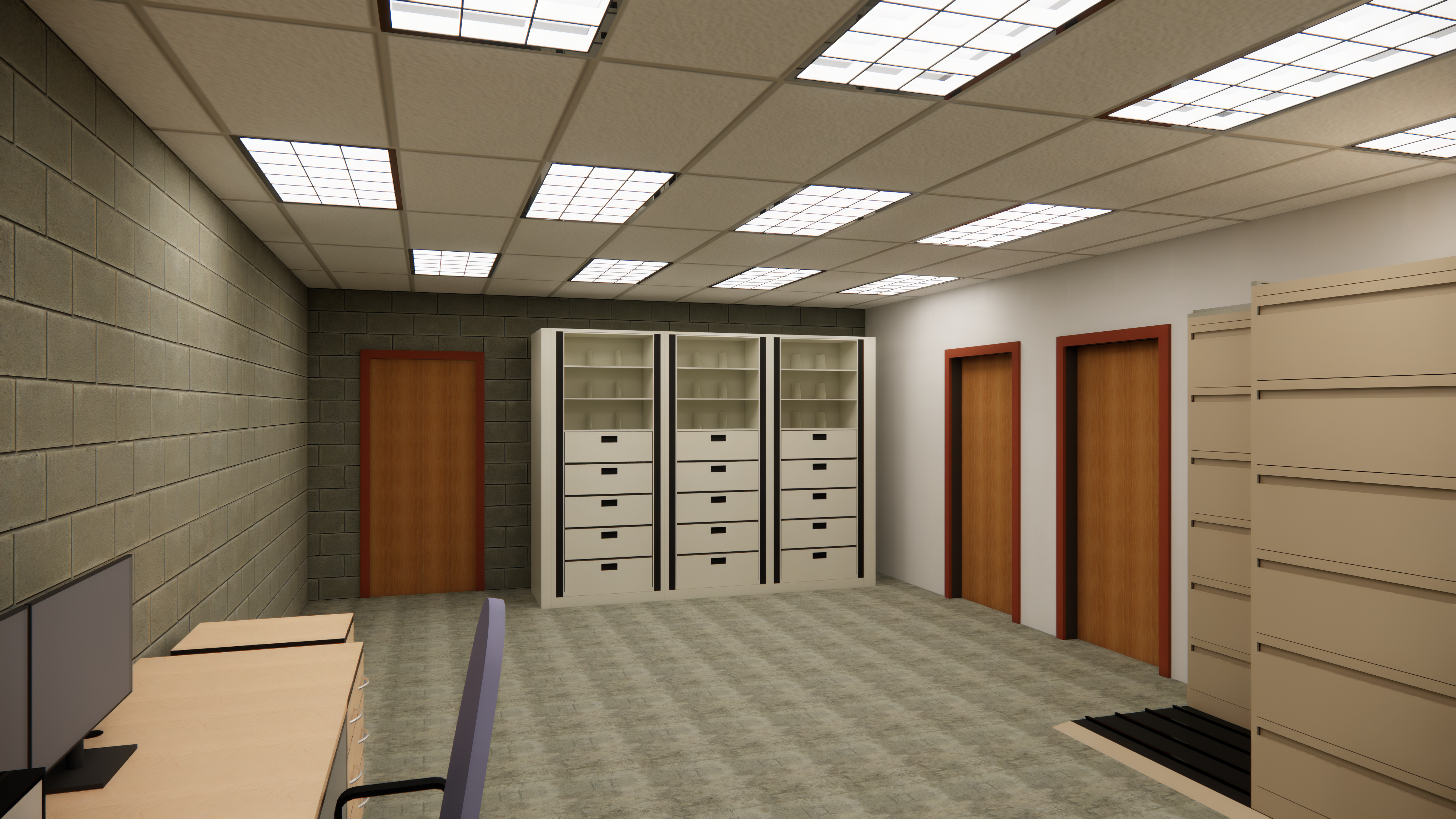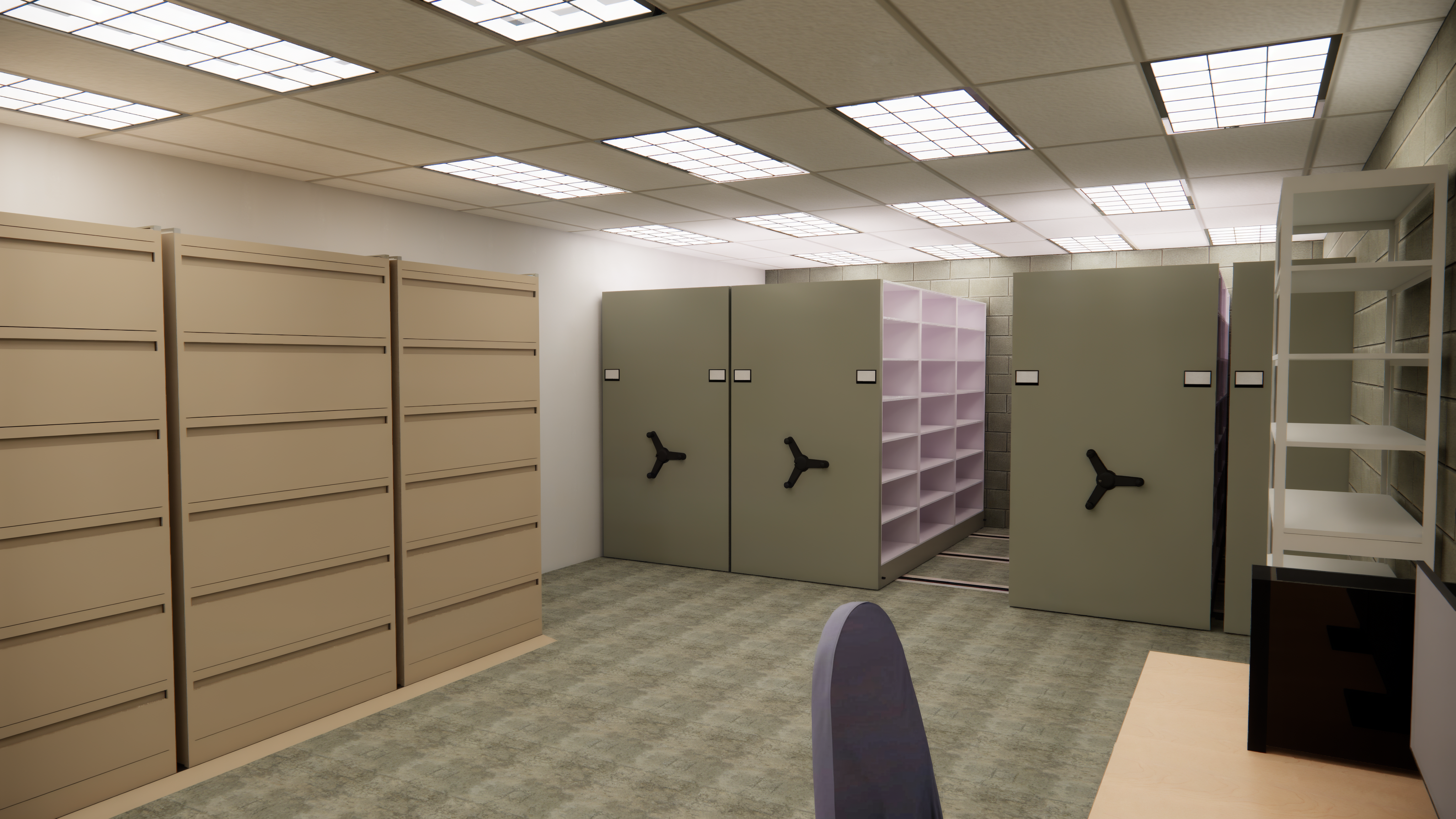 This space accommodates both long-term archival storage and daily records management, balancing high-capacity storage systems with accessible work areas for staff. The layout prioritizes clear circulation, logical zoning, and adaptability to evolving storage needs.