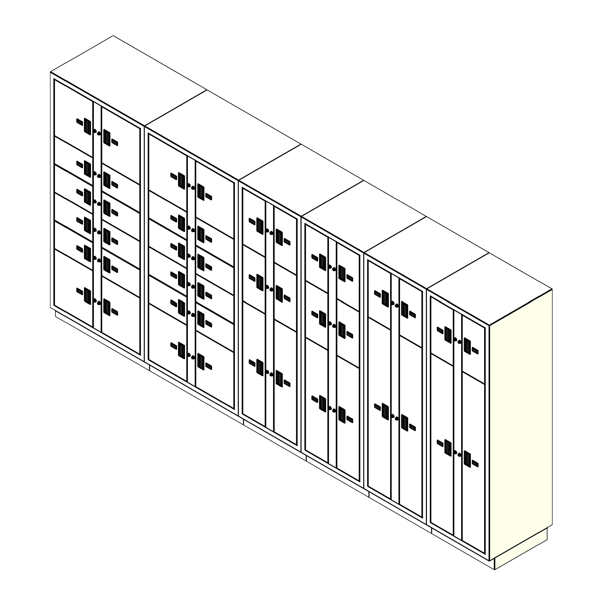 Each kit comes with a variety of options that each have a unique price attached to them. A typical solution would be a run of lockers in a linear direction