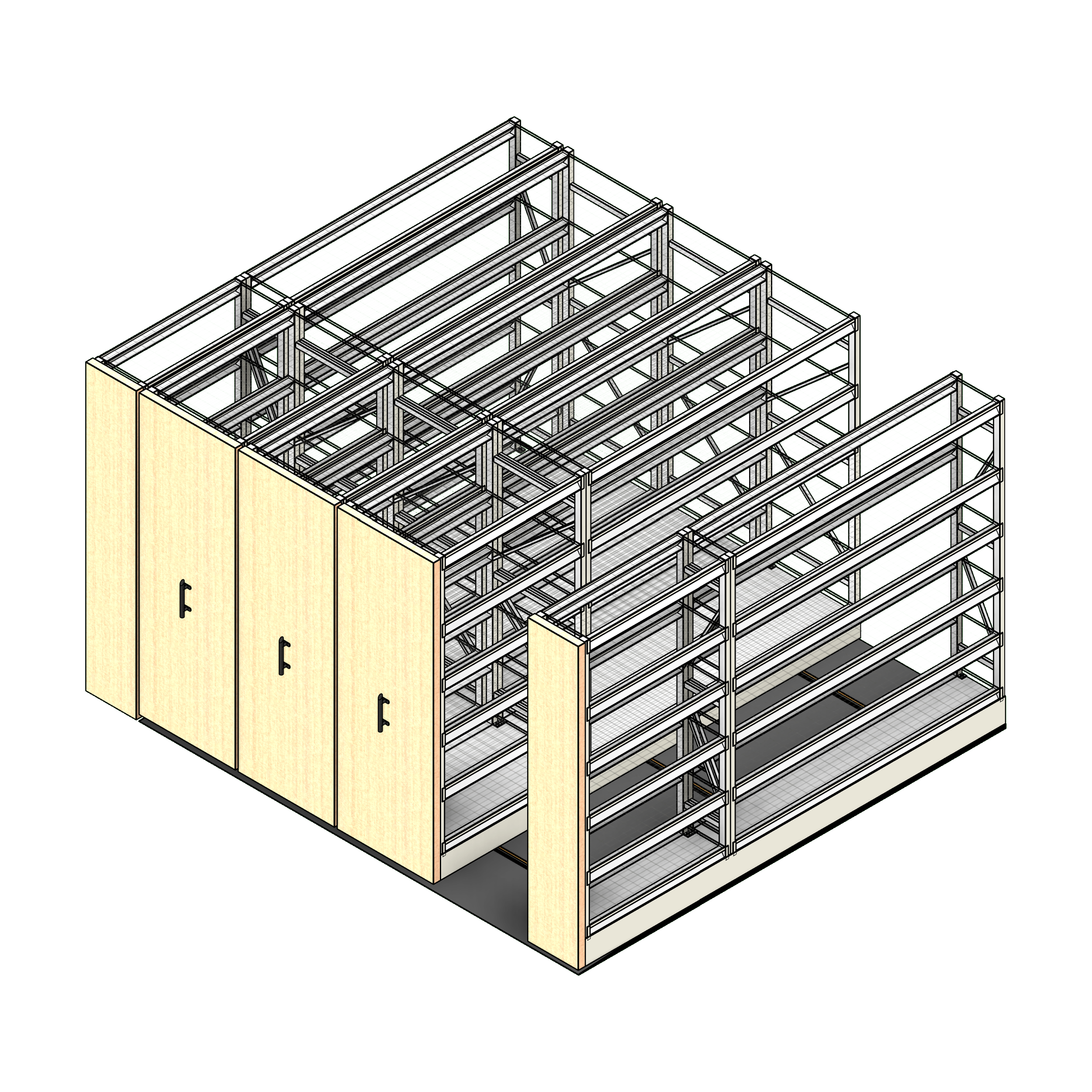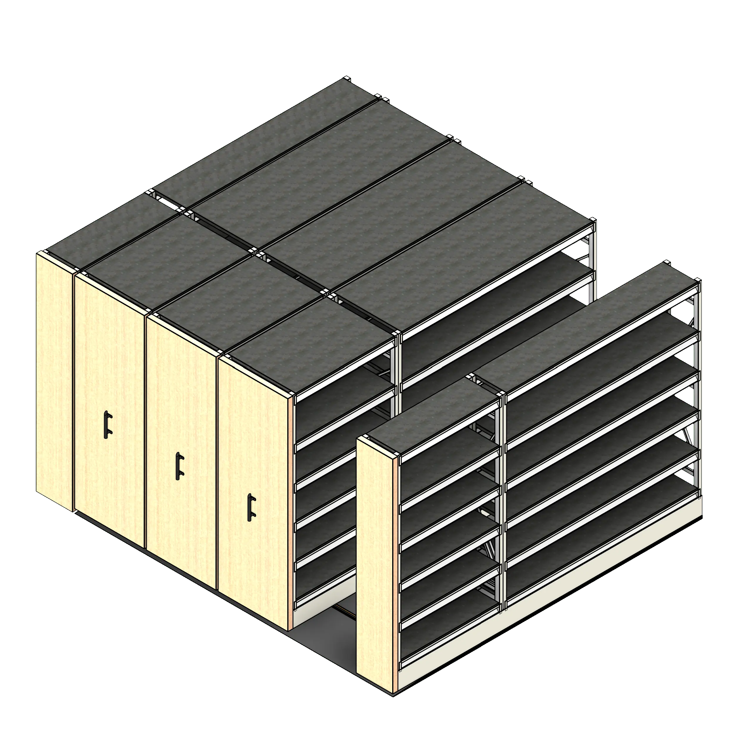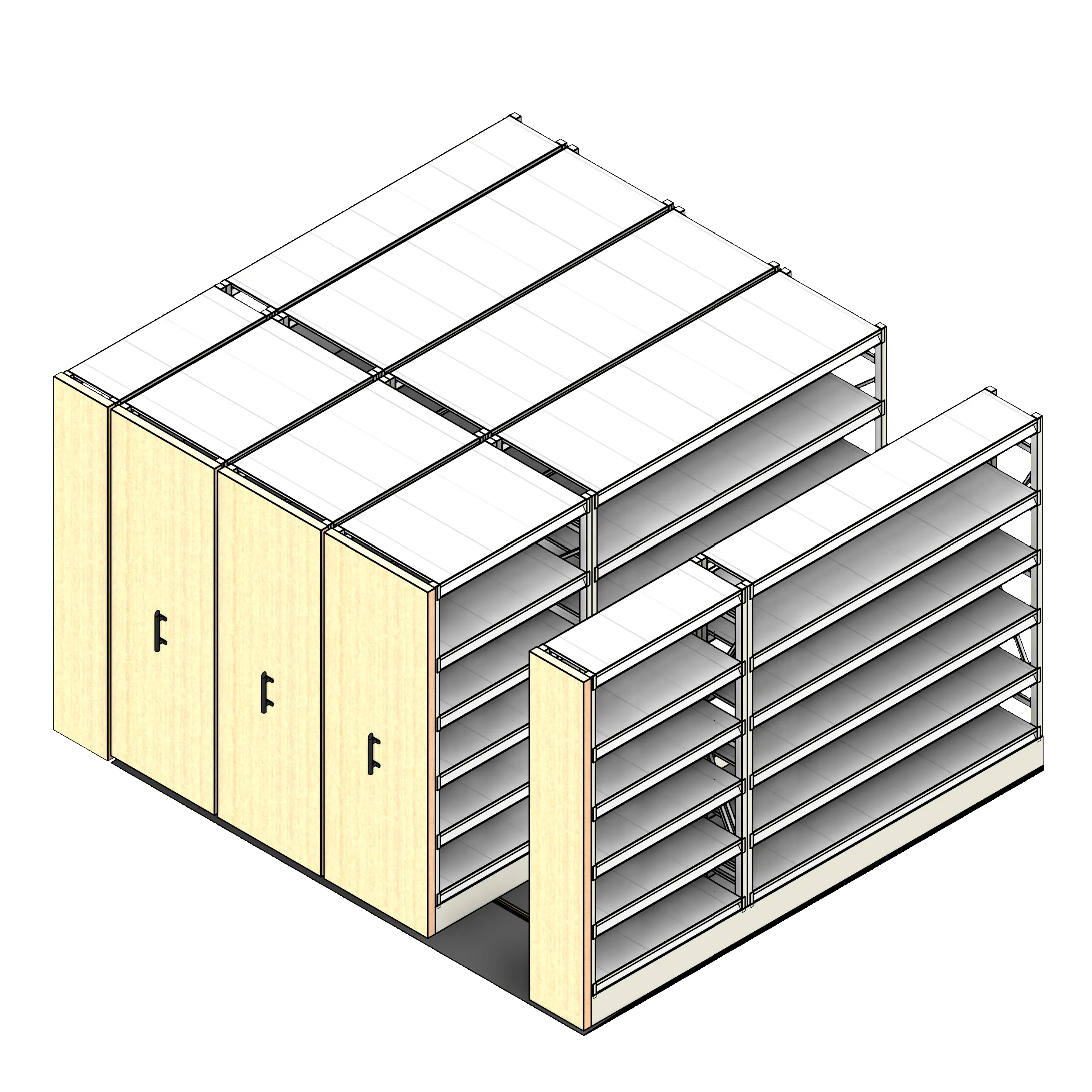 This system is particularly distinguished by its ability to be customized with various shelving and cabinet options, and its operation modes—manual, mechanically assisted, or powered—cater to different activity levels and user preferences. Thanks to its configurable design, it integrates seamlessly with existing architectural layouts and ensures user safety with features like color-coded lock indicators and safety locks.