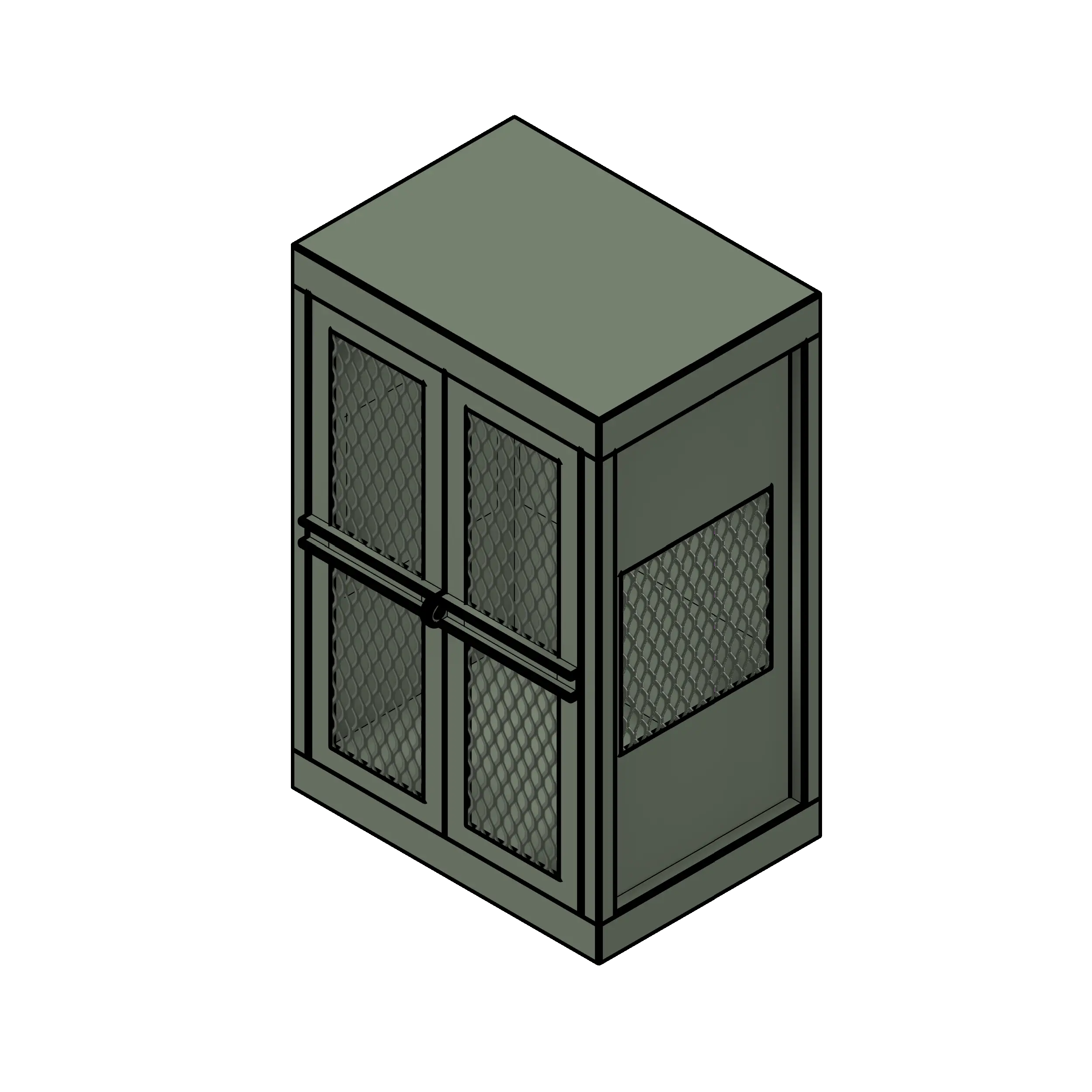 This universal weapons rack system is highly flexible and easy to use. After placing, simply select the desired width and height. You may add carrying handles by using the ADD_Handles check box. The universal weapons rack can also be viewed open by toggling between the options under "Visibility".
