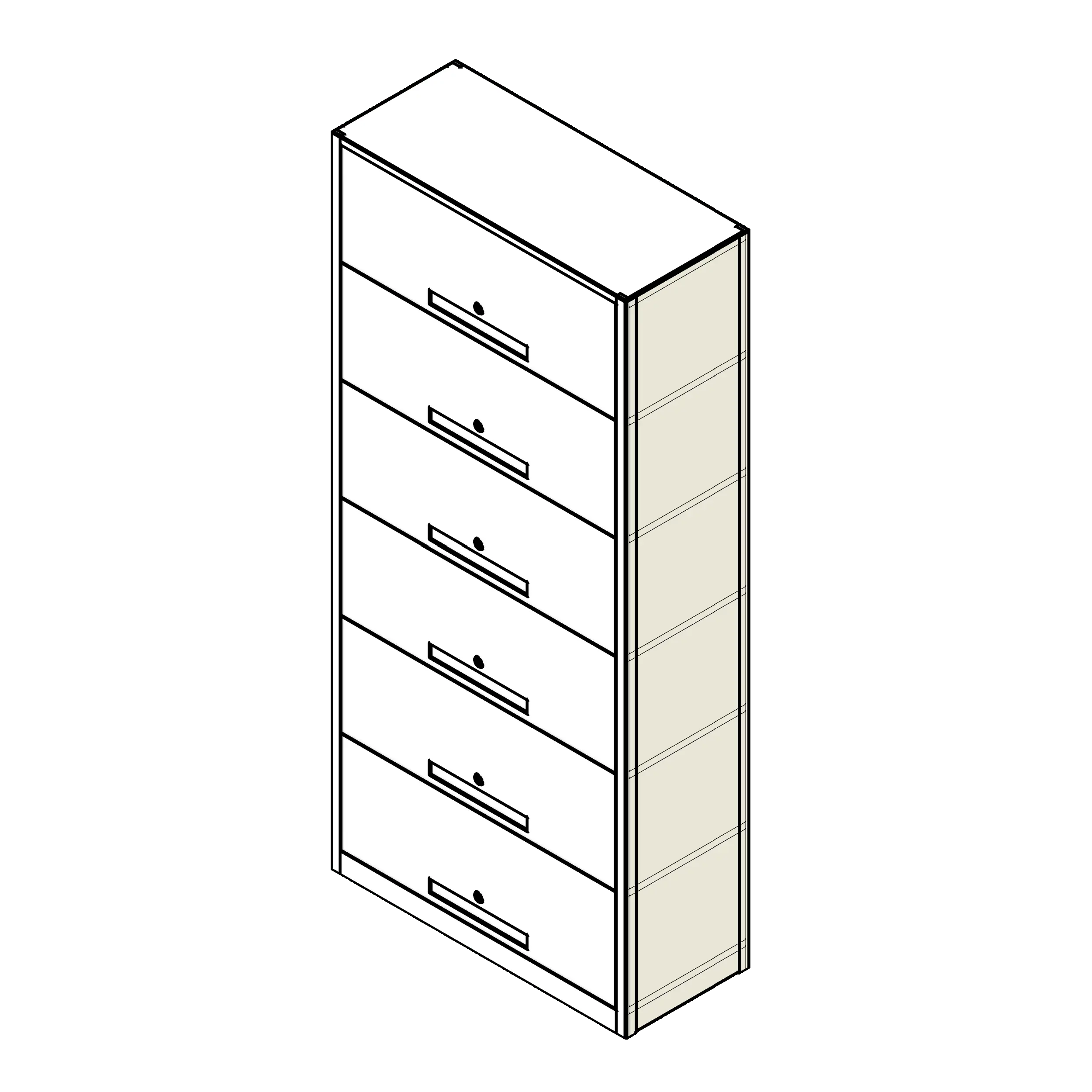 This family is designed to make planning your next filing storage project easy. To use it, click on the image in the fetch app and click inside your Revit project to place it. Use the parameters in the properties browser to select the overall cabinet depth, receding door height, and the number of tiers desired. The family also includes a back panel and a system of starter and adder configuration options to create more complex rows of systemized shelving.