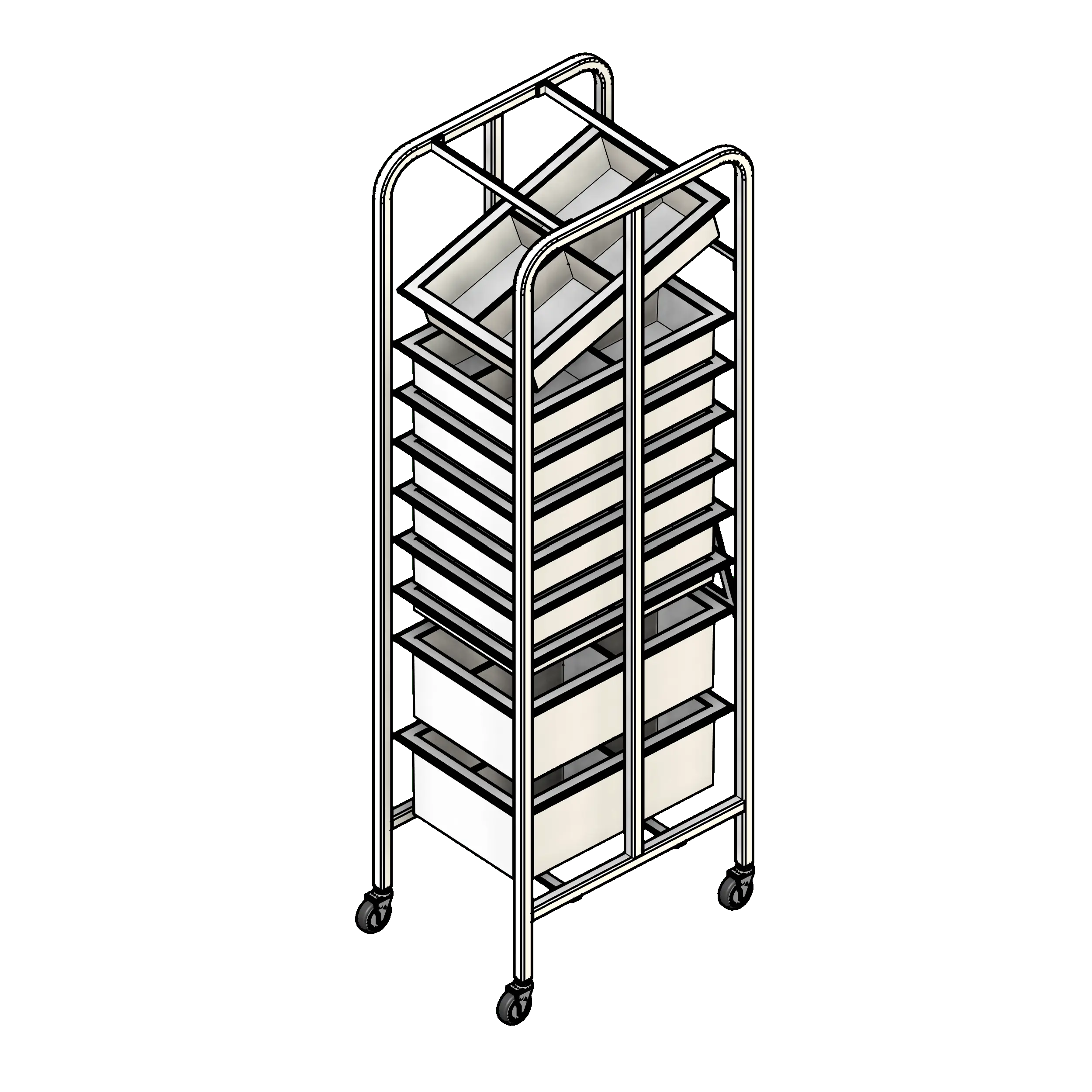 - Baskets can be angled to create gravity feed system