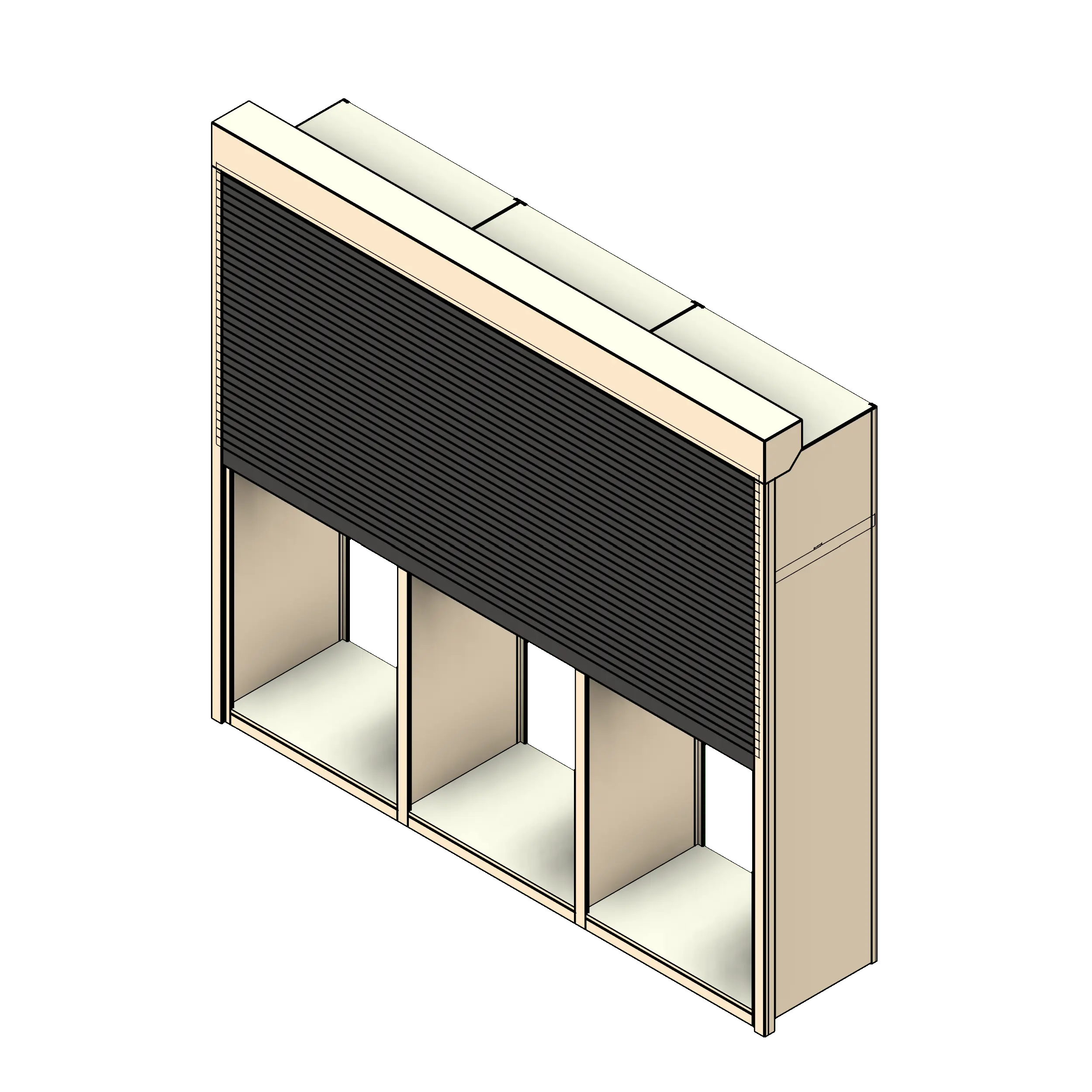 - 112" wide roll-down, top-mounted security shutter
