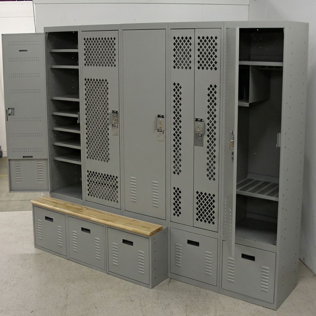 Each kit comes with a variety of options that each have a unique price attached to them. A typical solution would be a run of lockers in a linear direction.