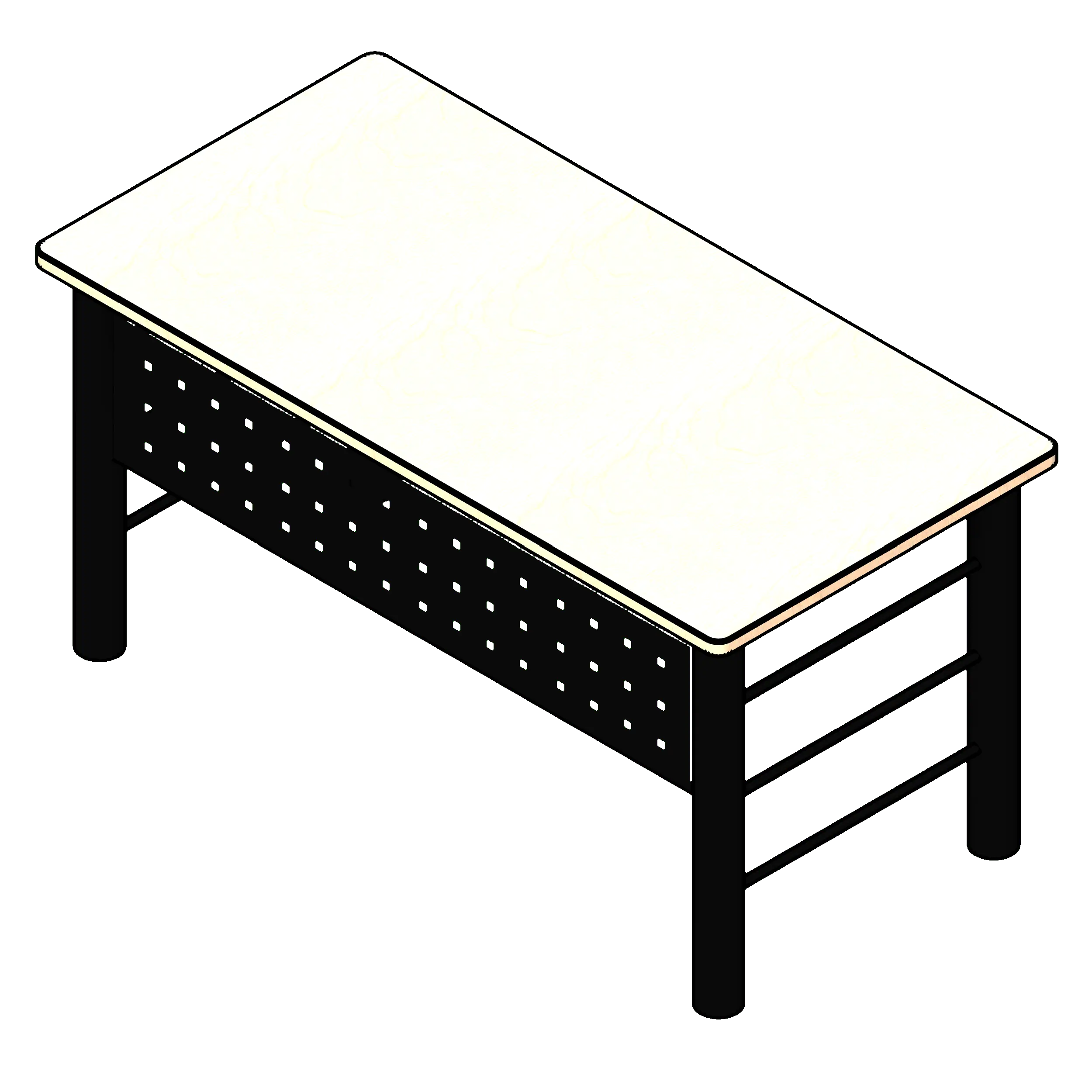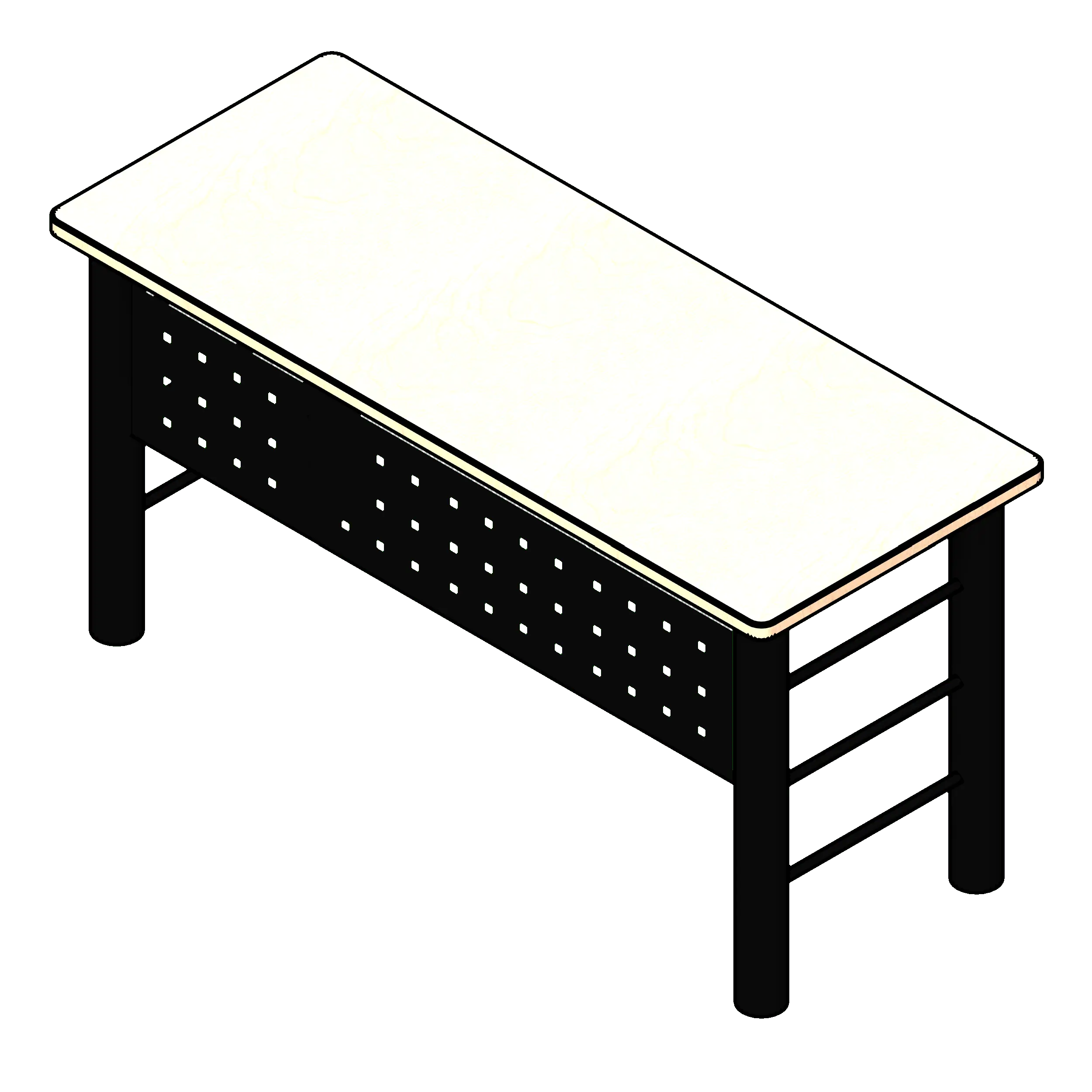 This educational tutor desk has a very simple design and use. This tutor desk has a combination of sizes, simply enter the desired depth (24”, 30”, or 36”) and the desired width (48”, 60”, or 72”). The fixed height of this desk is 30”. This Revit models is packaged with detailed and specific information without the extra requirements needed of a massive file size.