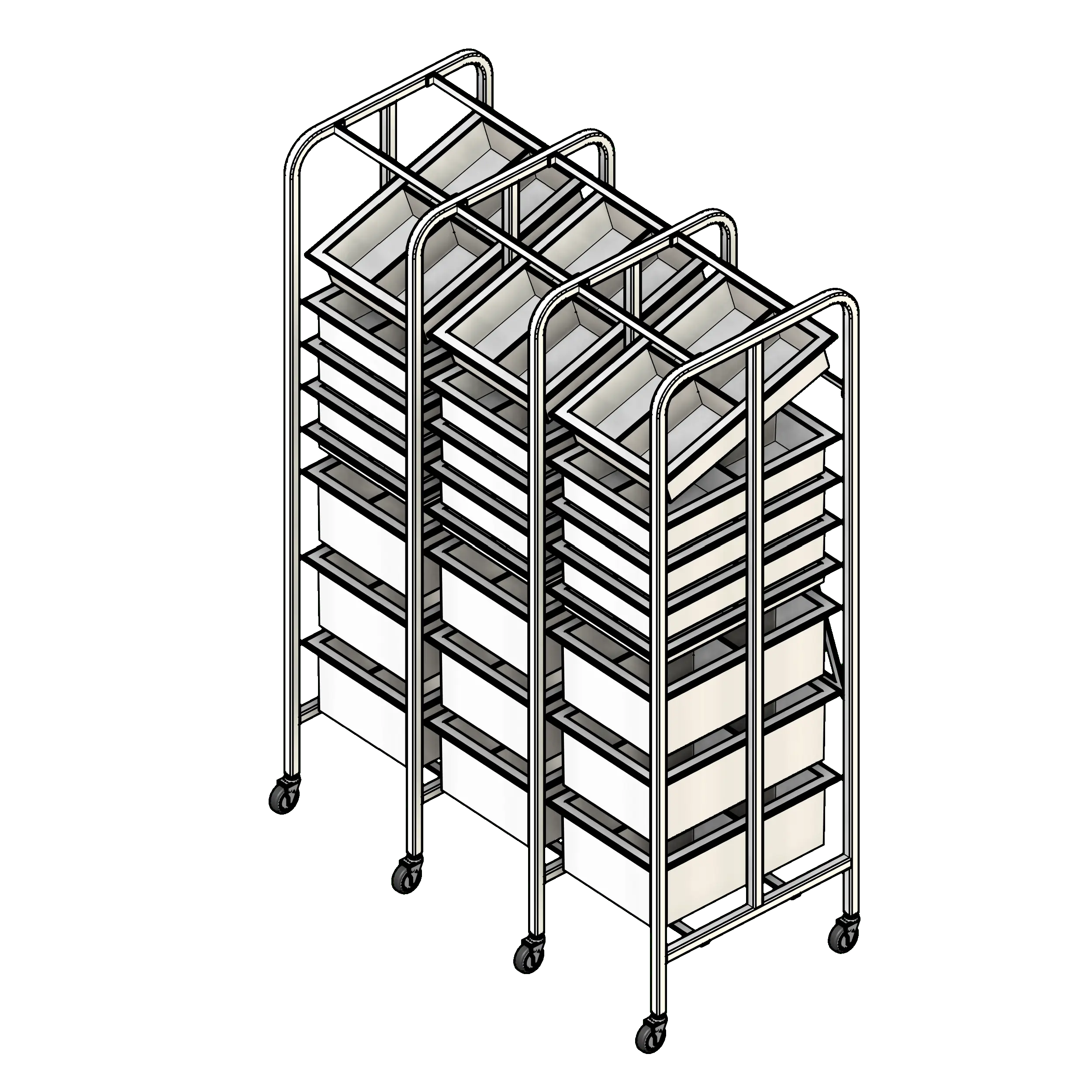 Medical racks are used in any setting where medical tools must be safely secured, such as doctor offices, medical schools, and operating rooms. The 3-column wide and 8-basket high are great for exam room storage to create organization for medical supplies during procedures. The triple column allows for extra space for medical and other storage.