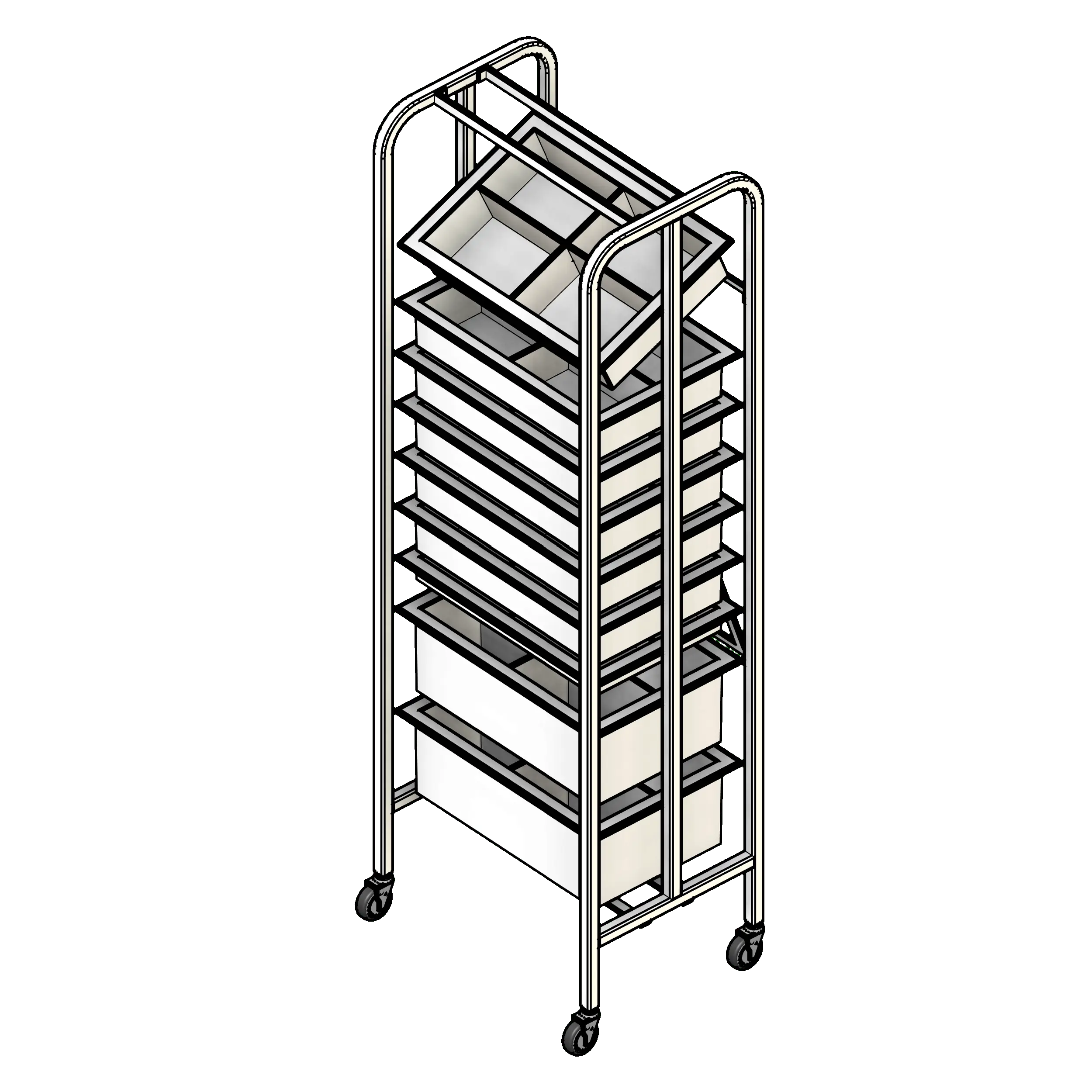 Medical racks are used in any setting where medical tools must be safely secured, such as doctor offices, medical schools, and operating rooms. The 1-column-wide and 9-basket-high unit is great for next to desk storage and exam room storage to create organization for medical supplies. The wide bins allow more storage for larger equipment.
