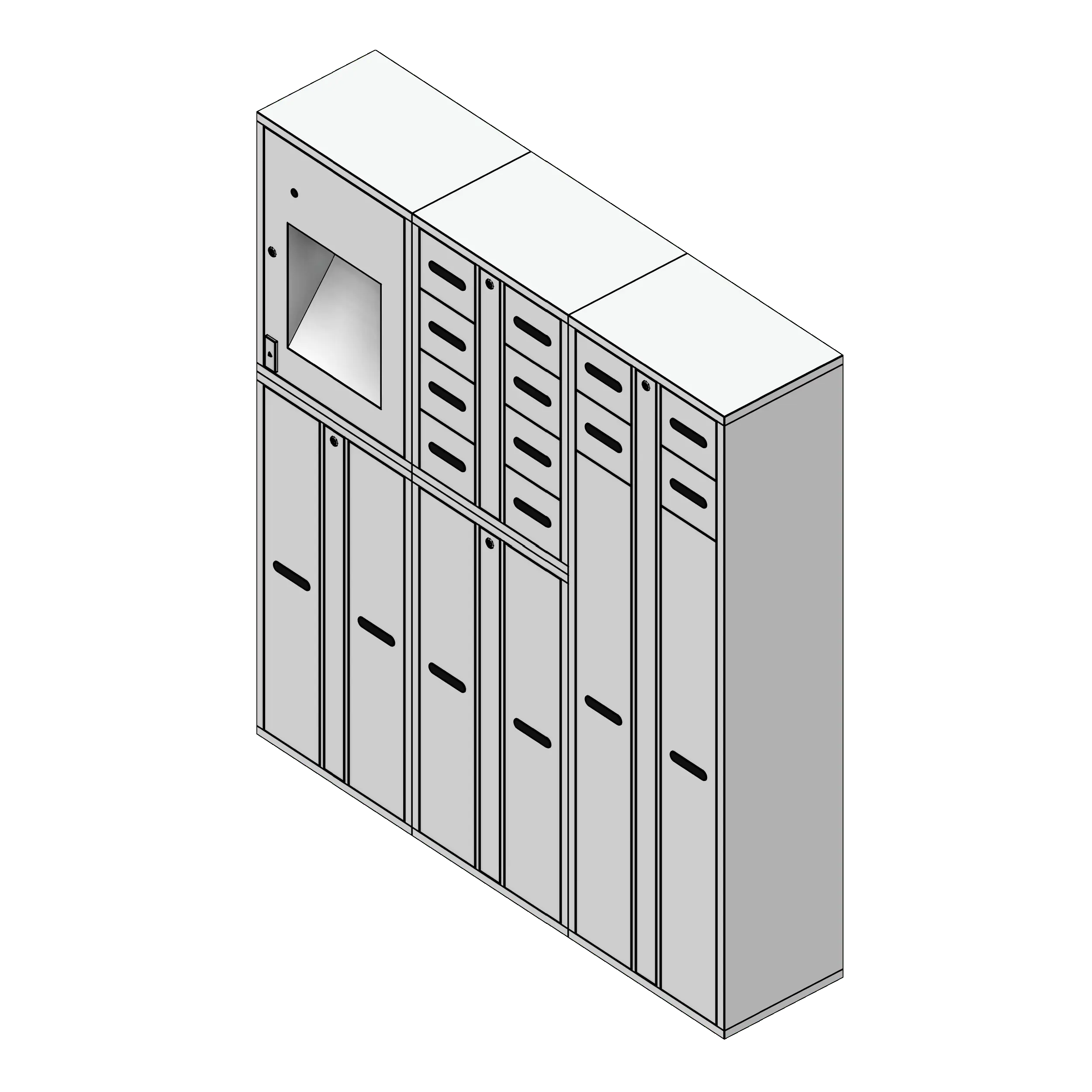 This family is designed to include all the necessary configurations to create your own smart weapons storage solution. To use this family, insert it into your project using the Fetch app and place as many units as you desire. One console is required for each group of locker units. The family includes a 12" filler for when a console or handgun unit (30" tall) is directly adjacent to long gun lockers (42" tall).