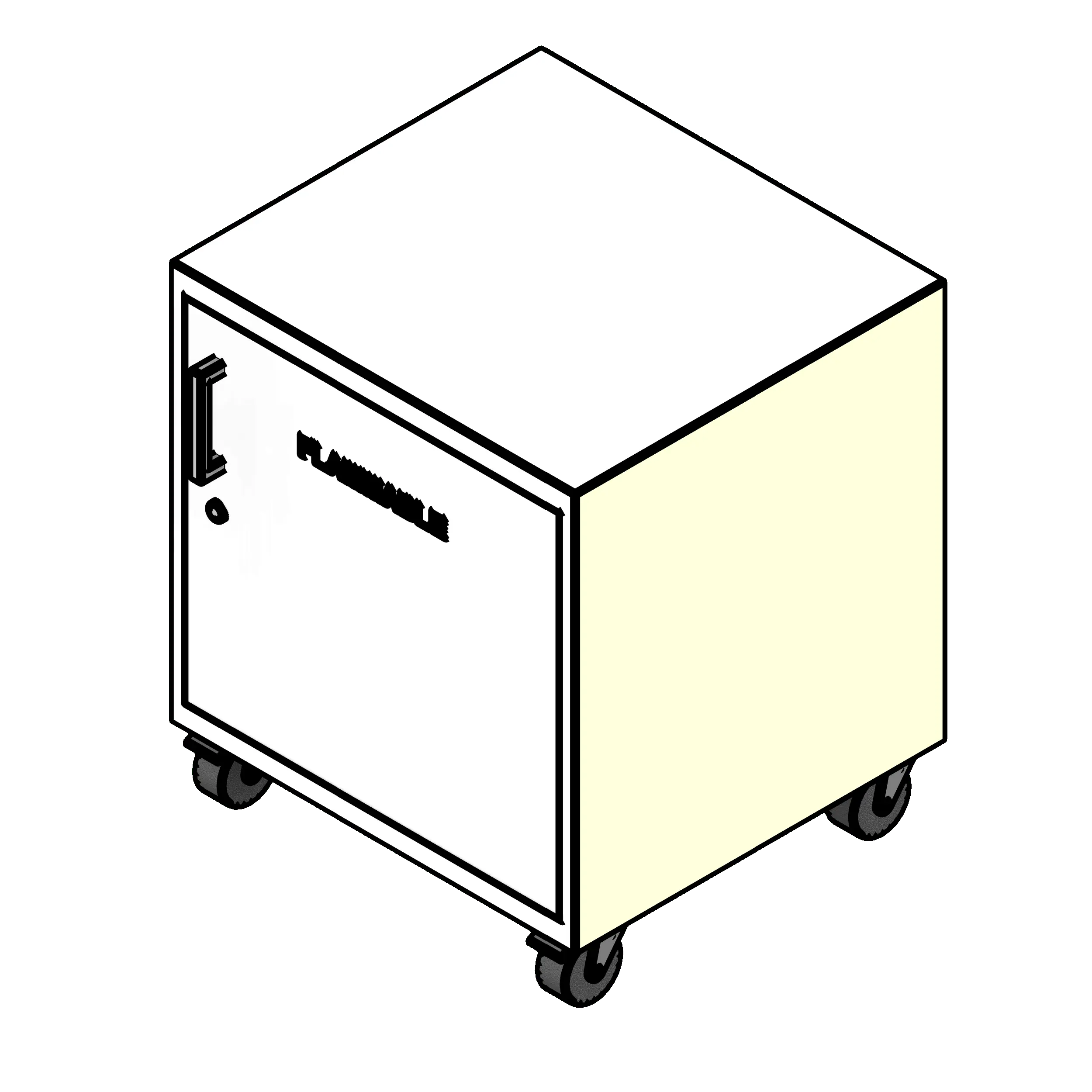 - Bright label ensures this cabinet is visible in the lab