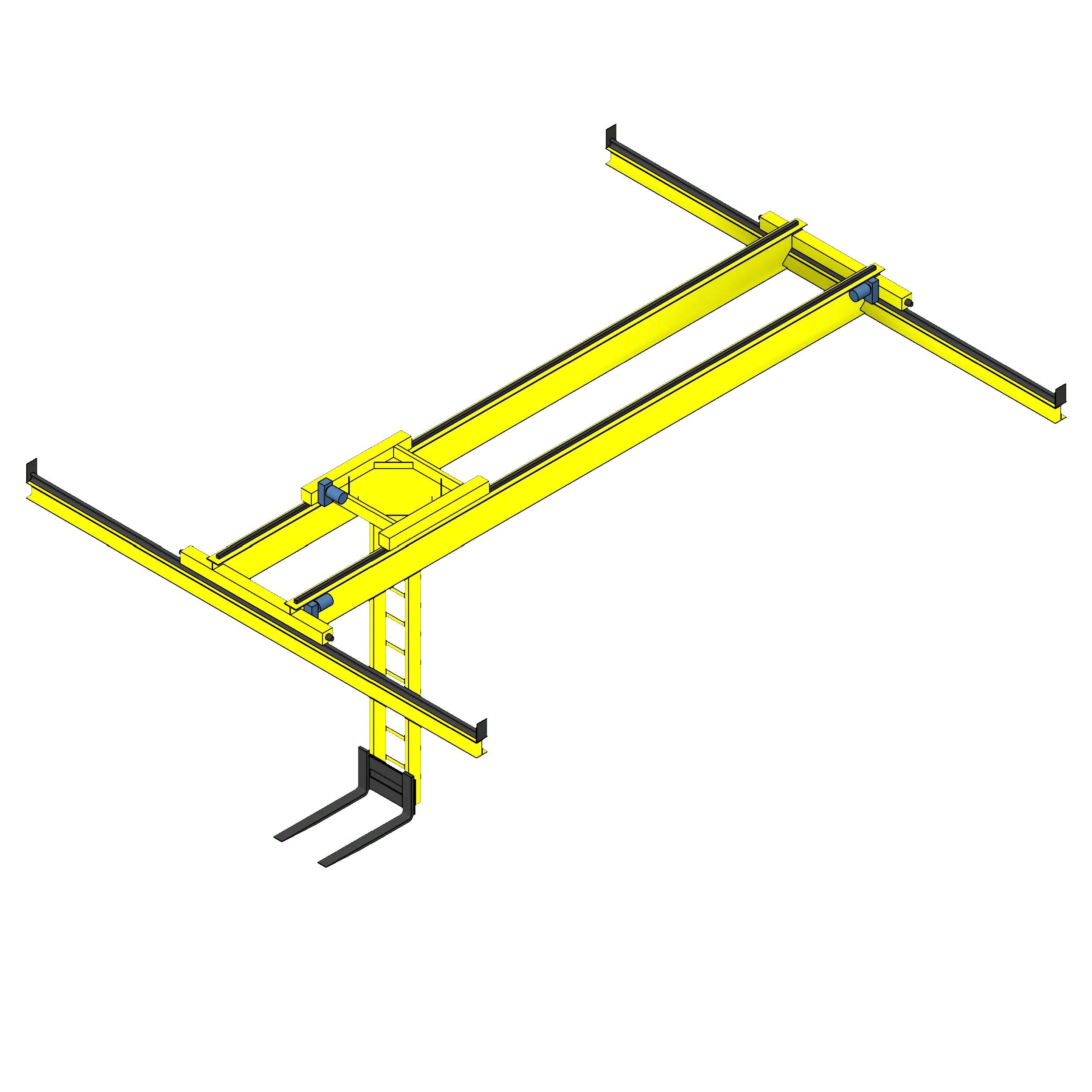 This family is intended to be used with the Modular Pallet Rack family, as the gantry is designed to sit directly on top of the rack. To use this family, insert it into your project from the Fetch app and click to place it in your project. The easy-to-use parameters are in the properties window while the family is selected. Use the parameters to choose your desired pallet size, number of bays, and shelving height to automatically size the system to fit your shelving configuration. Use the align tool to snap the shelving units to the strong references in the gantry family to ensure proper aisle spacing. The maximum capacity can be adjusted using the ENTER_Max Capacity Number parameter and will automatically scale to the capacity limits set.