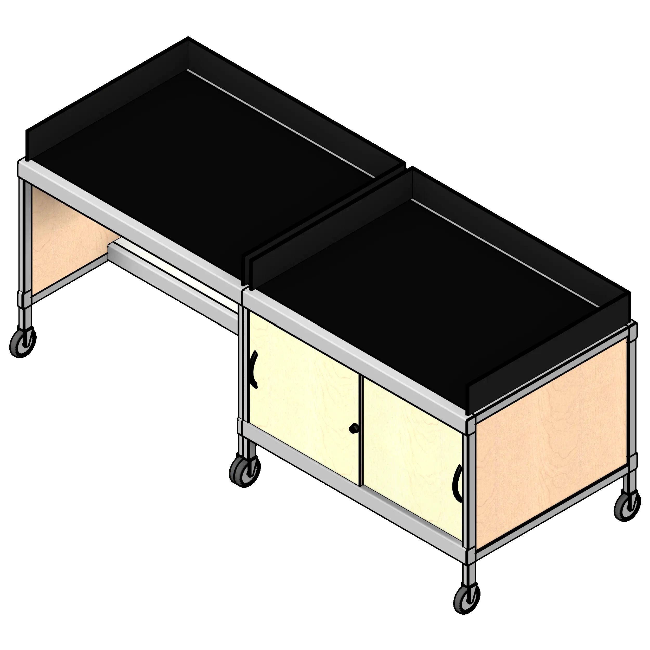 - Kit includes one half shelf console with divider and dump rims on wheels and one cabinet console with dump rims on wheels.