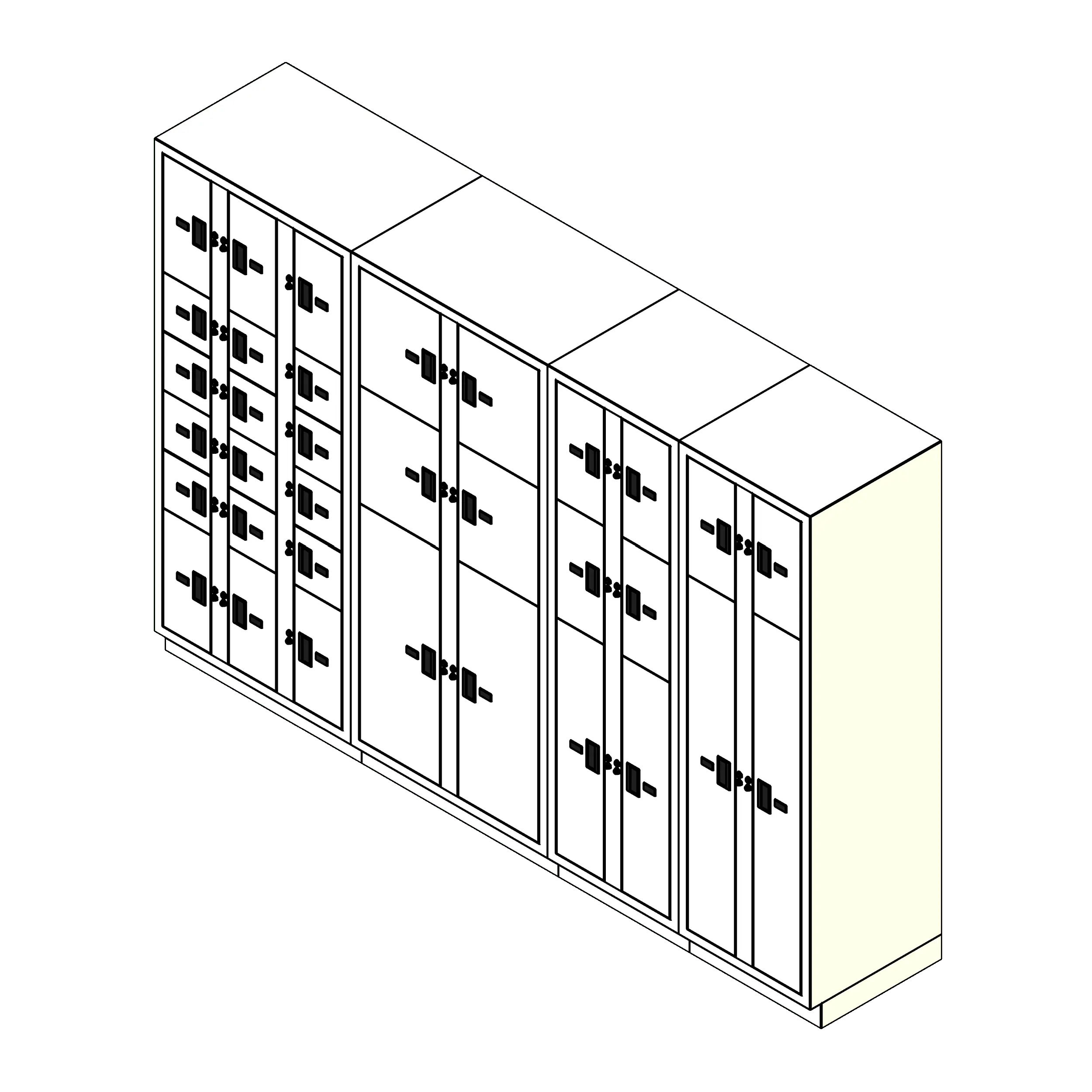 These lockers are used in police departments and crime labs to ensure the proper chain of custody for sensitive evidence. This preconfigured group contains a total of 34 openings with keyless access.