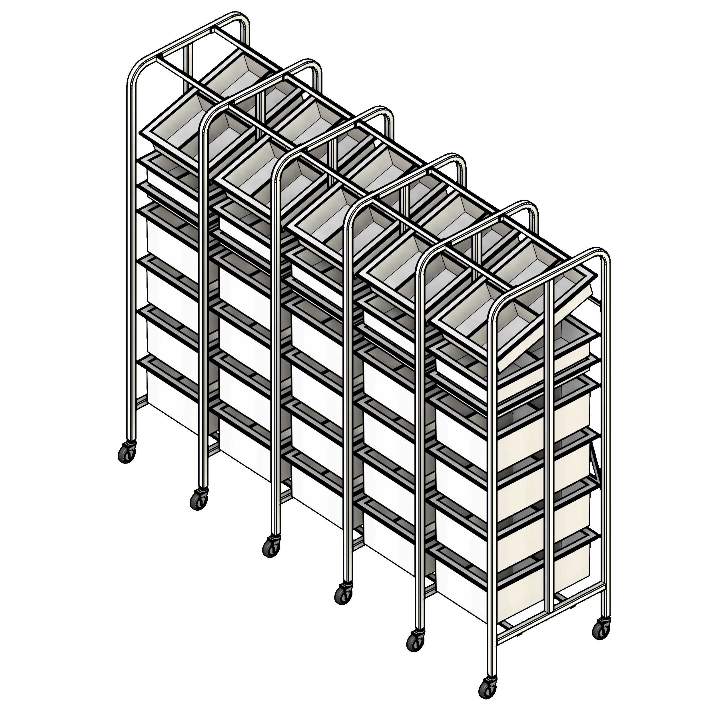 - Baskets can be angled to create gravity feed system