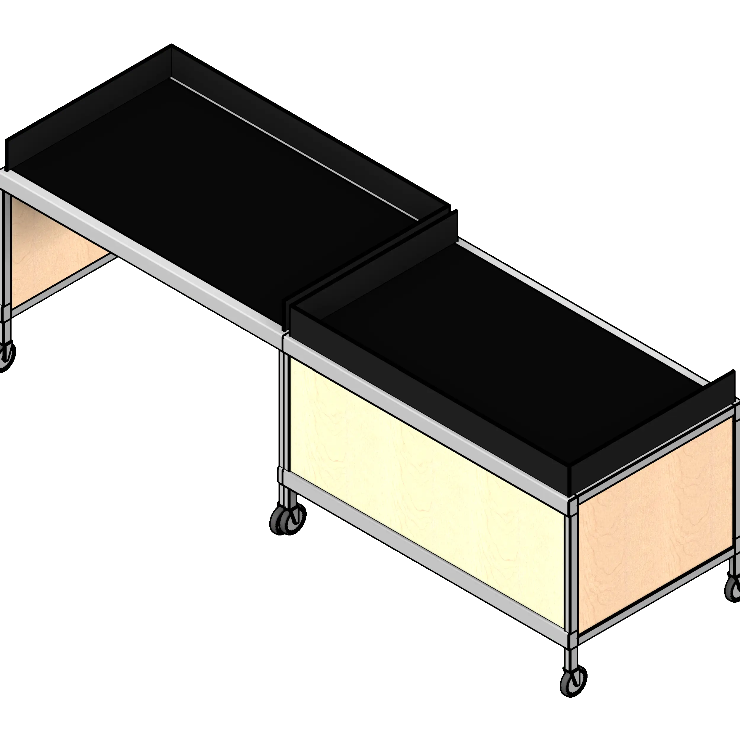 - Kit includes two basic consoles with dump rims on wheels.