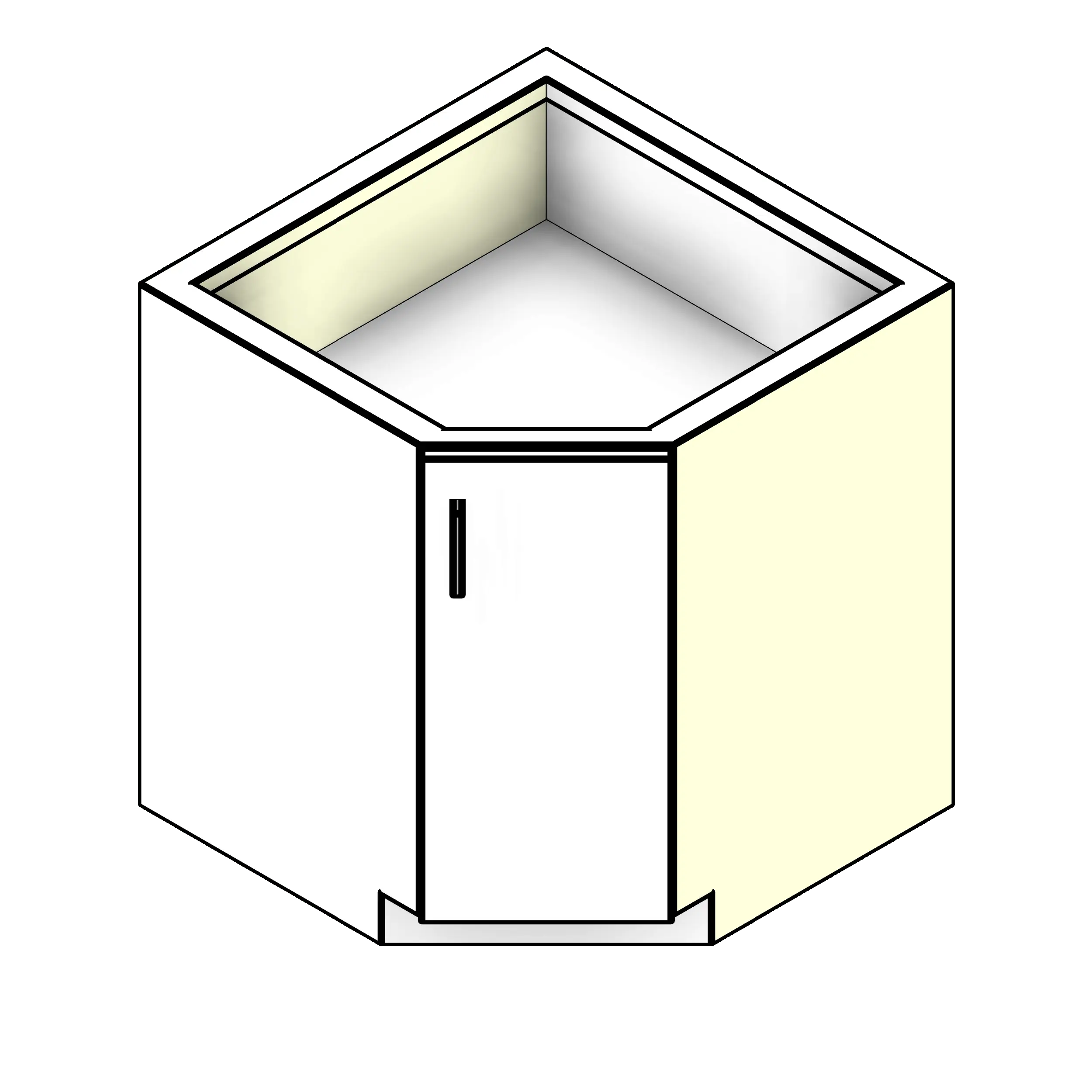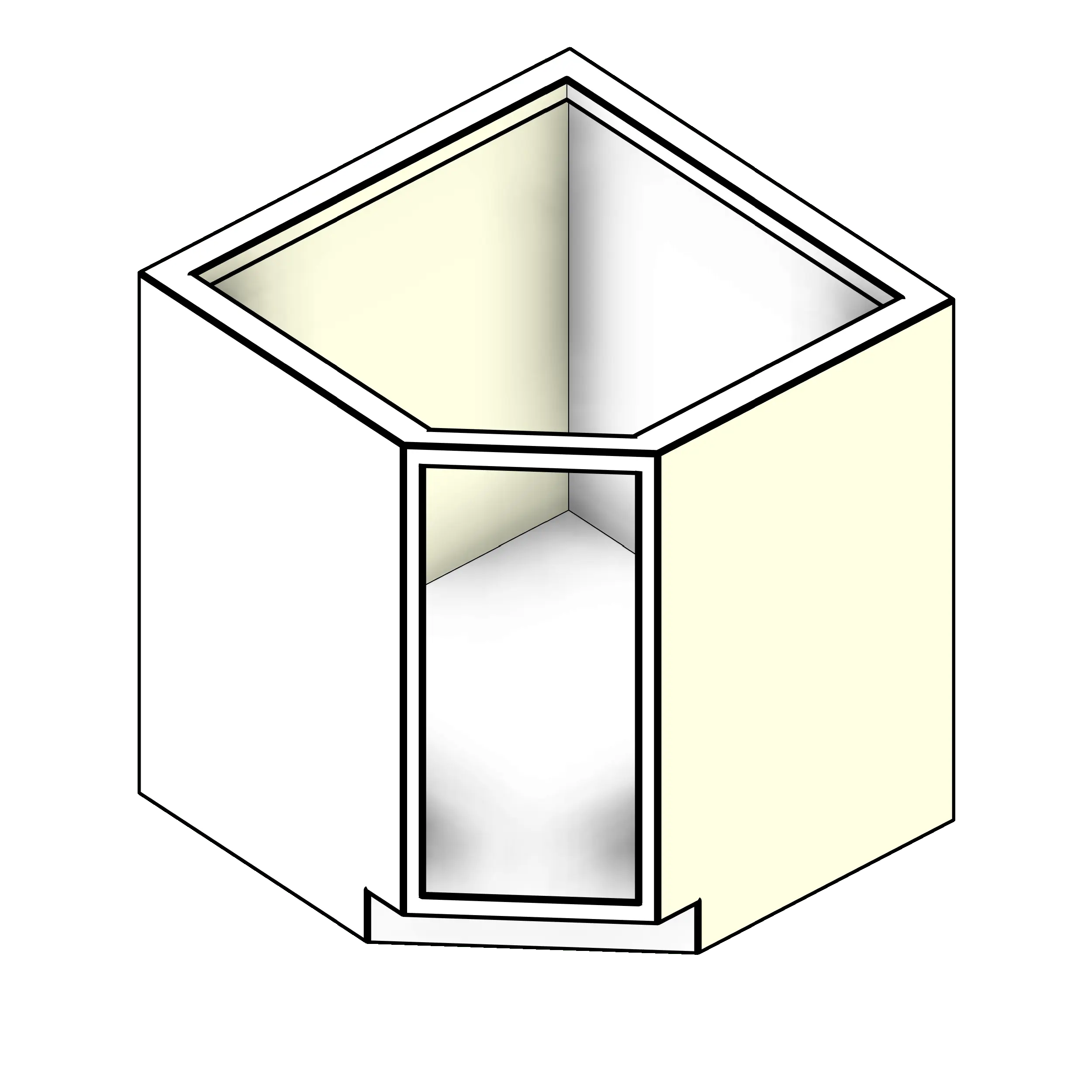 - Four sided, flush front, frame construction