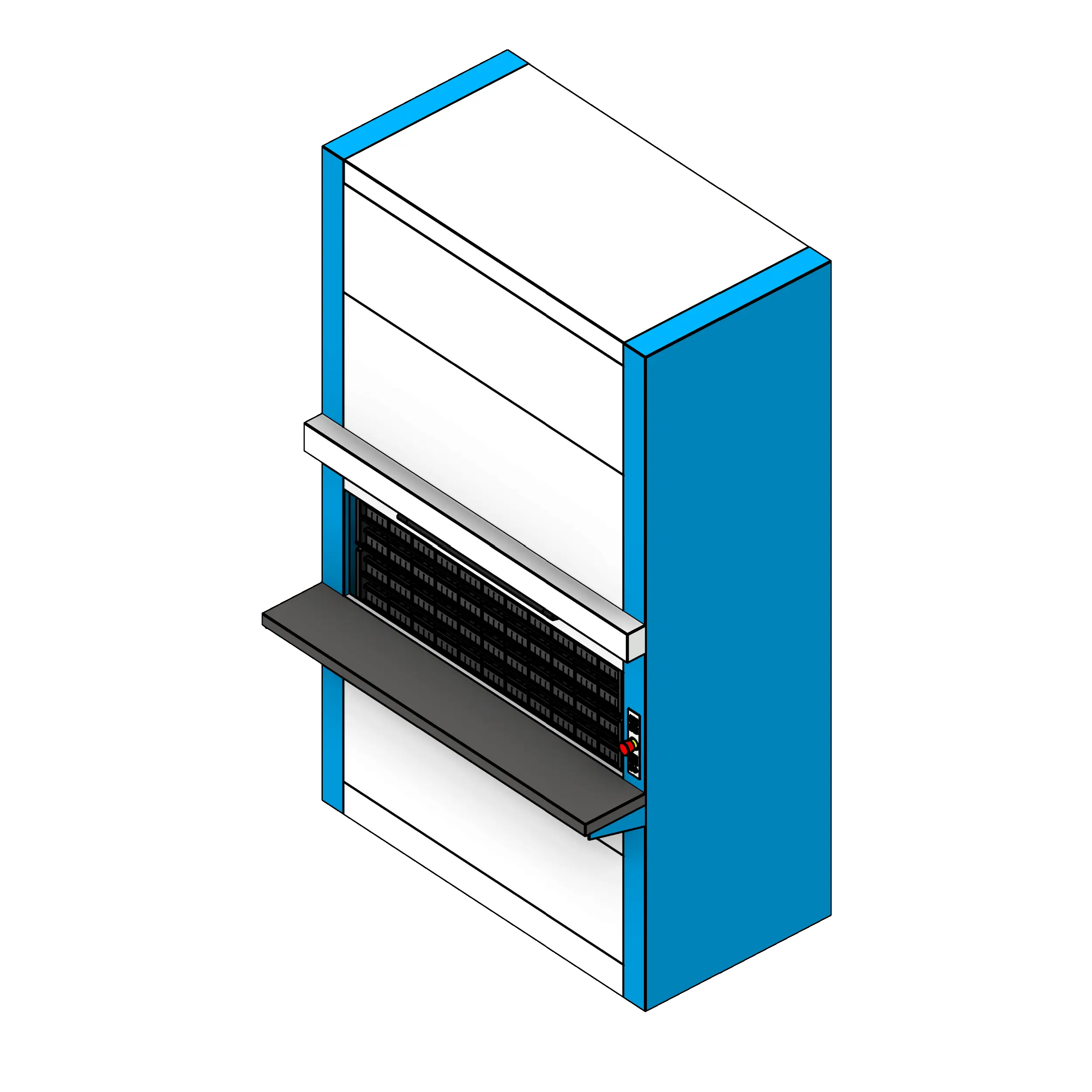 The Pathology Unit is designed to support the weight of the slide and tissue blocks inventory (0.28 lbs./LFI) while increasing slide density. Laboratories can save up to 75% floor space using the Pathology Unit over other standard pathology slide and tissue blocks storage methods. Pathology slides are stored in standard slide trays and placed in carriers within the Pathology Unit. When requested by an operator, the unit rotates around vertically and presents the slide tray to the operator eliminating walk and search time. Optionally, using light directed technology, position lights direct the operator to the location of each tray designed for slide or tissue block storage. Additional inventory management software can display other information about the slide or tissue block such as an identification number. This not only speeds up pick time, but also ensures the operator picks the correct slide or tissue block required. A Pathology Unit can increase productivity up to 2/3 over standard pathology slide and tissue block storage.