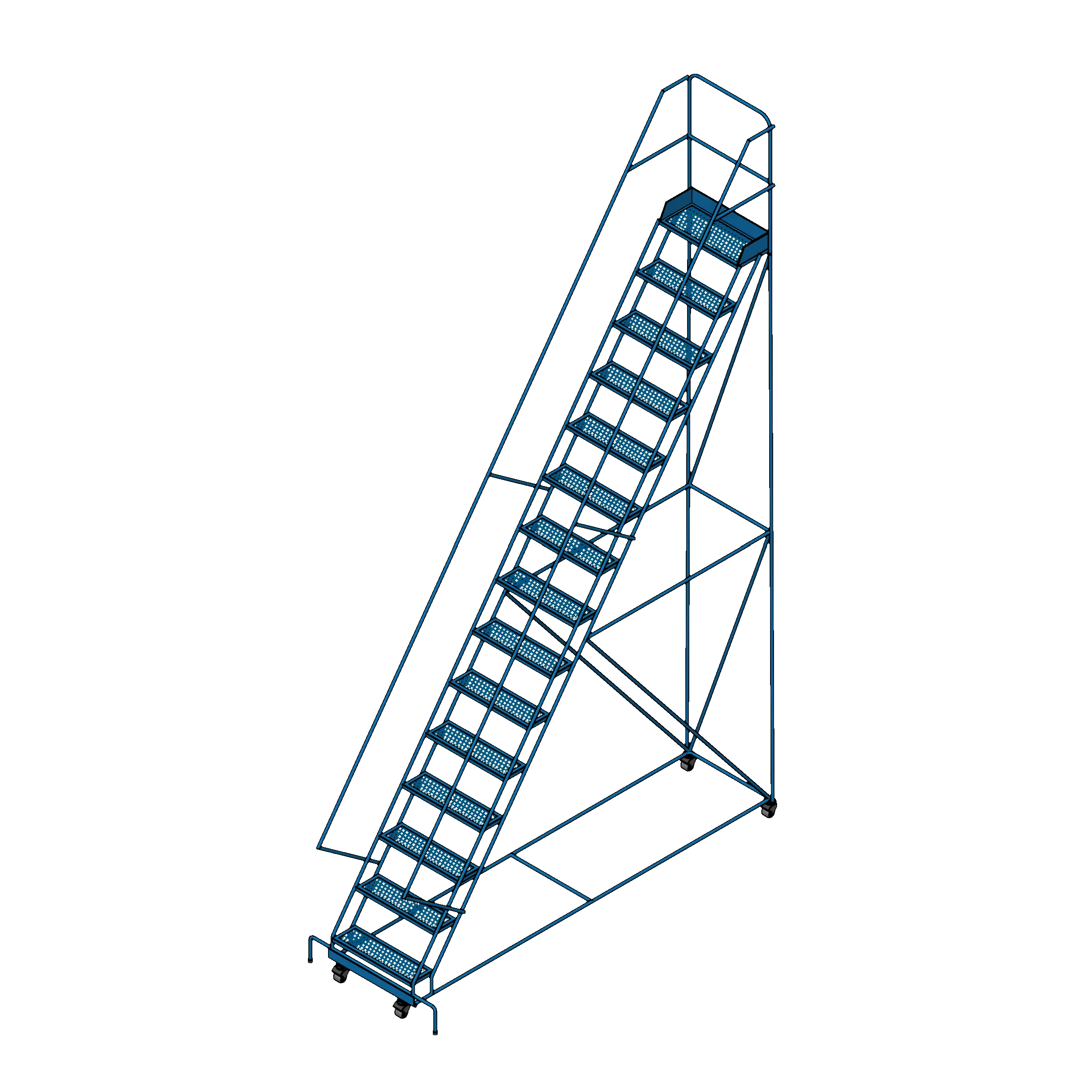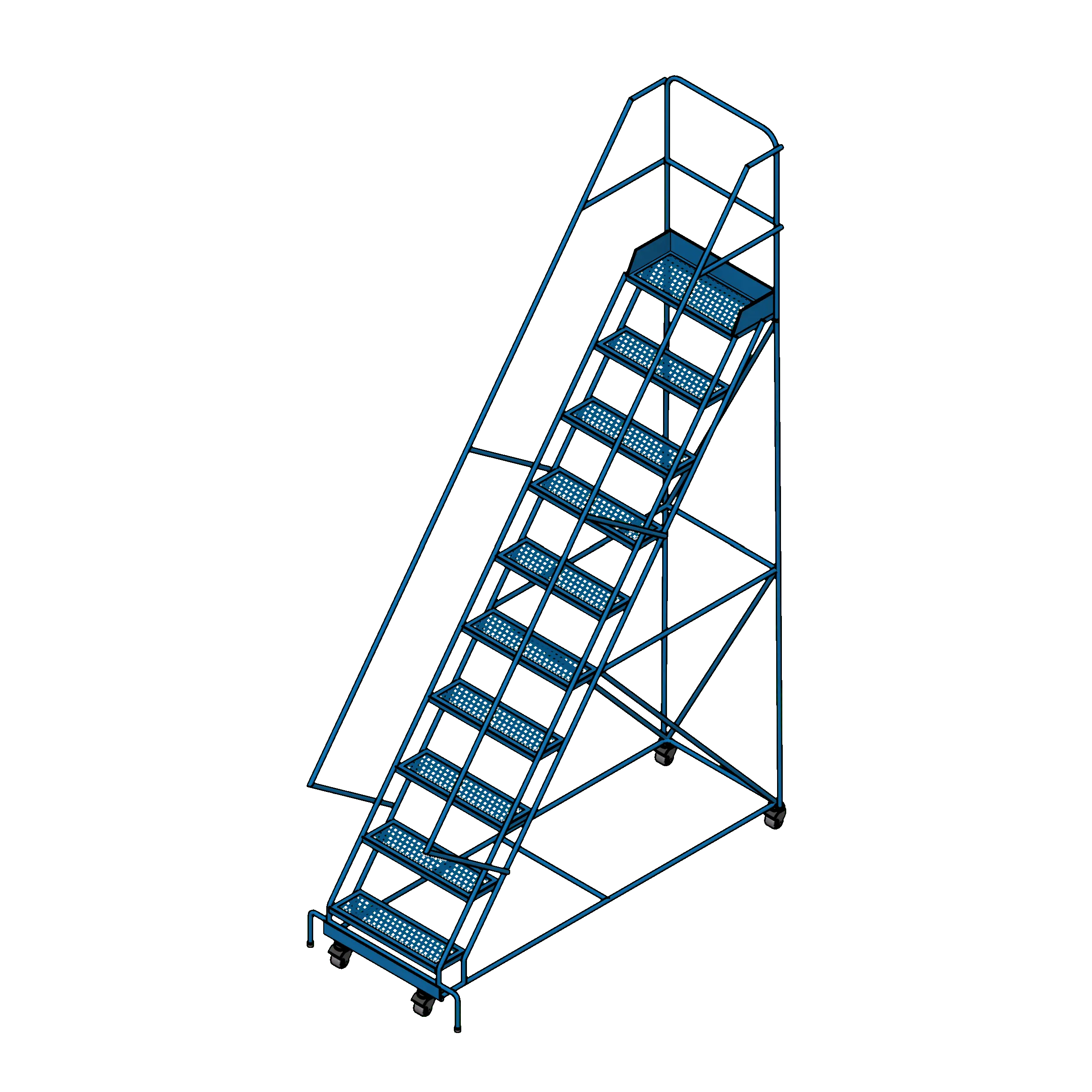 To use this family, insert it into your project using the Fetch app, then select the number of steps you desire. The model will automatically grow to that size and assign the proper caster configuration. Eight steps or more units will use locking casters with a release pedal, while the rest uses spring-loaded casters. The optional outrigger addition extends the width of the back wheels for when the local code requires 3:1 height base ratio.